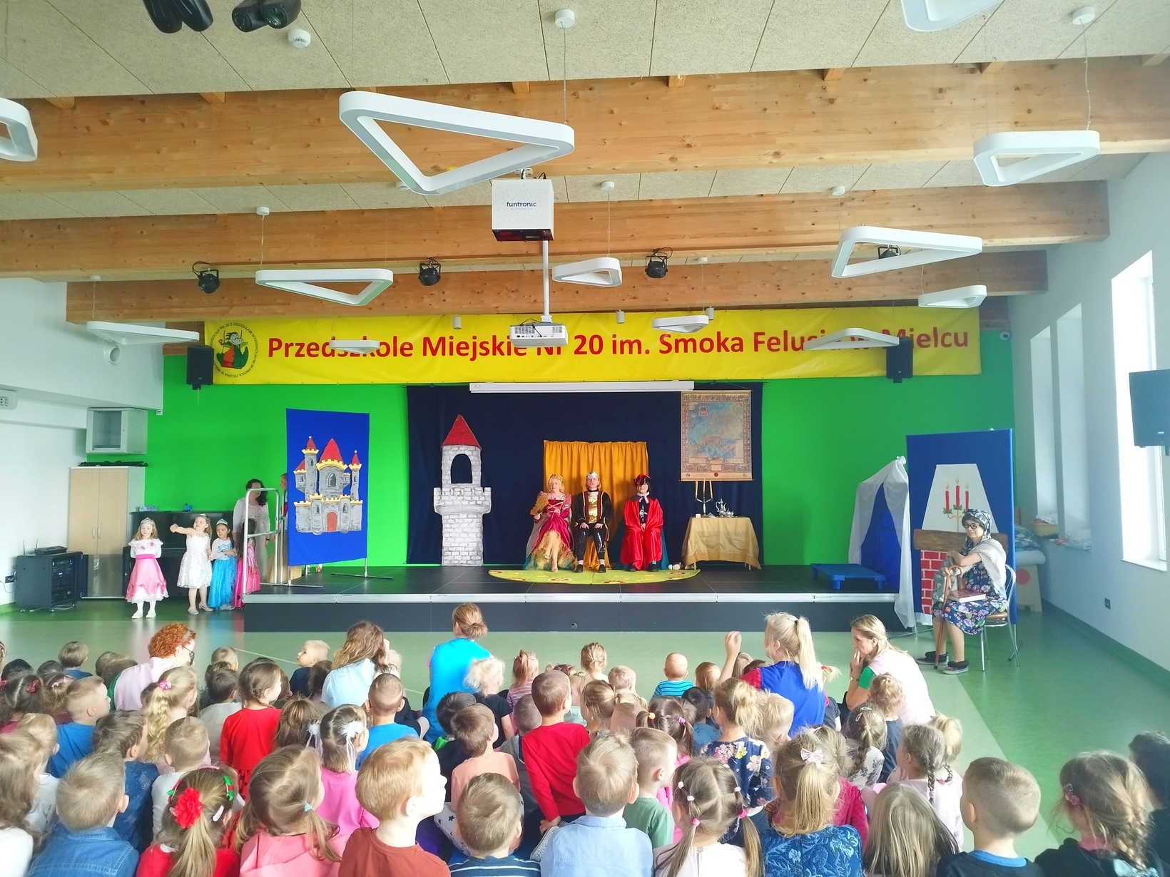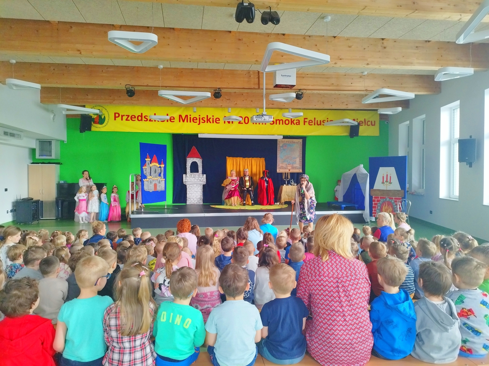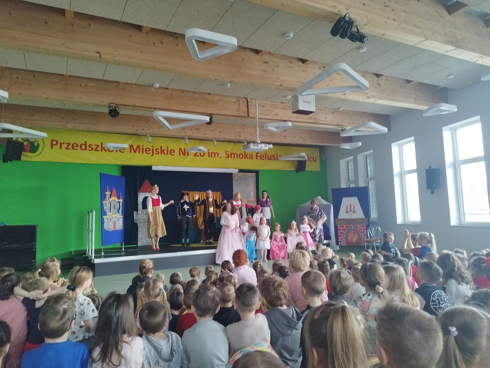 W czwartek 30 marca nasi żłobkowicze na zaproszenie Przedszkola nr 20 uczestniczyli w teatrzyku pt. "Księżniczka na ziarnku grochu", wystawianym przez Panie nauczycielki z pomocą przedszkolaków.