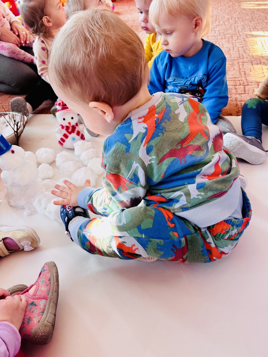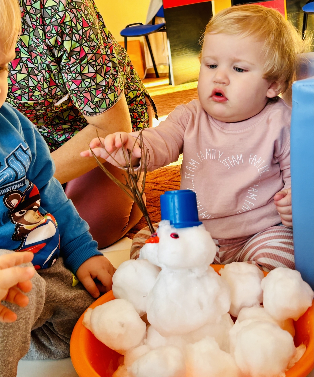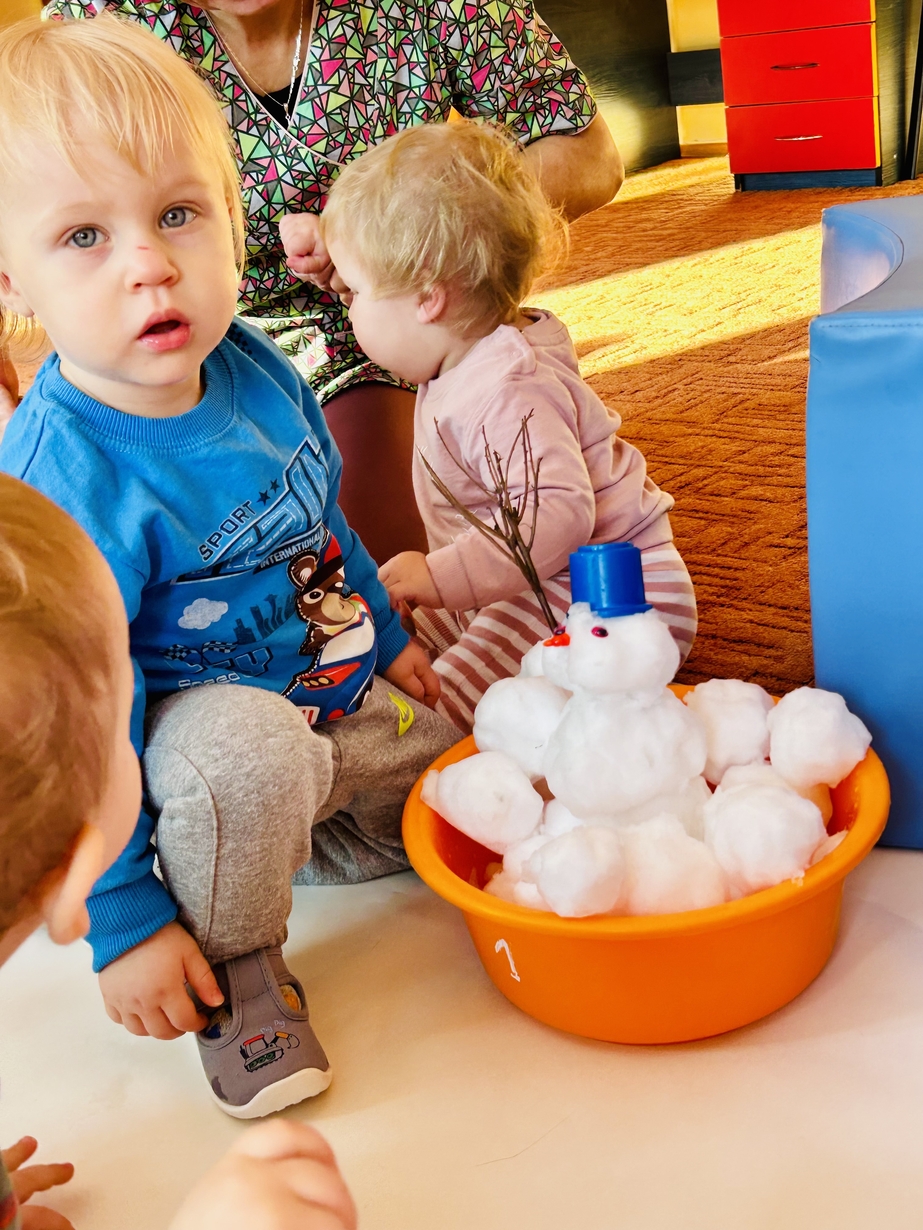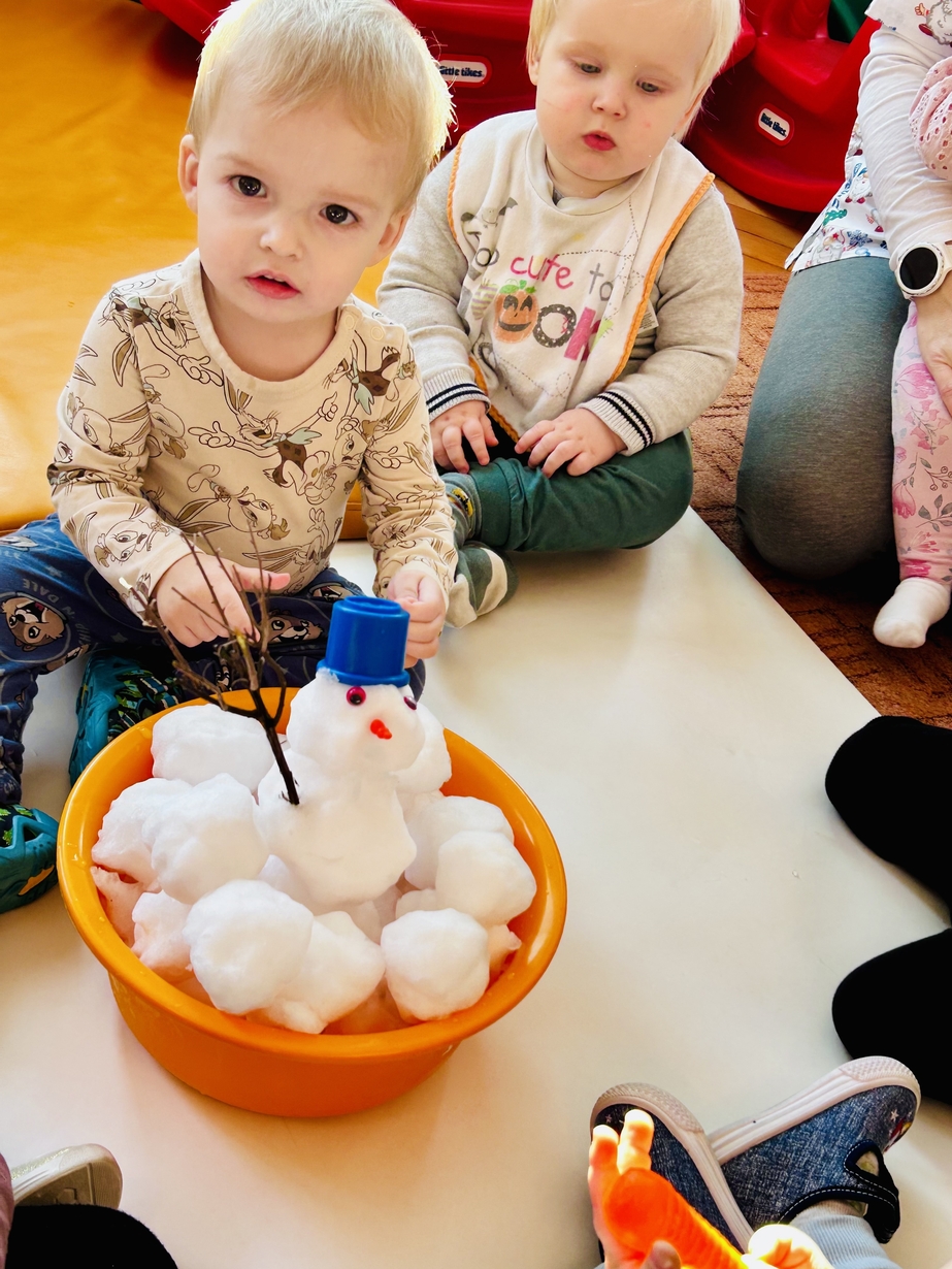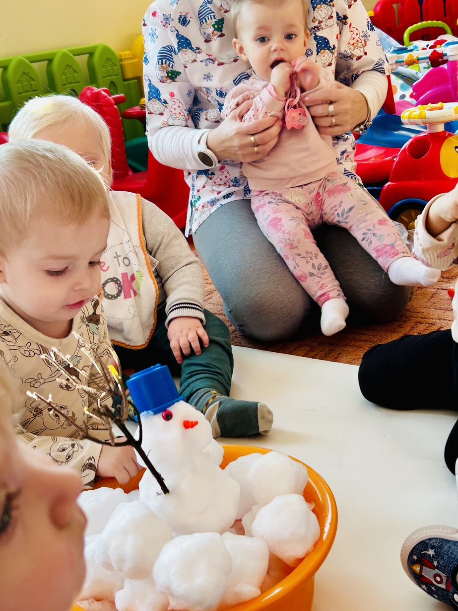 Korzystając z okazji, iż przyprószył śnieg pani wraz z dziećmi postanowiła ulepić Bałwanka. Dla dzieci zajęcia okazały się prawdziwą frajdą. Chodź Nasz Bałwanek był małej wielkości nasza wspólna radość podziwiania go była ogromna.
