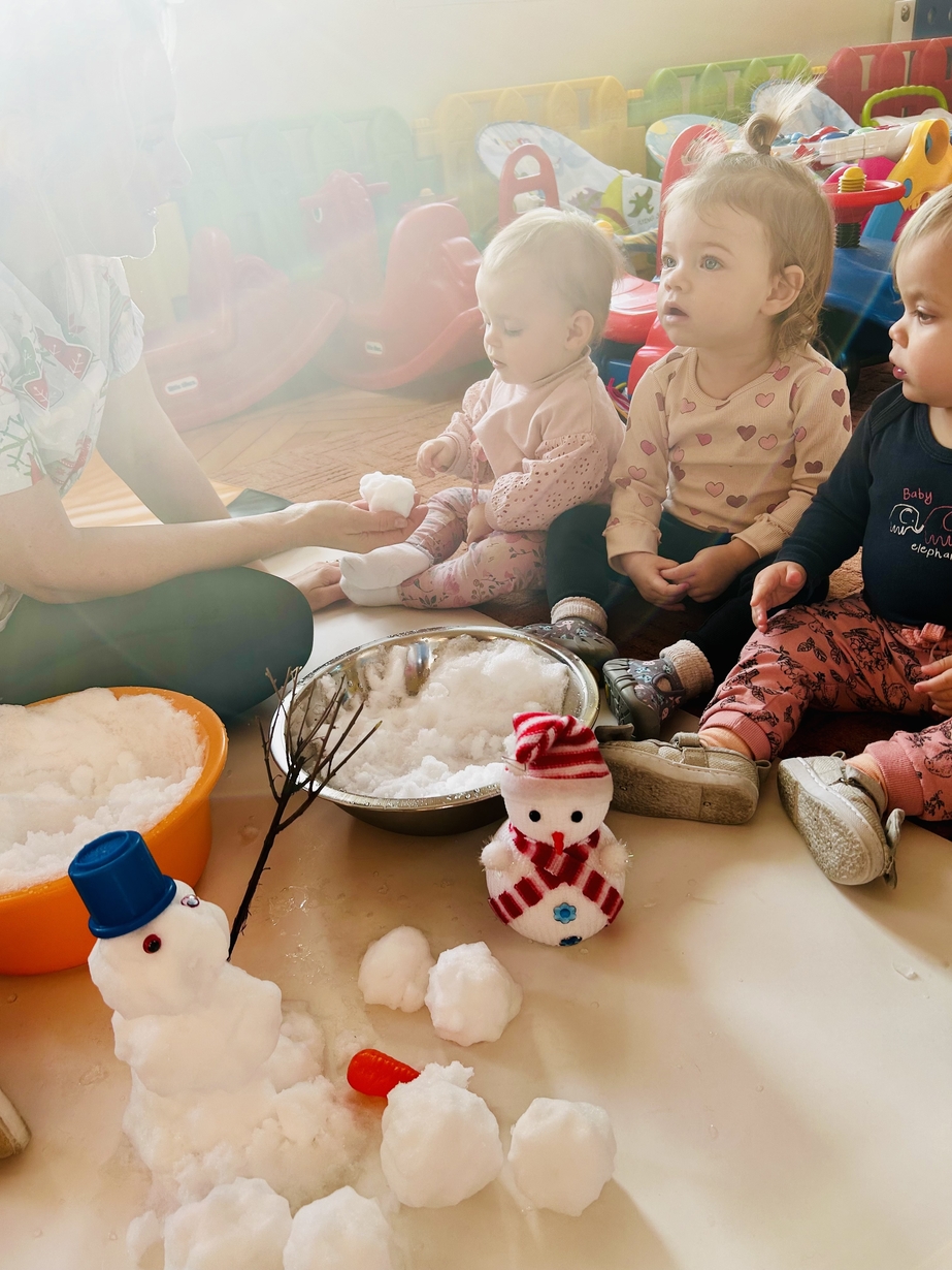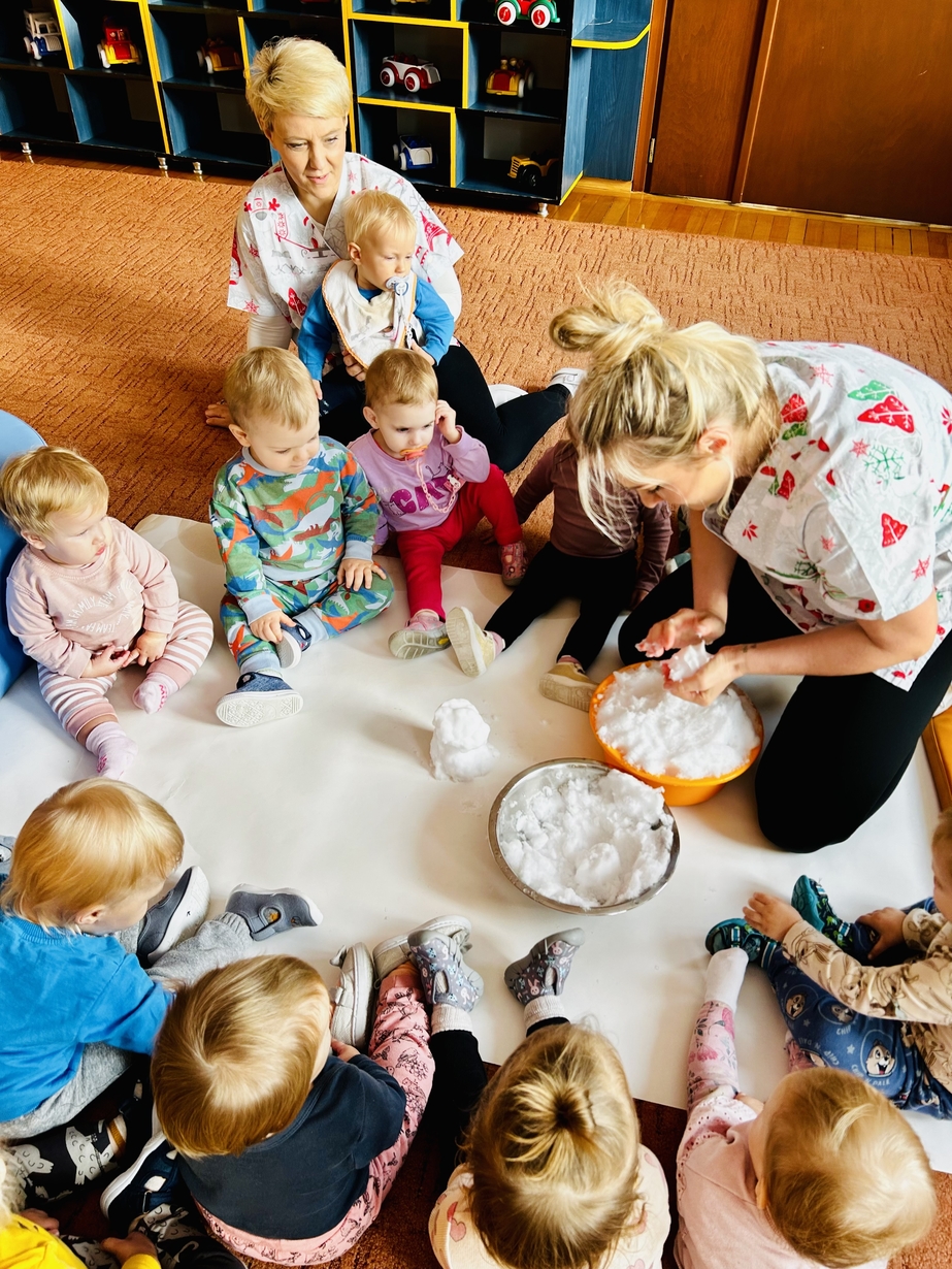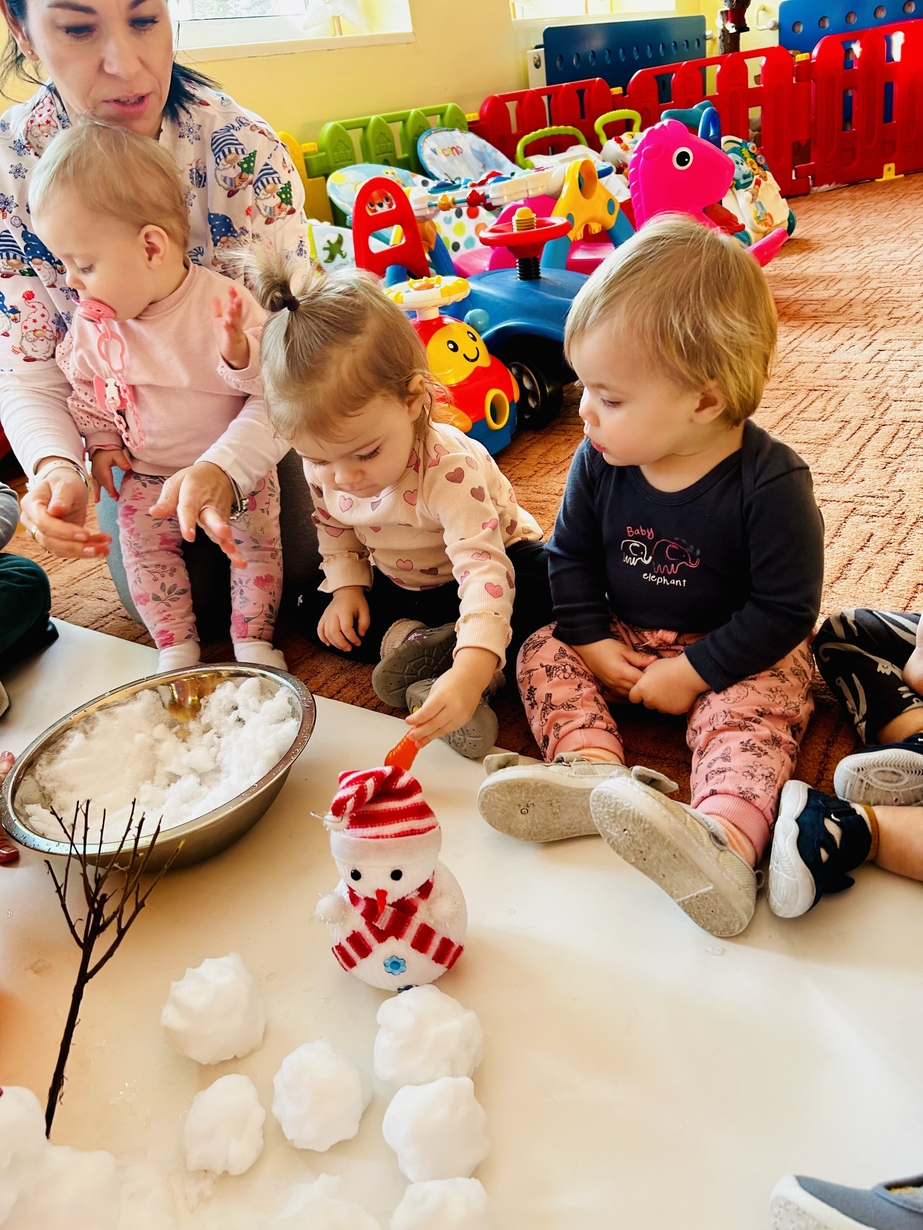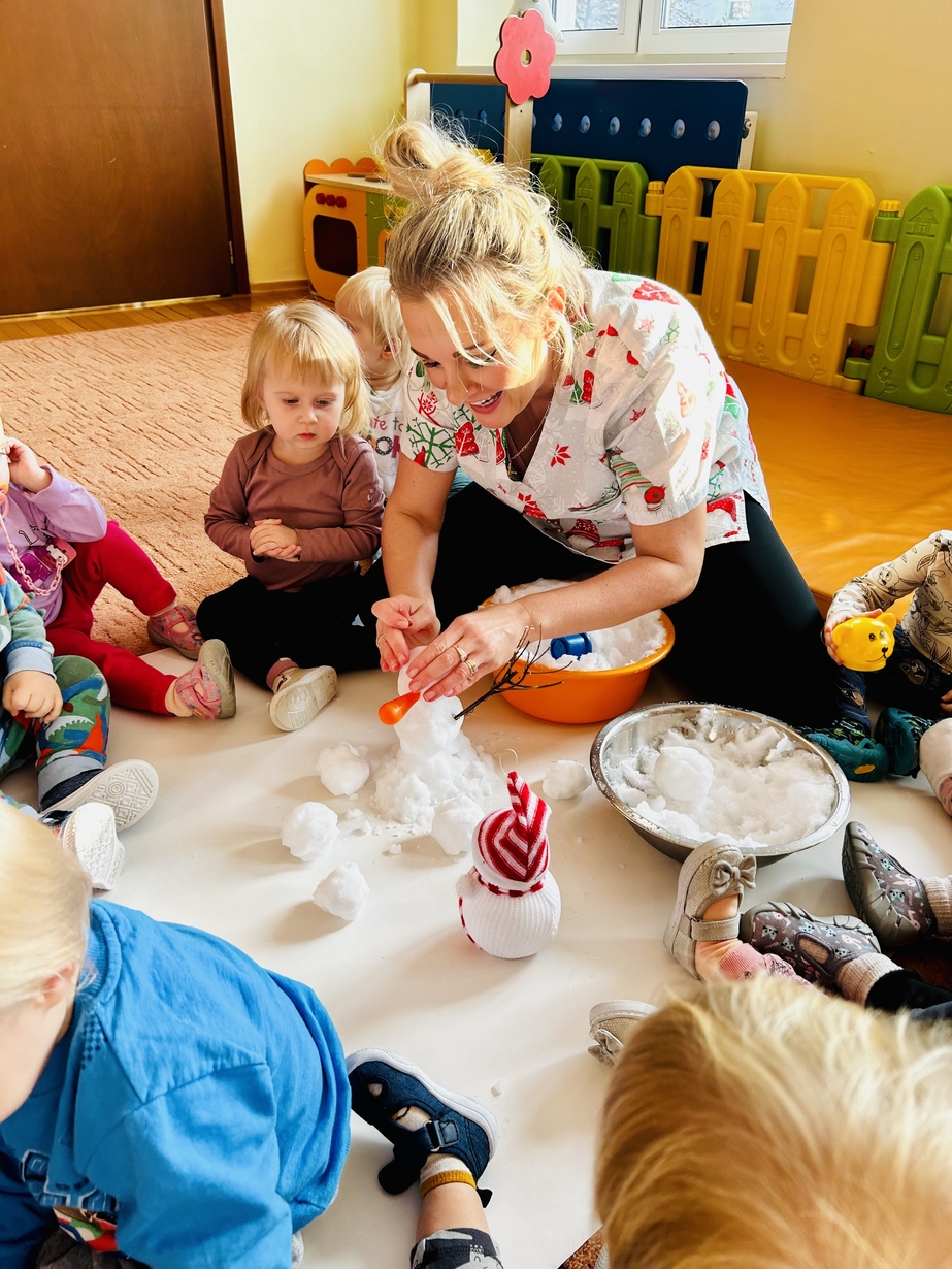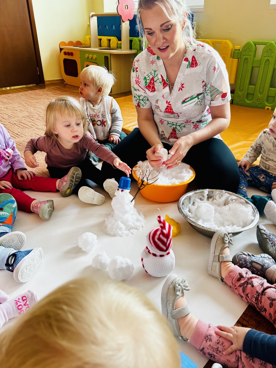 Korzystając z okazji, iż przyprószył śnieg pani wraz z dziećmi postanowiła ulepić Bałwanka. Dla dzieci zajęcia okazały się prawdziwą frajdą. Chodź Nasz Bałwanek był małej wielkości nasza wspólna radość podziwiania go była ogromna.
