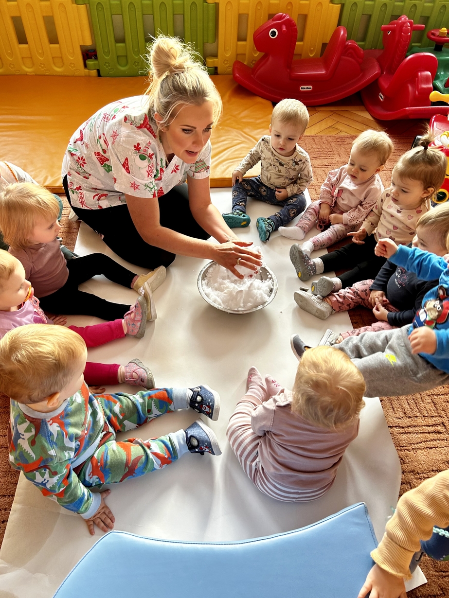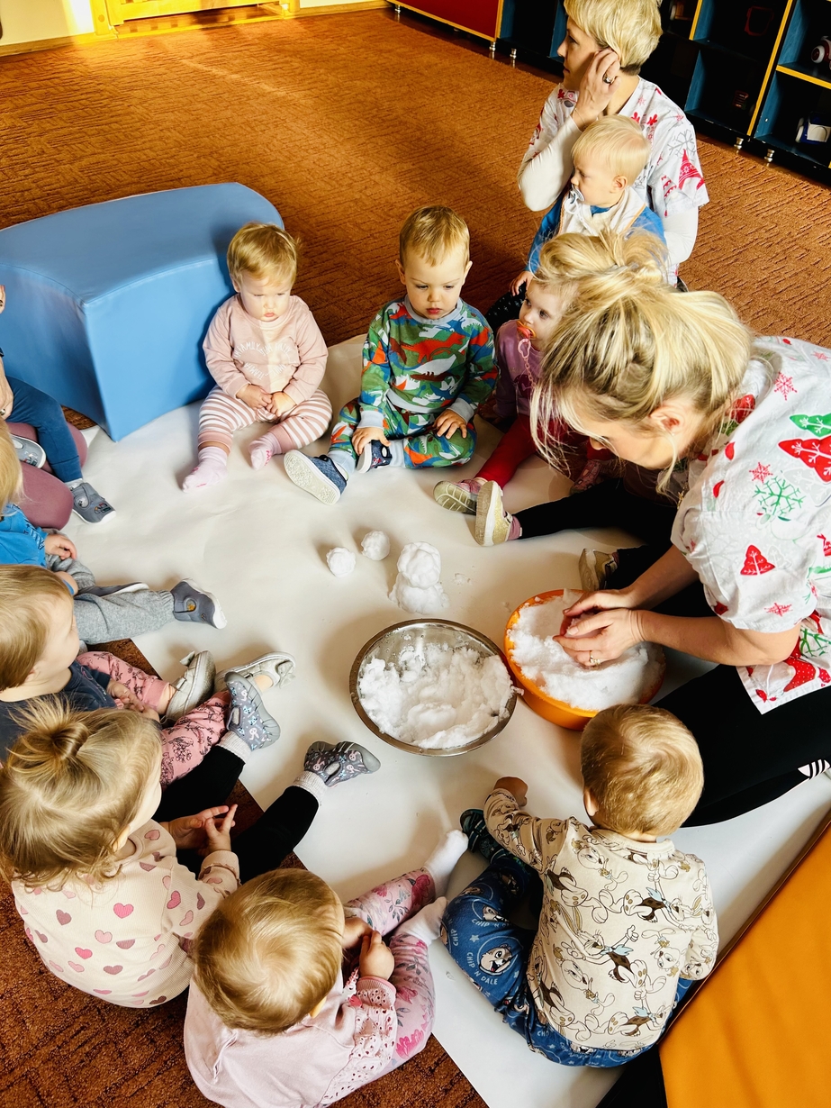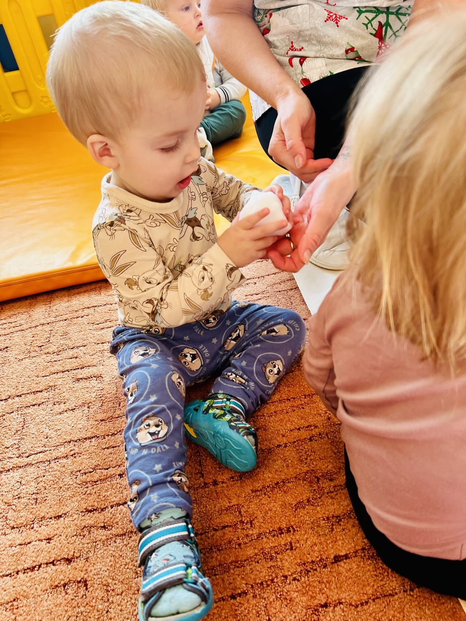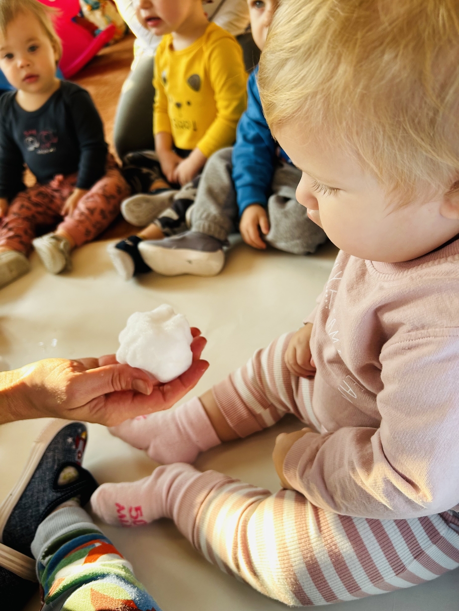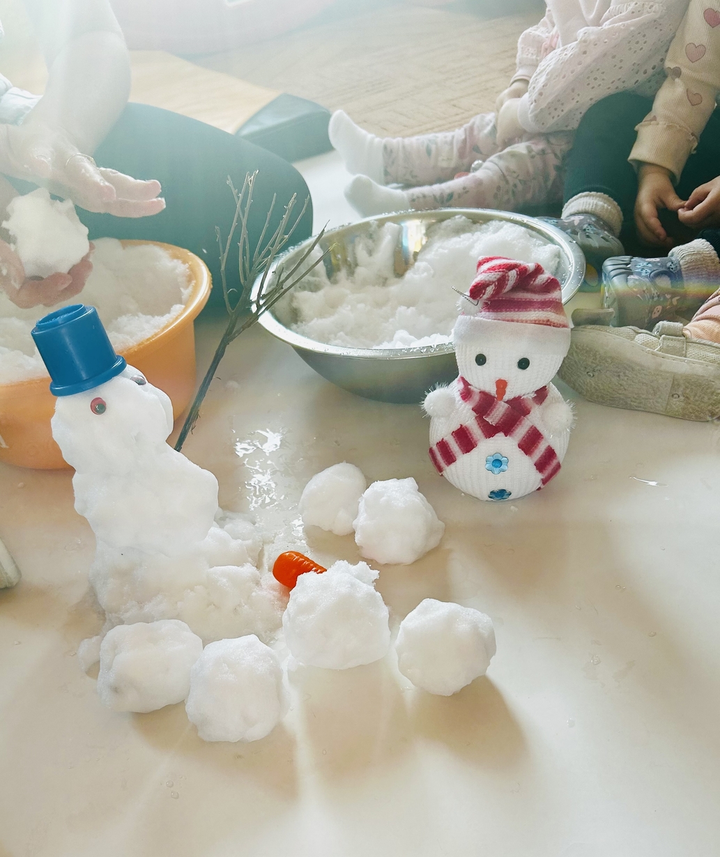 Korzystając z okazji, iż przyprószył śnieg pani wraz z dziećmi postanowiła ulepić Bałwanka. Dla dzieci zajęcia okazały się prawdziwą frajdą. Chodź Nasz Bałwanek był małej wielkości nasza wspólna radość podziwiania go była ogromna.
