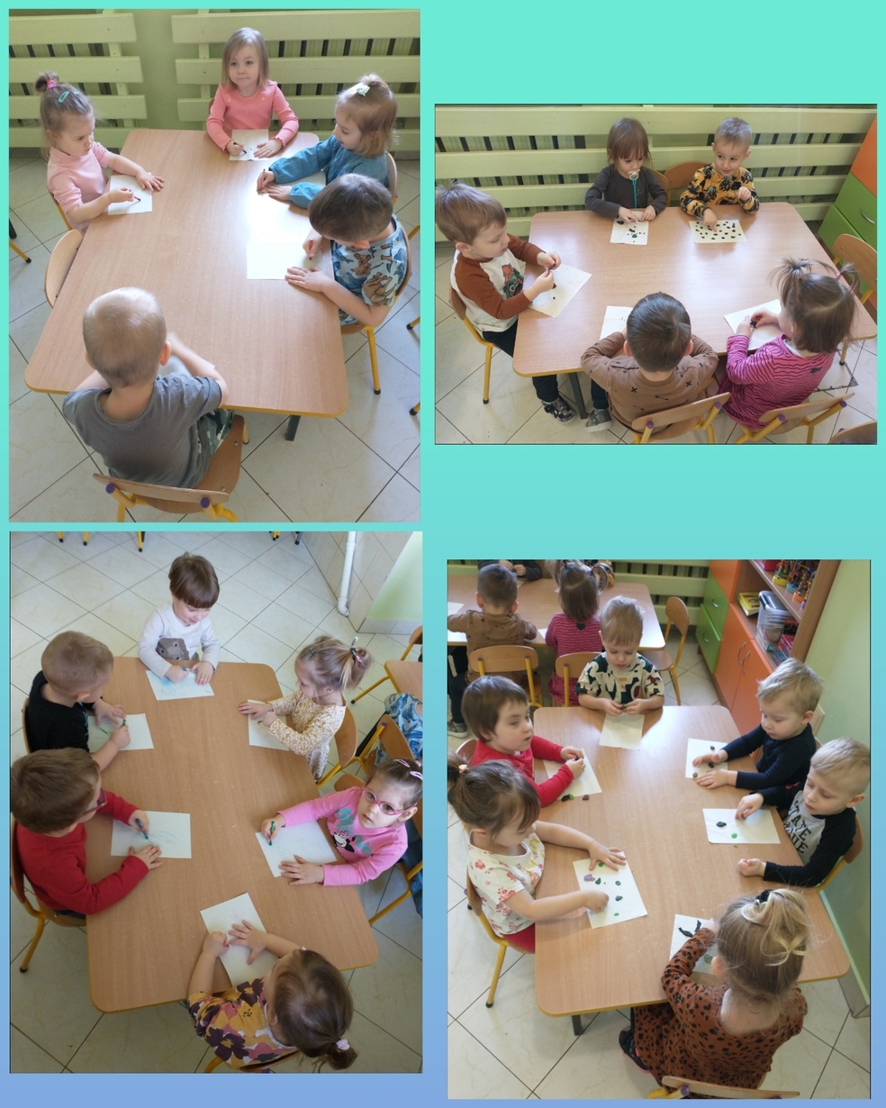 Mali artyści tworzyli obrazki przestrzenne łącząc kartkę papieru z plasteliną.