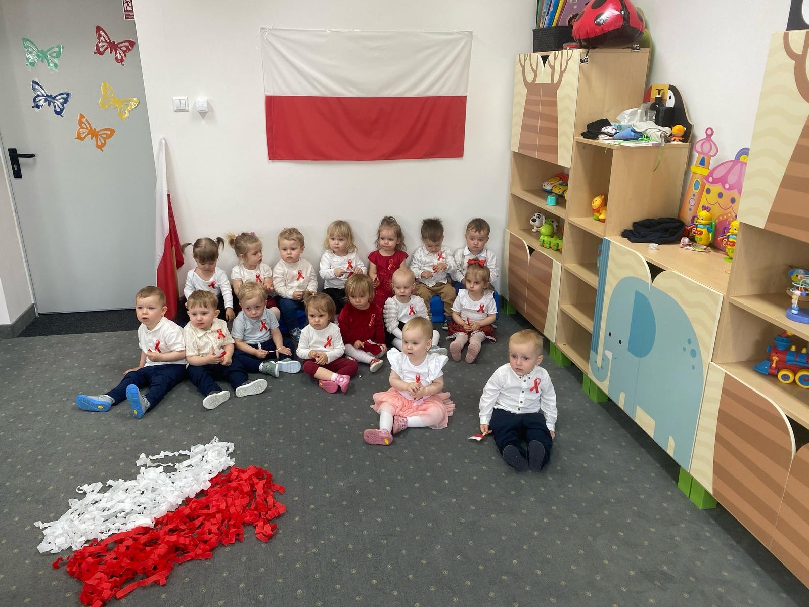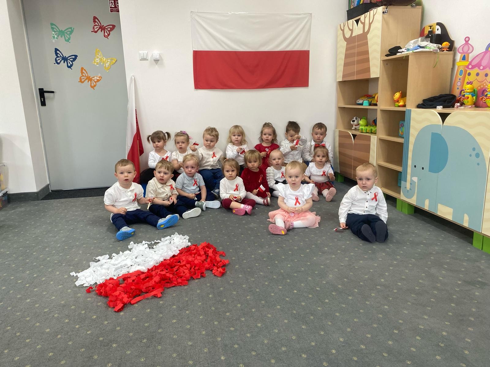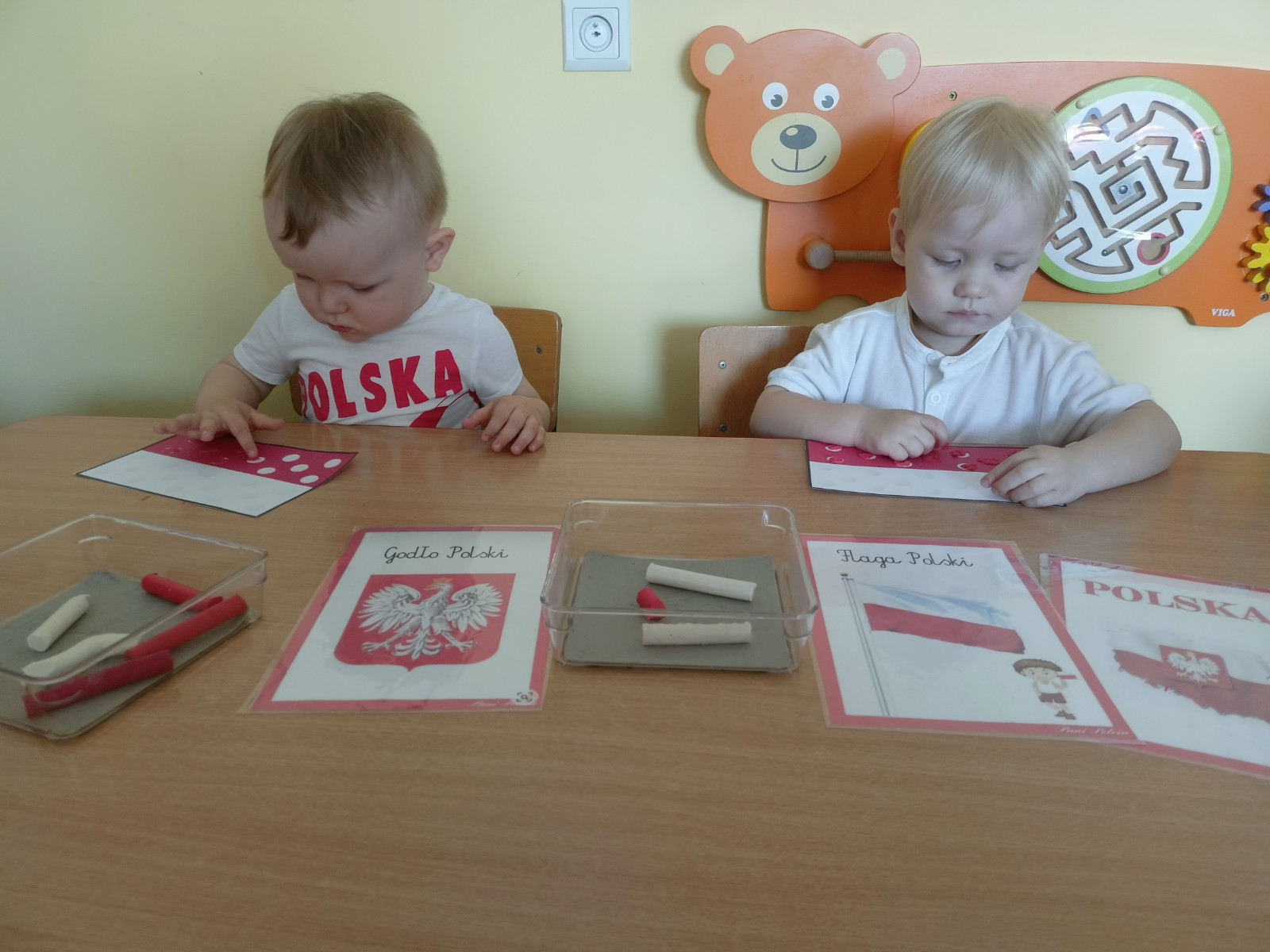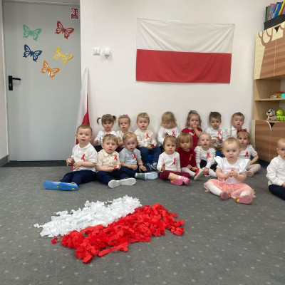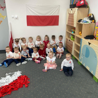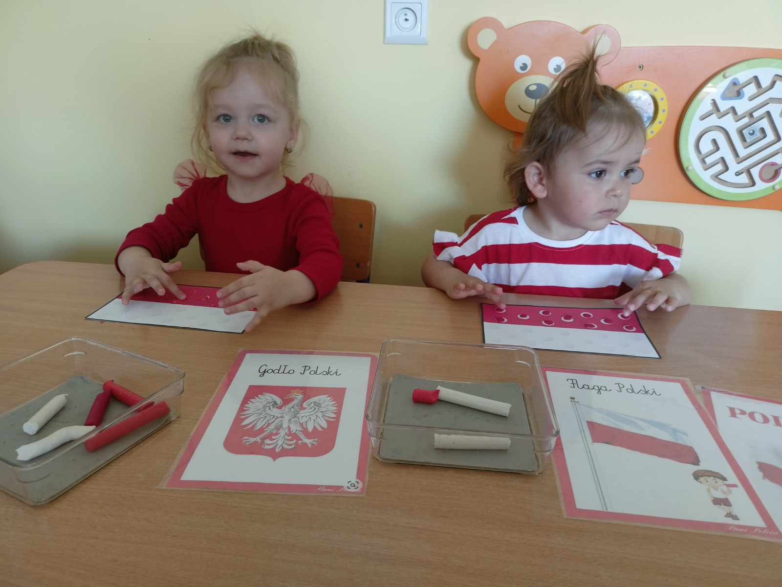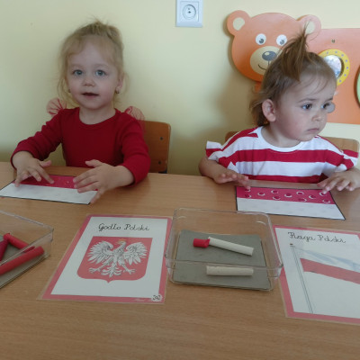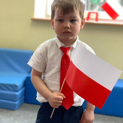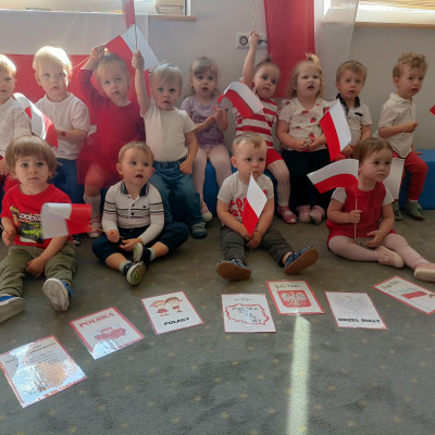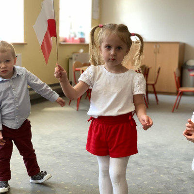 Zdjęcia przedstawiają dzieci świętujące majowe Święta