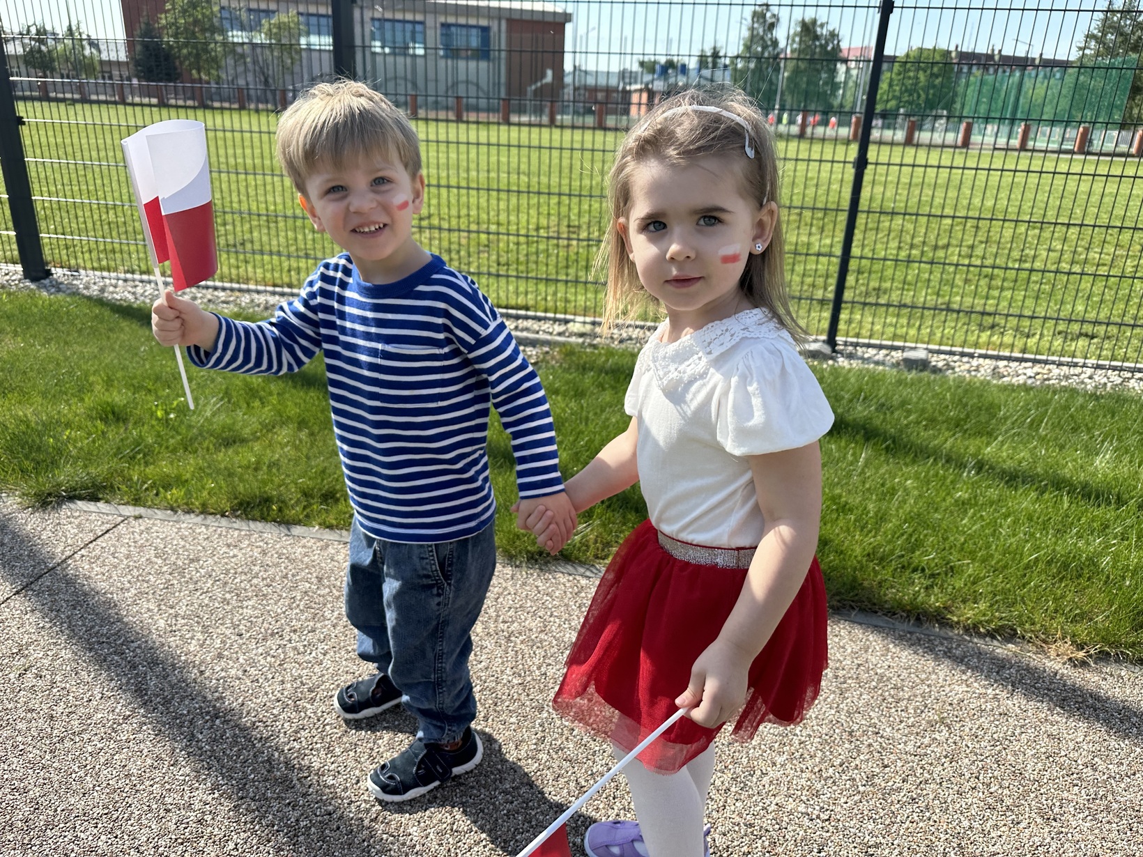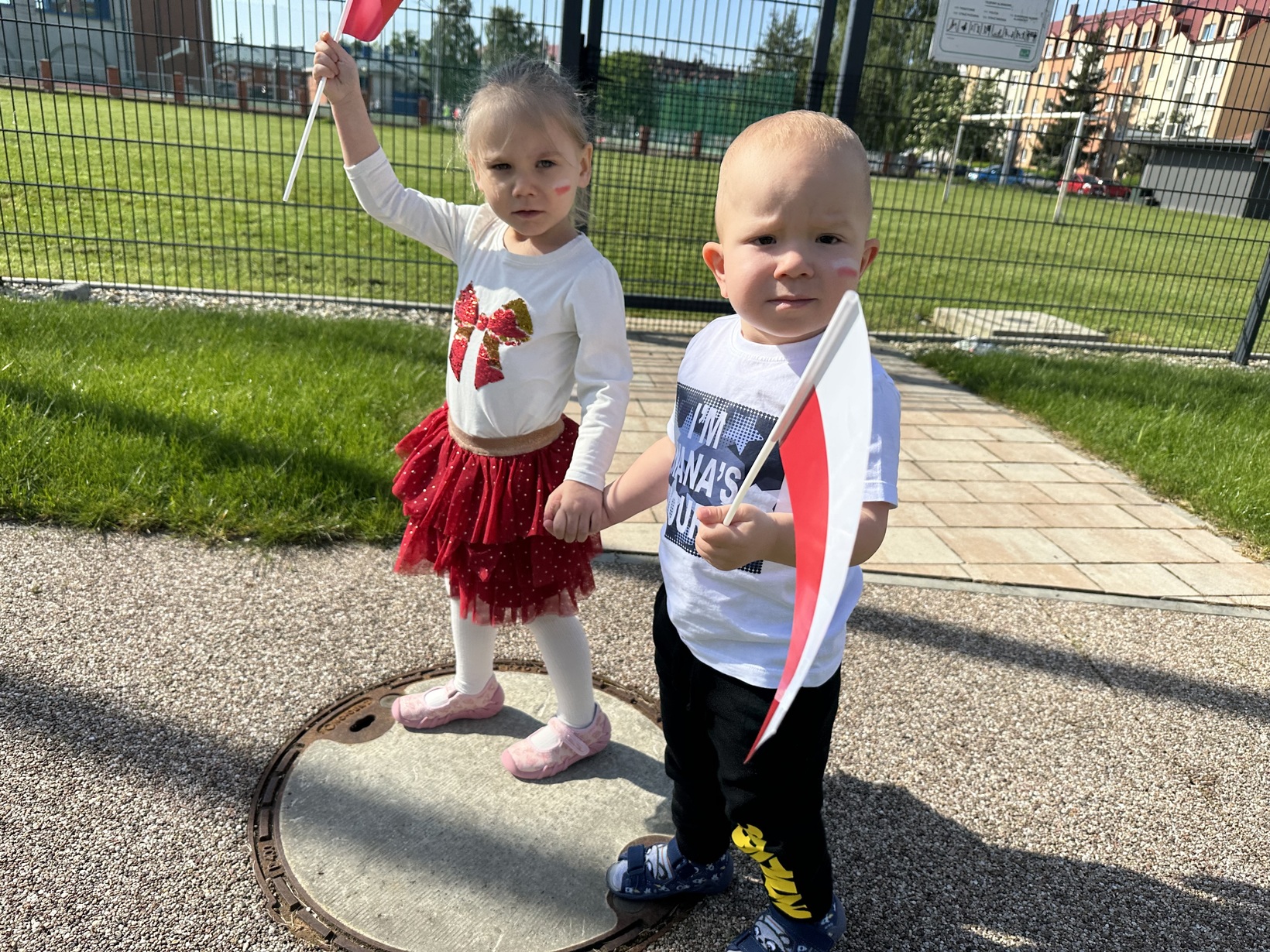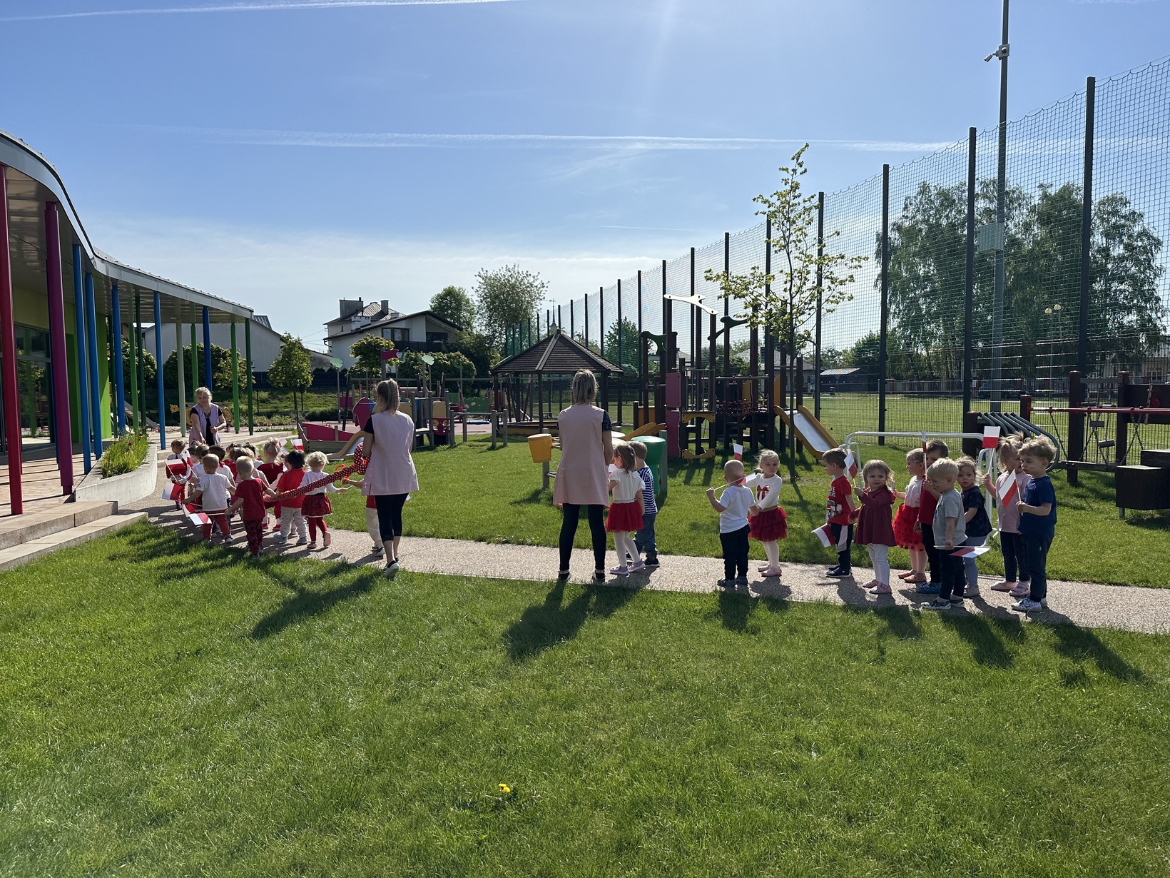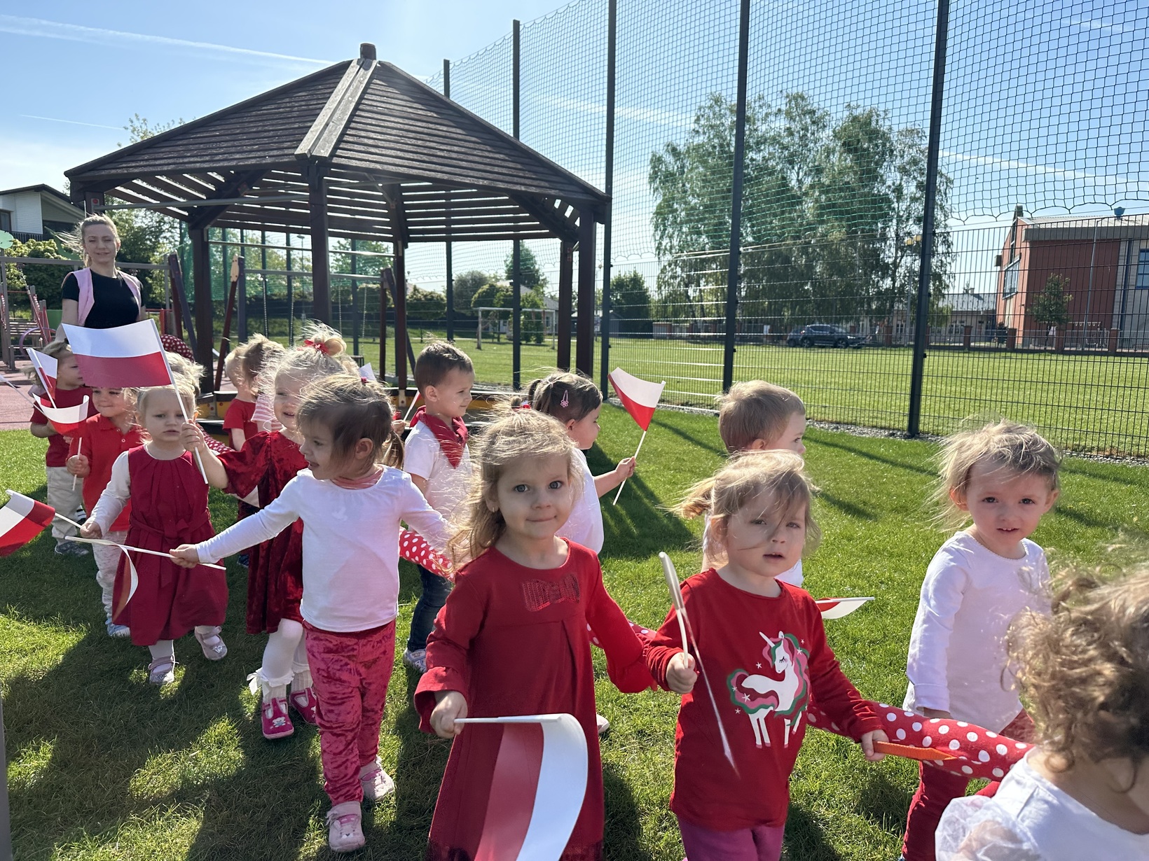 W naszym żłobku przez cały tydzień rozbudzaliśmy zainteresowanie dzieci historią naszego kraju. Dzieci poznawały nasze symbole narodowe, flagę i godło, wysłuchały także hymnu narodowego - Mazurka Dąbrowskiego, a na zajęciach plastycznych wykonały flagi. Na zakończenie dzieci wzięły udział w patriotycznym pochodzie majowym, zorganizowanym przez Panie opiekunki.