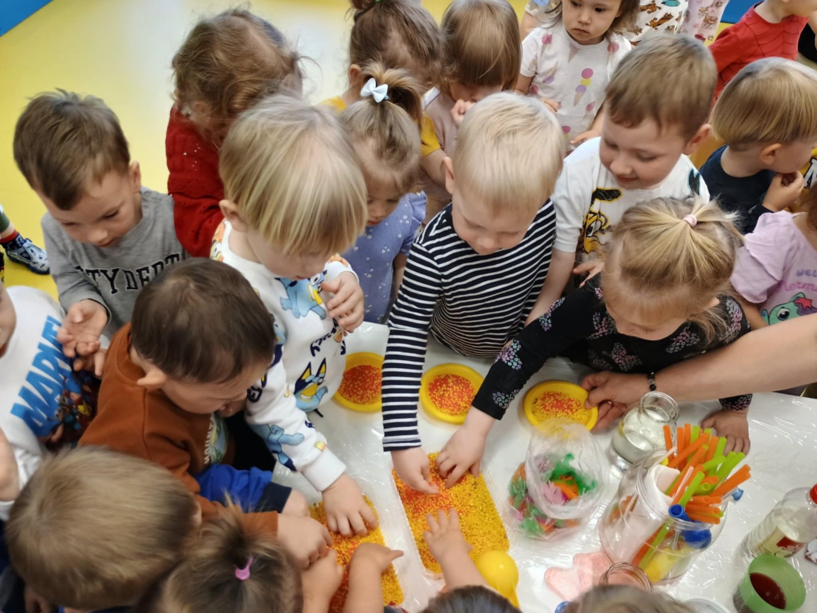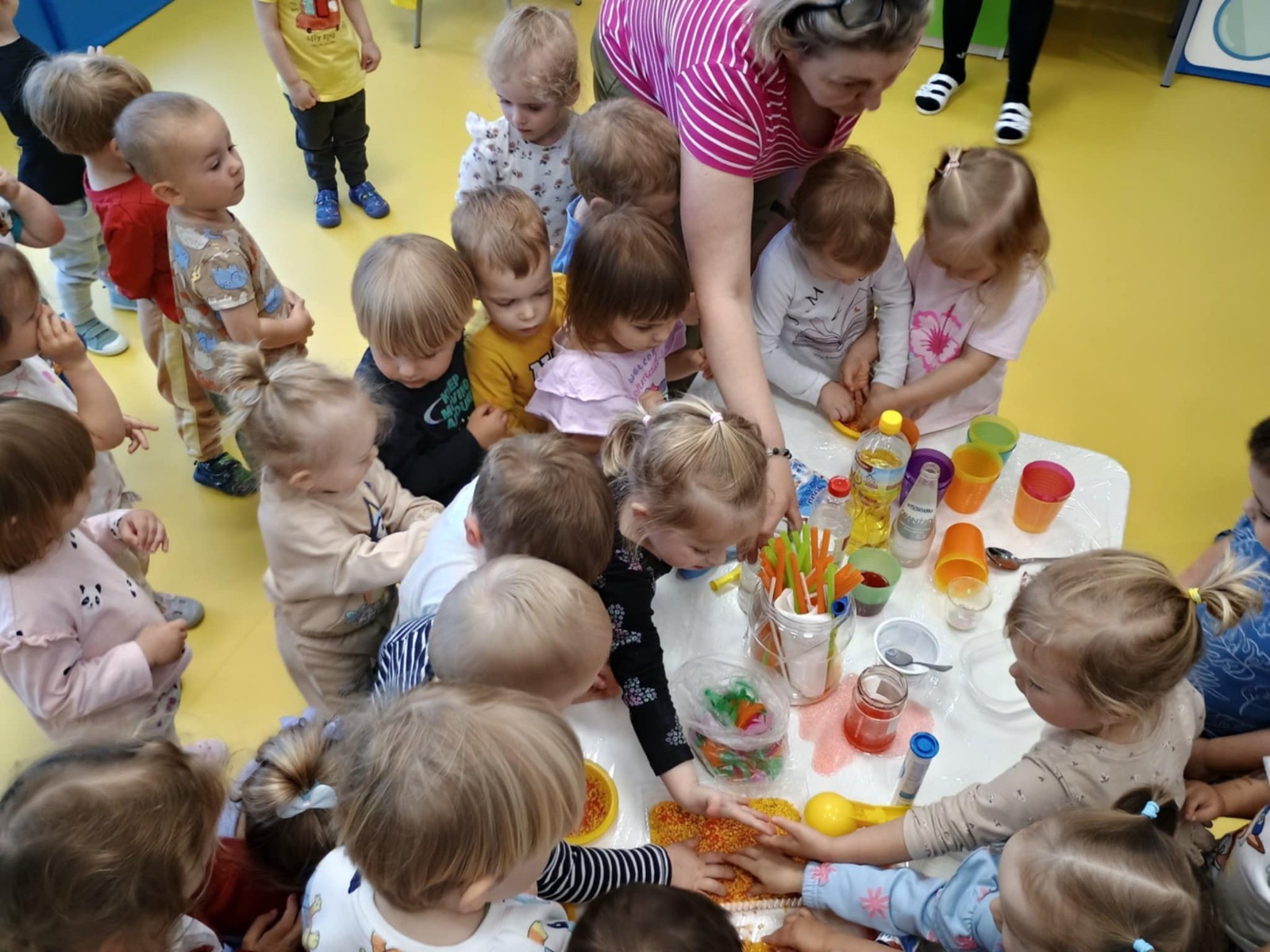 bZdjęcie przedstawia dzieci podczas zajęć w żłobku