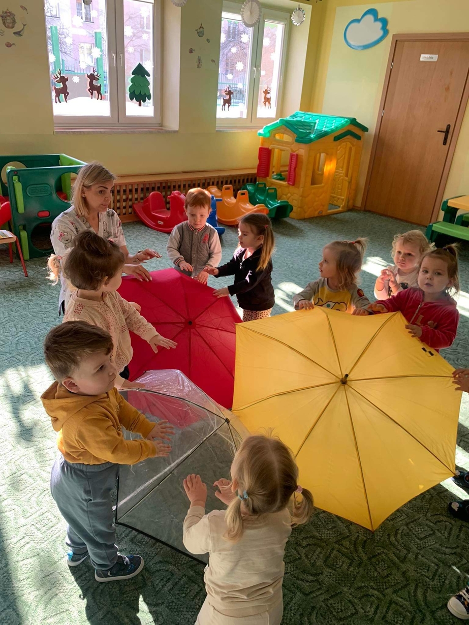 10 lutego obchodzimy Międzynarodowy Dzień Parasola☂️☂️☂️. Wbrew popularnemu twierdzeniu, że w czasie deszczu dzieci się nudzą, nasze Misie świetne się dziś bawiły. Było sporo zabaw ruchowych z wykorzystaniem parasola. Dzieci dowiedziały się jak powstaje deszcz i opowiedziały, jakie kolorowe parasolki mają w swoich domach. Wystukiwaliśmy rytmy "deszczowych piosenek" na parasolkach. Misie z zainteresowaniem wysłuchały też książeczki z serii Kicia Kocia pt." Kicia Kocia i straszna burza". Podsumowaniem zajęć było wykonanie pracy plastycznej "Kolorowe parasole"☔☔☔. Radości było co niemiara, bo kiedy padał u nas "magiczny deszcz" - wcale nie było nudno☺️☺️☺️.