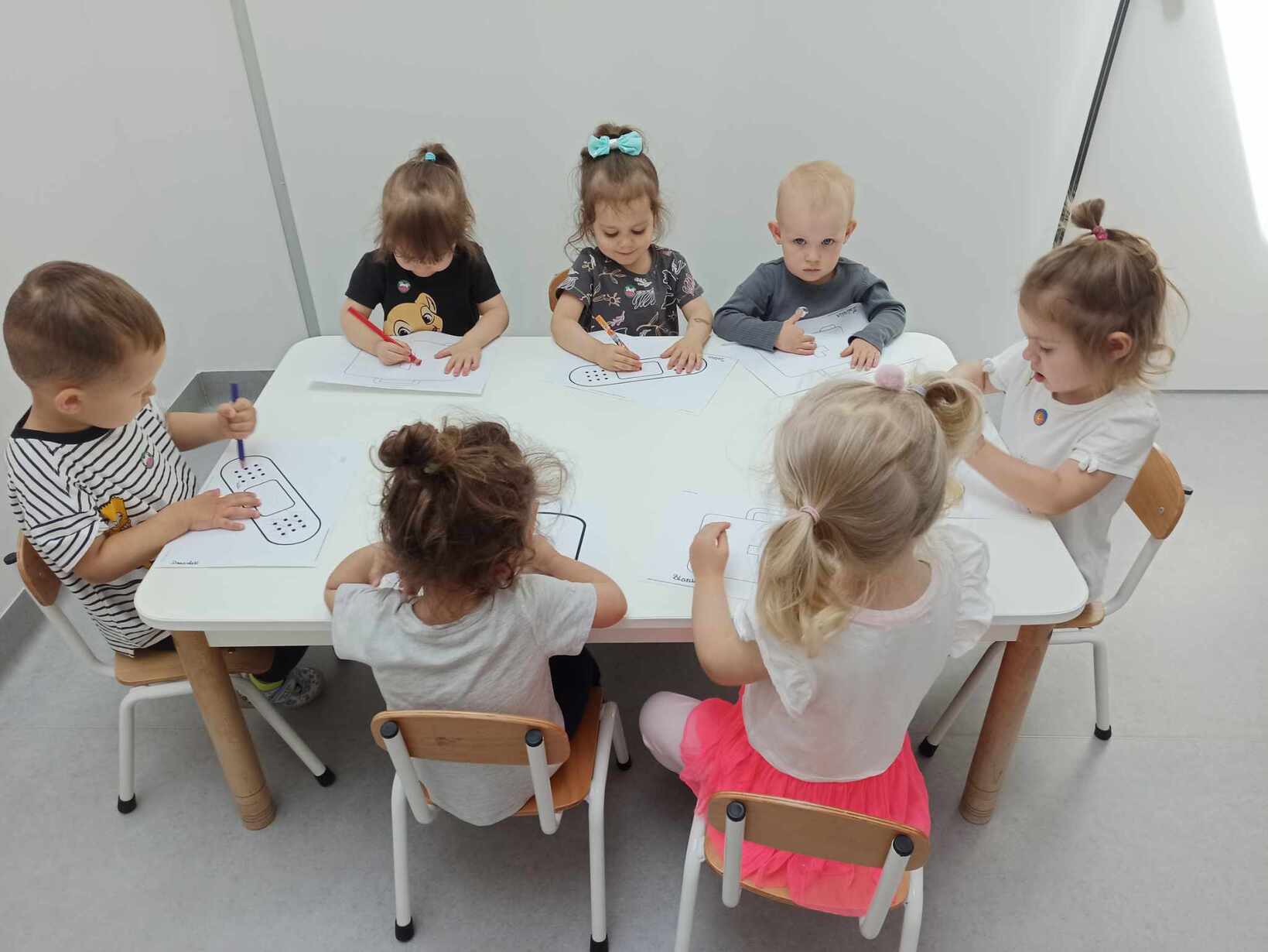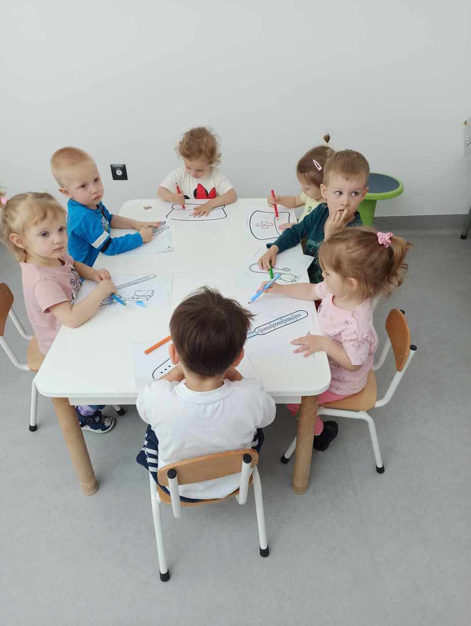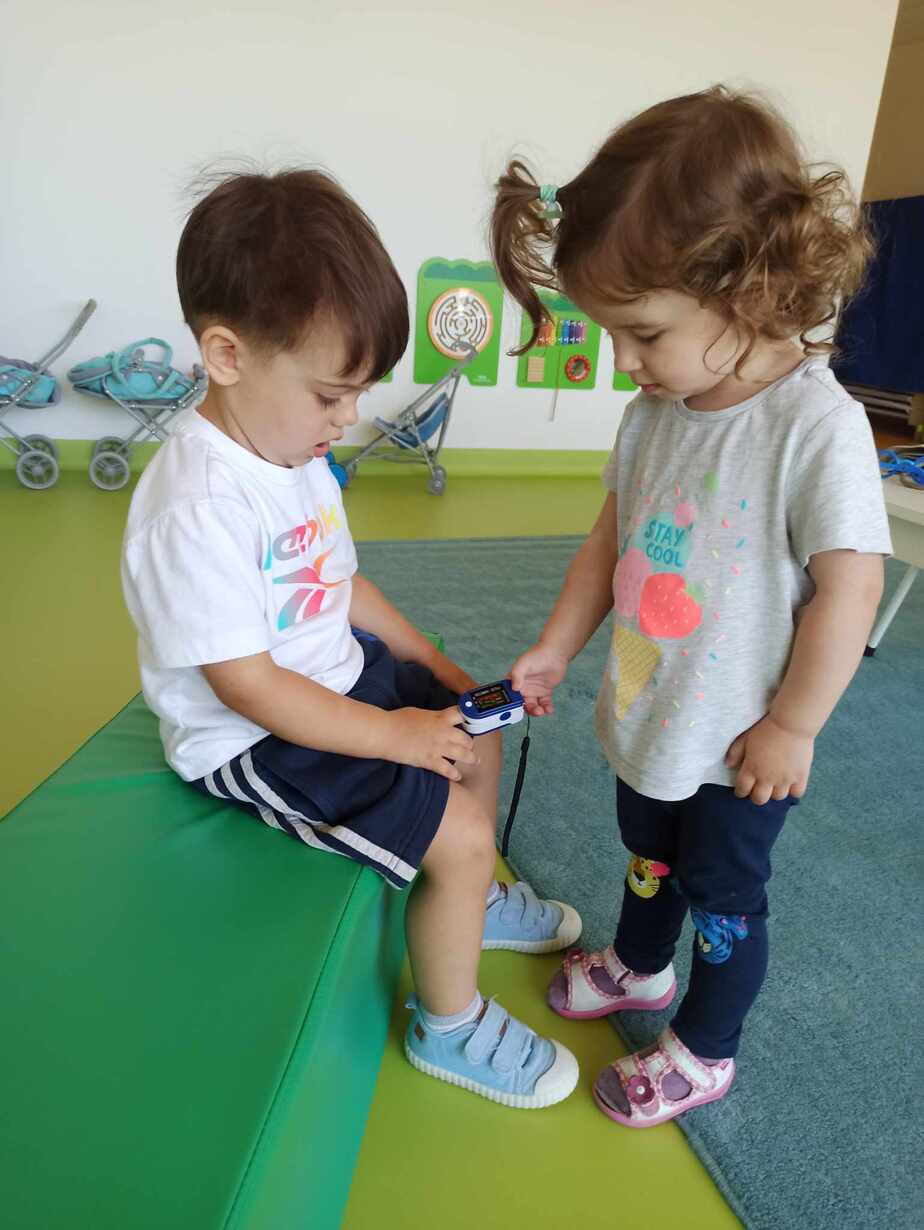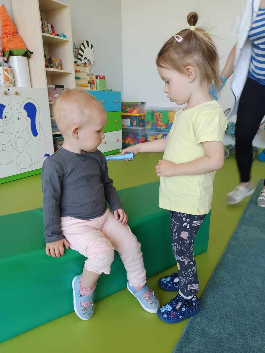 Dzieci poznały różne akcesoria tj. termometr, ciśnieniomierz, plasterki, bandaże na rany, stetoskop, strzykawki oraz zapoznały się z zawartością apteczki znajdującej się w naszym żłobku. Tego dnia podczas warsztatów dzieci z dużym zaangażowaniem wykonywały fikcyjne zabiegi swoim kolegom i koleżankom, wcielając się w pielęgniarzy ? Za udział w zajęciach dzieci otrzymywały naklejki „Dzielny Pacjent”. W ramach zajęć plastycznych dzieci pokolorowały atrybuty pielęgniarki.