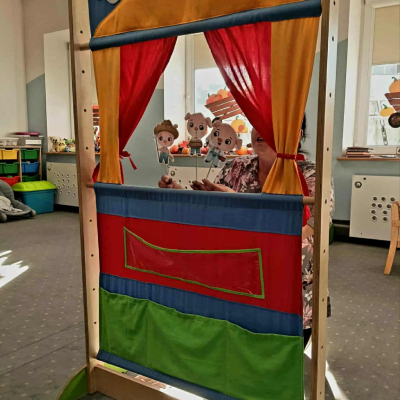 5 listopada w Dniu Postaci z Bajek maluszki poznały bajkowych bohaterów poprzez zabawę maskotkami, oglądały książeczki,a także wysłuchały bajki o "Trzech małych świnkach" w formie teatrzyku.