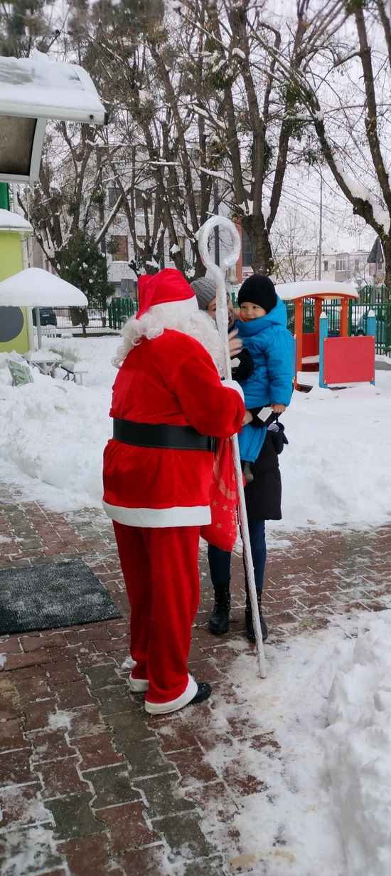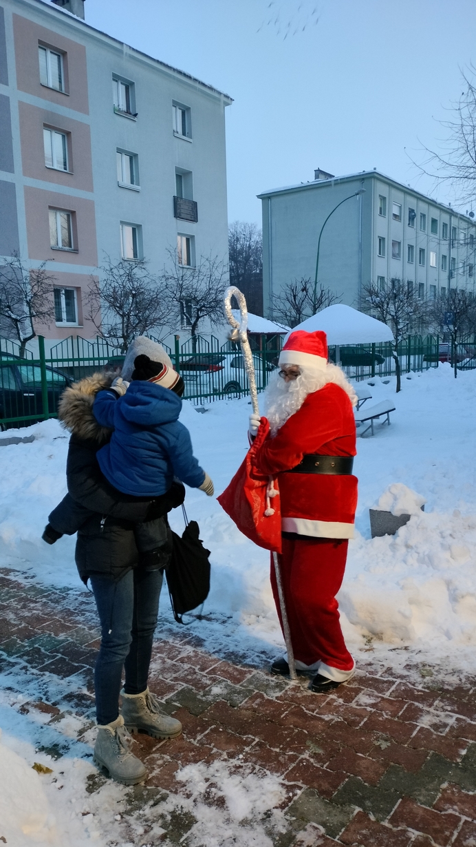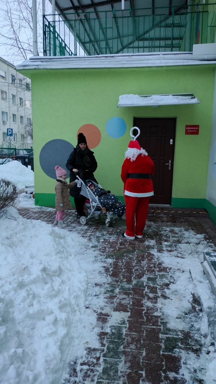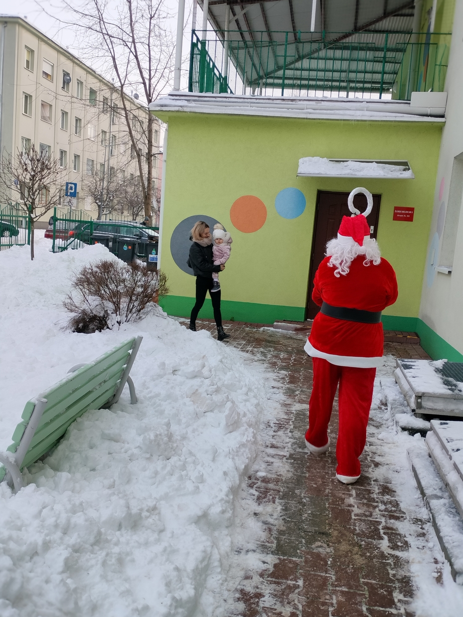 Mimo mrozu Święty Mikołaj ?witał wszystkich podopiecznych Żłobka uśmiechem oraz słodkim poczęstunkiem???. Dla niektórych maluszków było to pierwsze spotkanie ze Świętym. Dziękujemy Mikołaju za to poranne powitanie i ciepłe uściski. Cieszymy się, że przybyłeś do nas z pięknymi podarkami???.