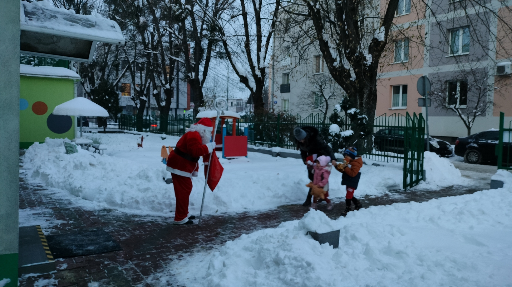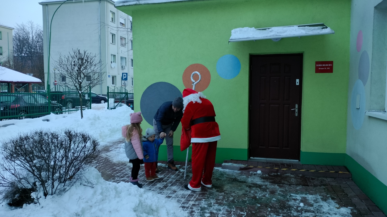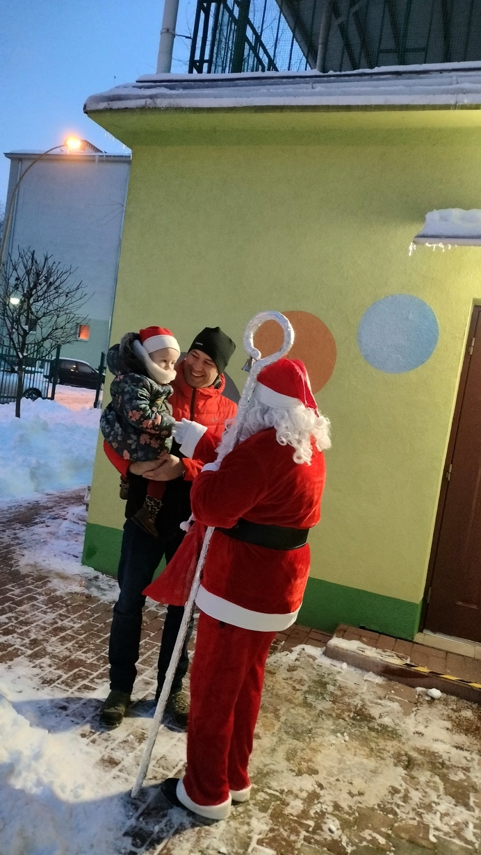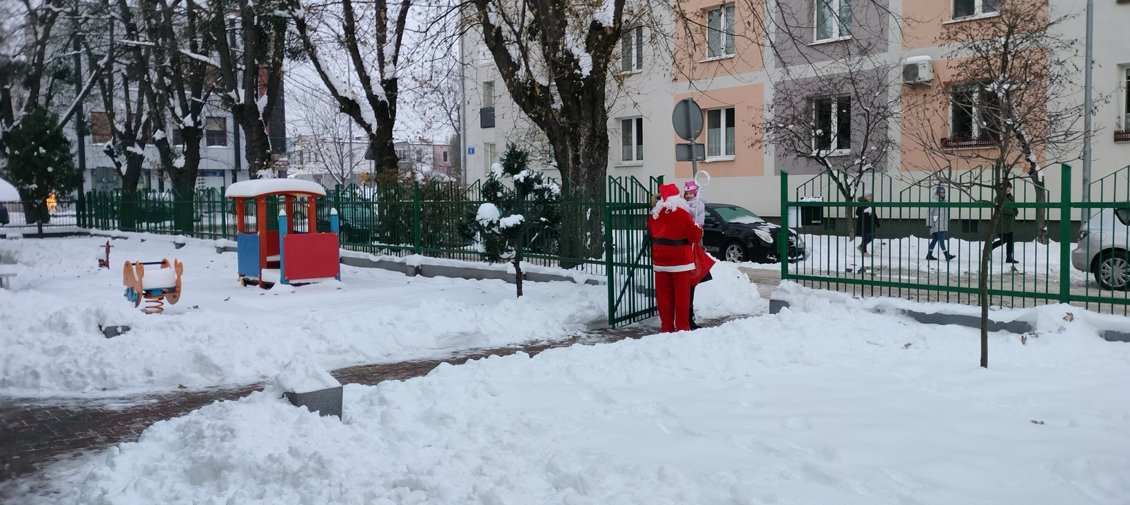 Mimo mrozu Święty Mikołaj ?witał wszystkich podopiecznych Żłobka uśmiechem oraz słodkim poczęstunkiem???. Dla niektórych maluszków było to pierwsze spotkanie ze Świętym. Dziękujemy Mikołaju za to poranne powitanie i ciepłe uściski. Cieszymy się, że przybyłeś do nas z pięknymi podarkami???.