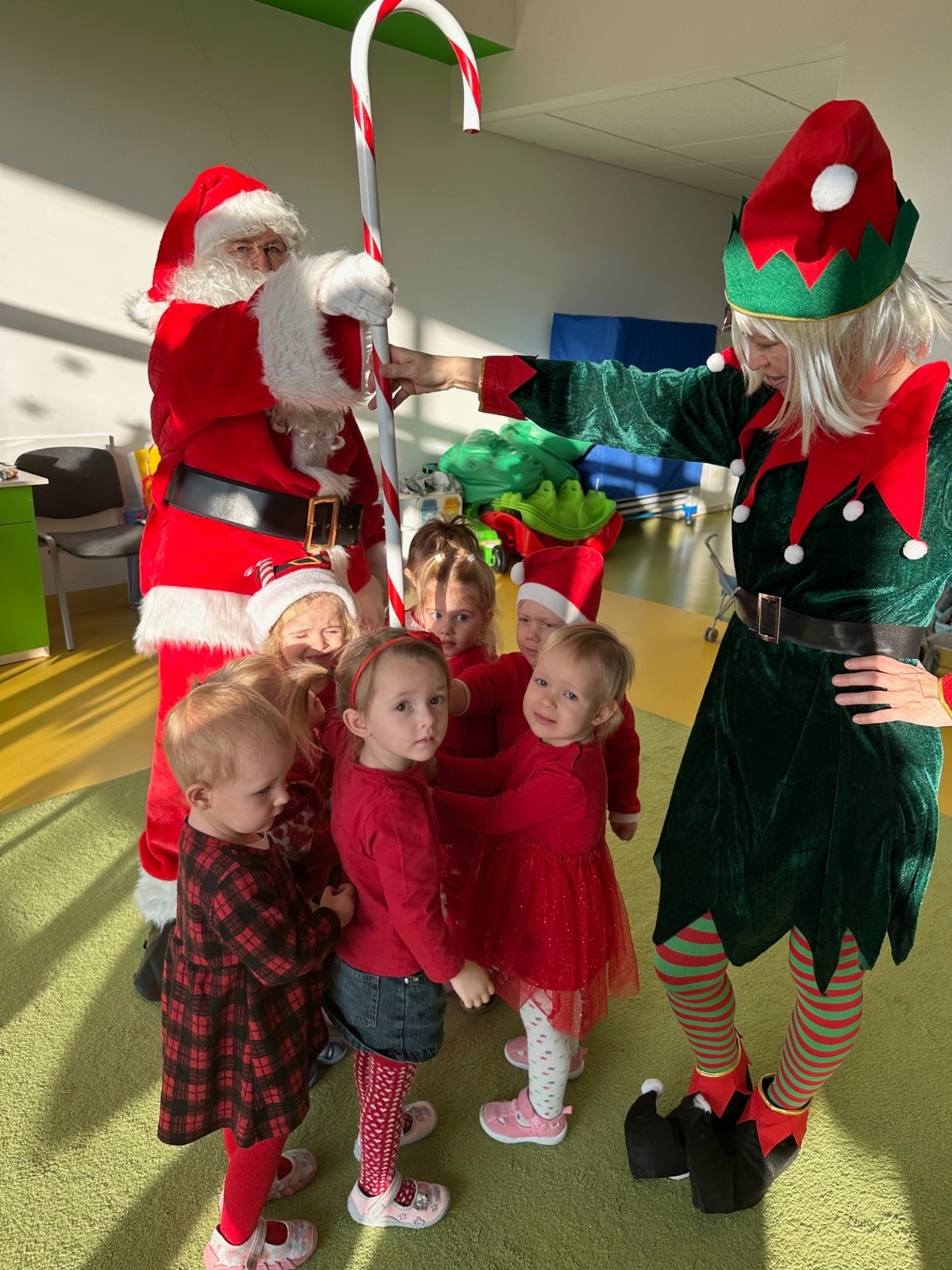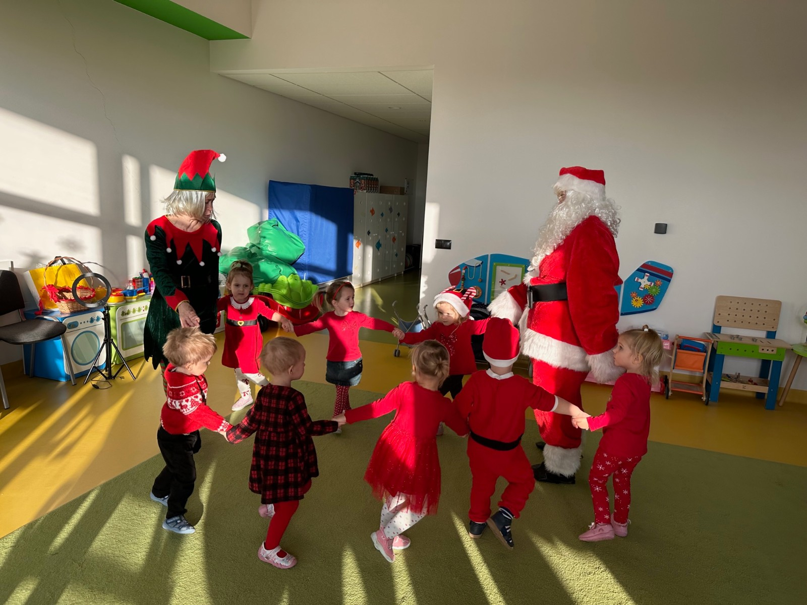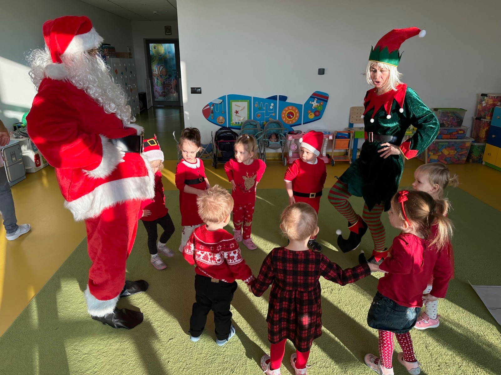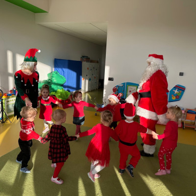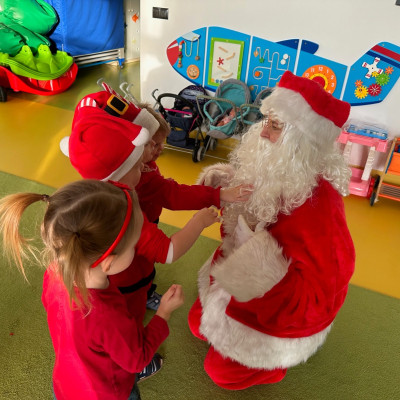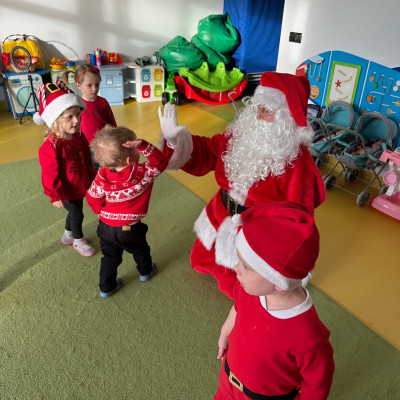 Święty Mikołaj chodził po korytarzach i grupach w asyście pomocnika Elfa i każde dziecko otrzymało paczkę pełną upominków. Dzieci, dziękowały Mikołajowi za prezenty i zapraszały ponownie.