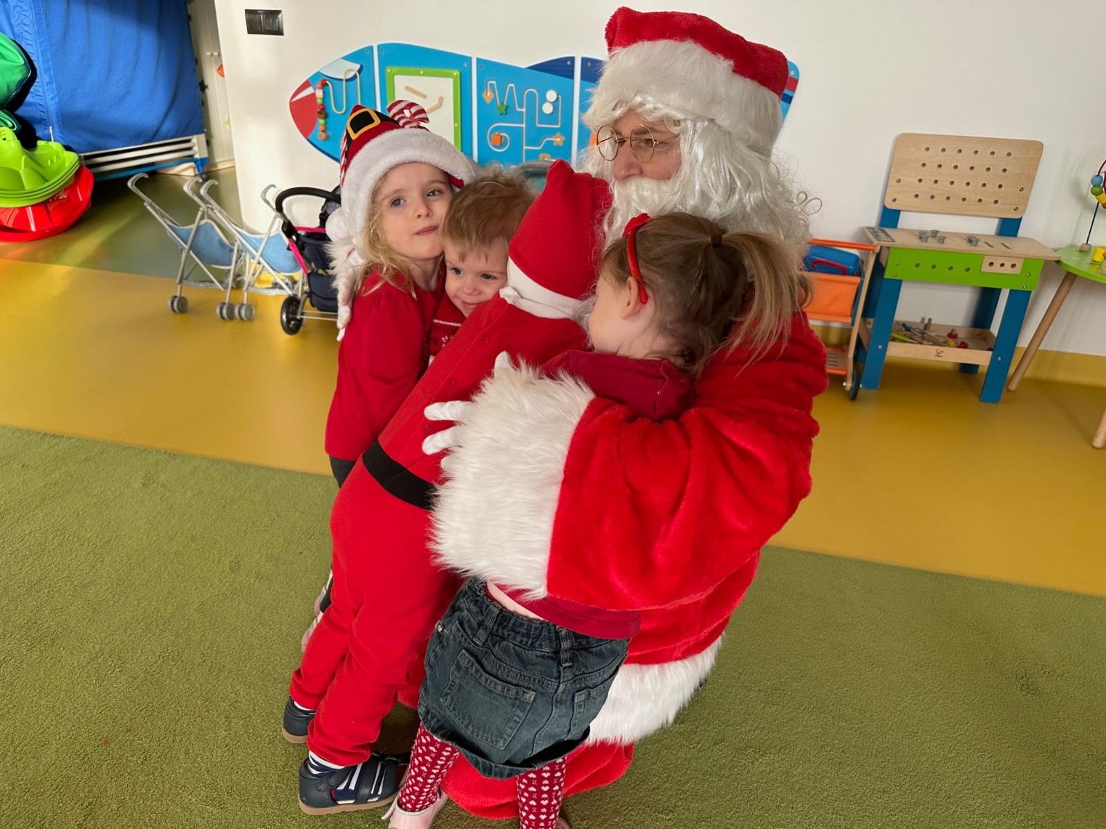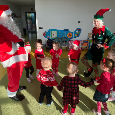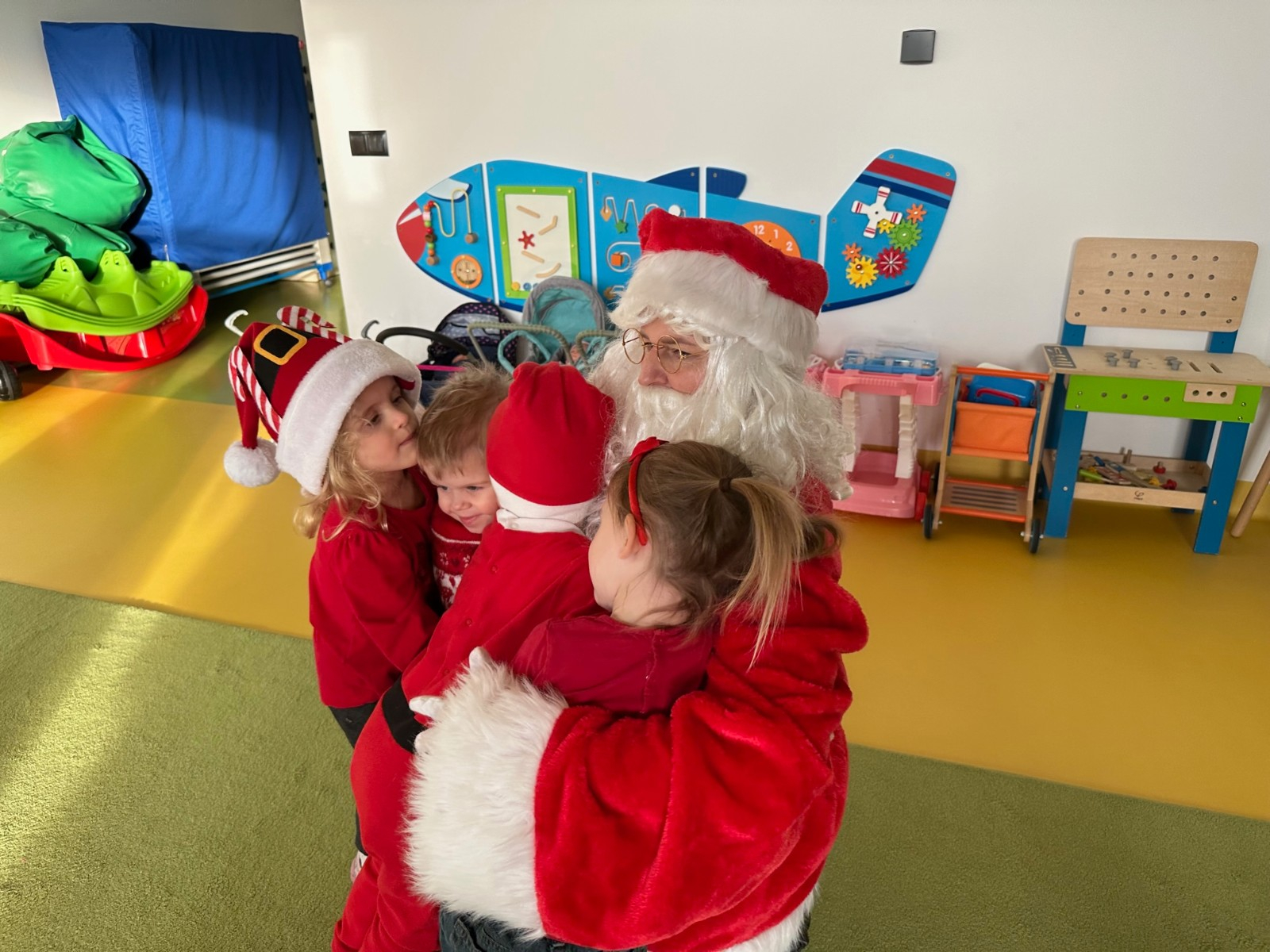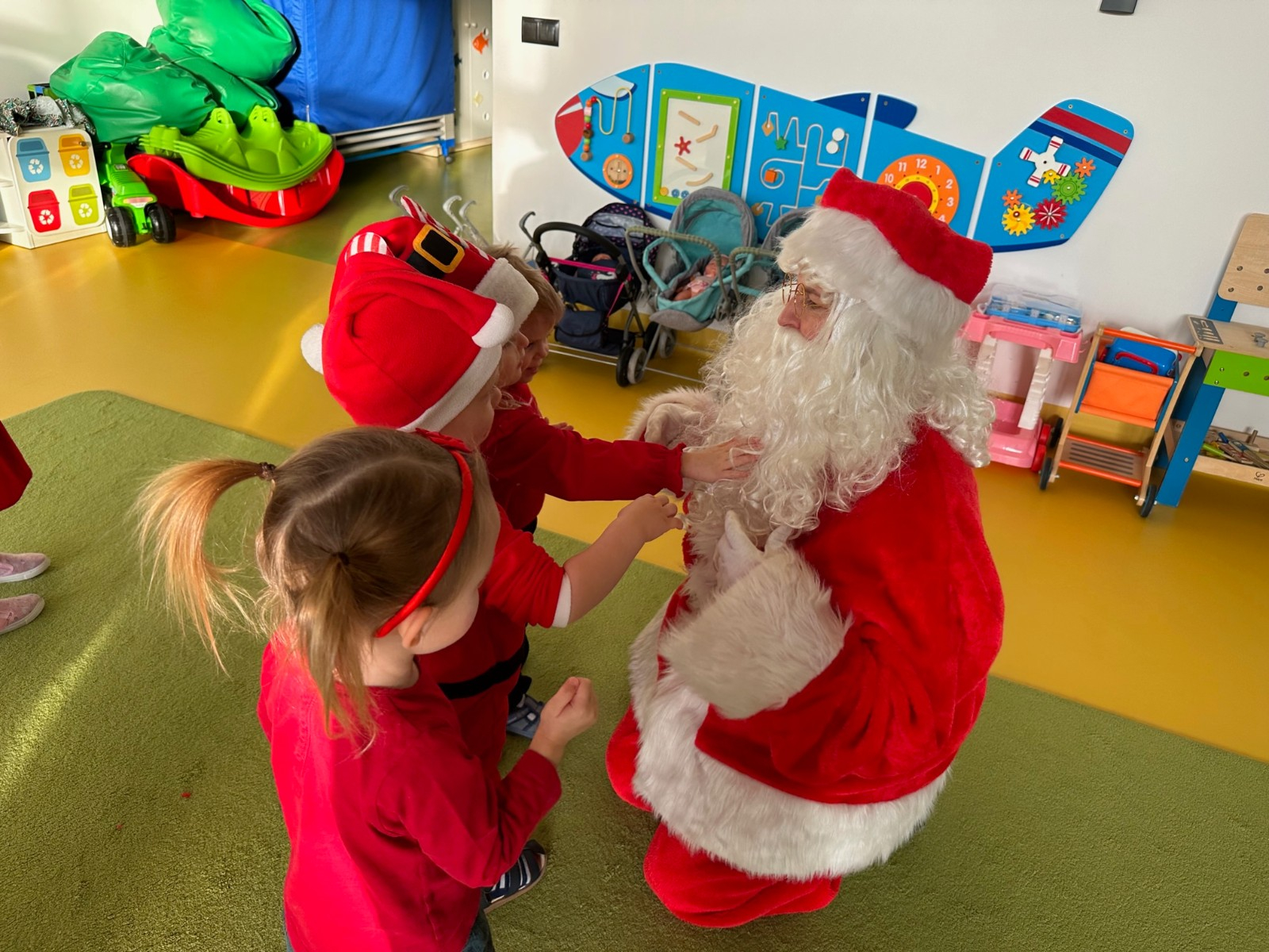 Święty Mikołaj chodził po korytarzach i grupach w asyście pomocnika Elfa i każde dziecko otrzymało paczkę pełną upominków. Dzieci, dziękowały Mikołajowi za prezenty i zapraszały ponownie.
