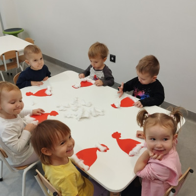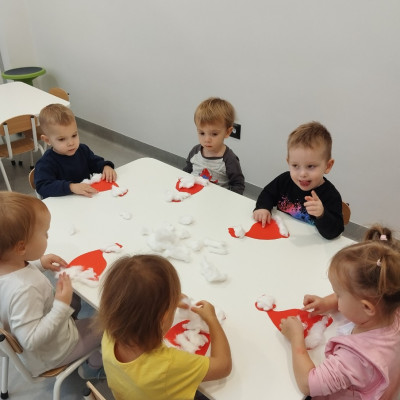W dniu dzisiejszym nasz żłobek odwiedził Święty Mikołaj. Dzieci już od kilku dni przygotowywały się na wizytę Świętego, w związku z tym ciocie uczyły dzieci piosenek i wierszyków o Świętym Mikołaju. W ramach przygotowań nie mogło zabraknąć w naszym żłobku również rytuału ubierania choinki, którą dzieci przystrajały tuż przed wizytą Świętego Mikołaja. Żłobkowicze wykonywały także ciekawe prace plastyczne przedstawiające podobiznę świętego.