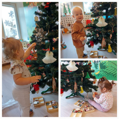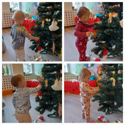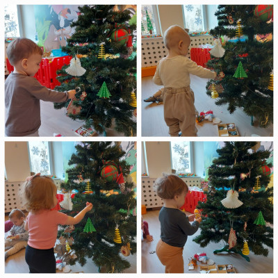 Jak co roku początkiem grudnia obowiązkiem wszystkich dzieci jest napisanie listu do Św. Mikołaja oraz odpowiednie przygotowanie się na jego przyjście. Wiec w naszym planie dnia nie zabrakło czytania i oglądania zimowo- świątecznych bajeczek, pracy plastycznej z motywem mikołajkowym oraz udekorowanie sali i ubranie choinki.