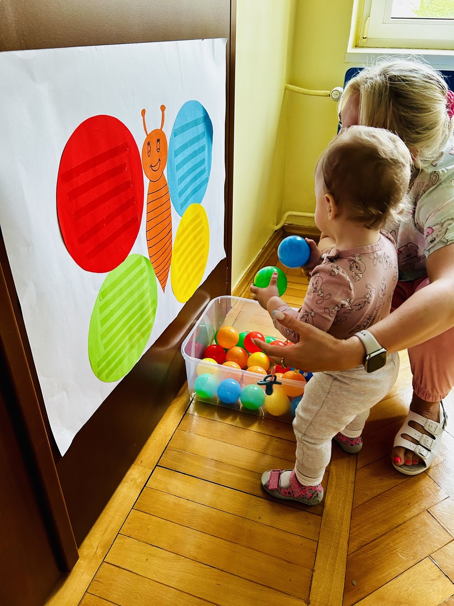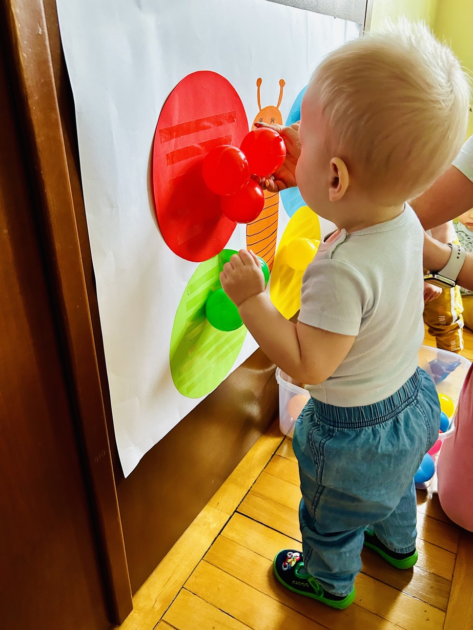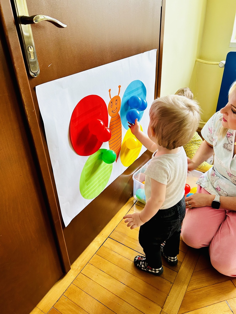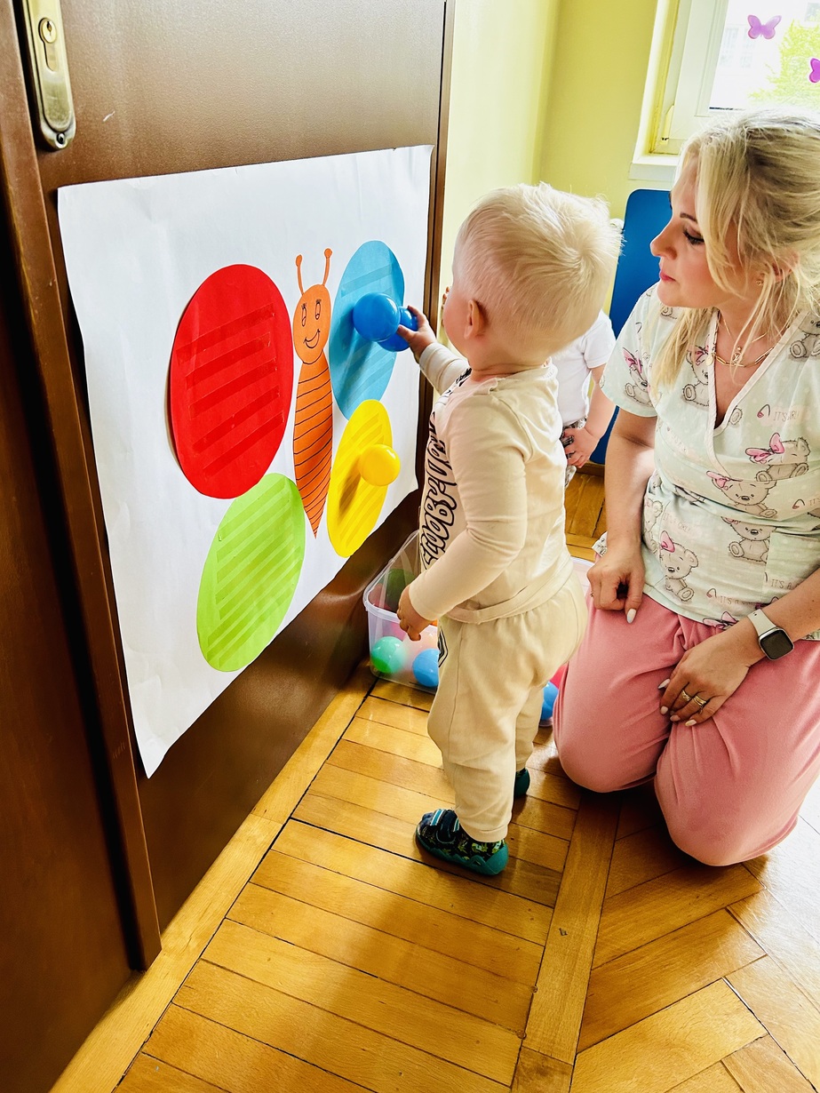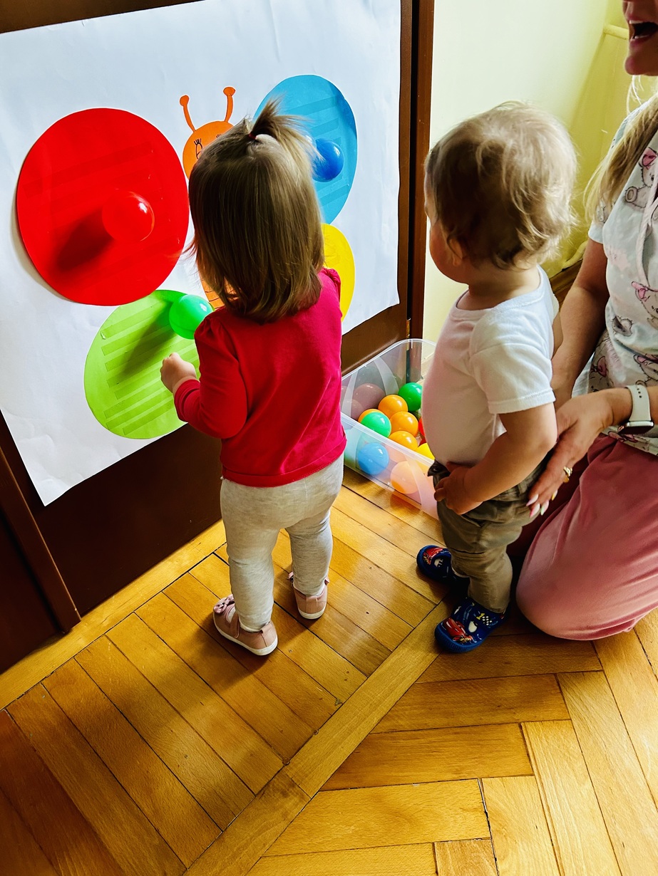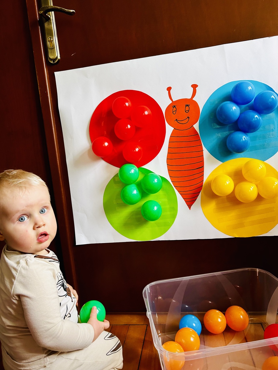 Ostatnio królowały u Nas piłeczki.Dzieci spędzały czas na zabawie nimi . Biedroneczki przyklejały i odklejały odpowiednie kolory piłek.