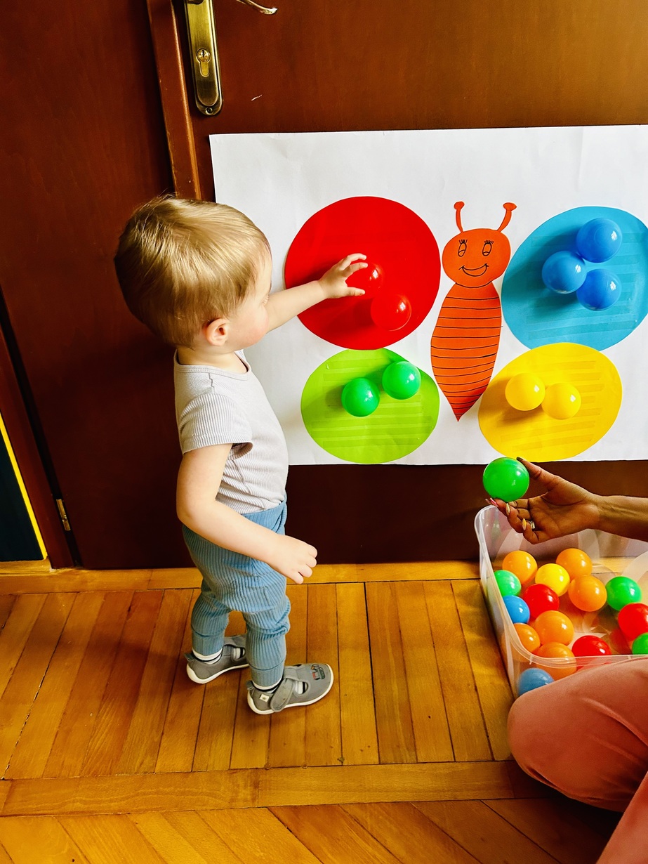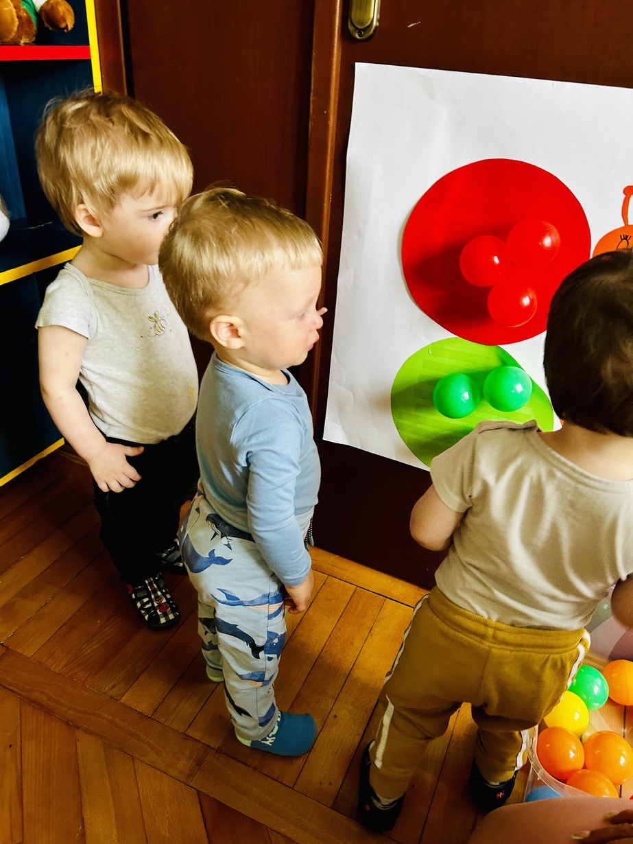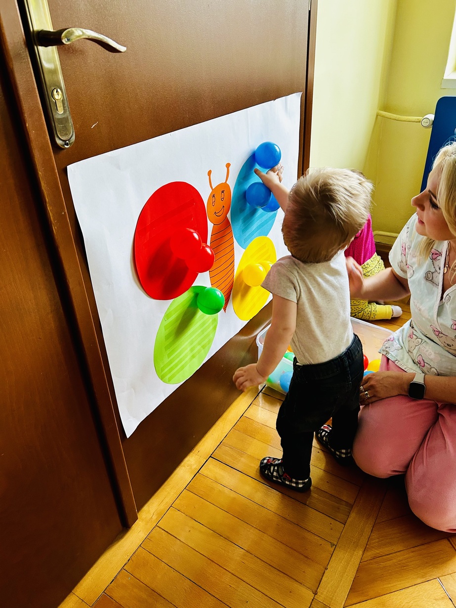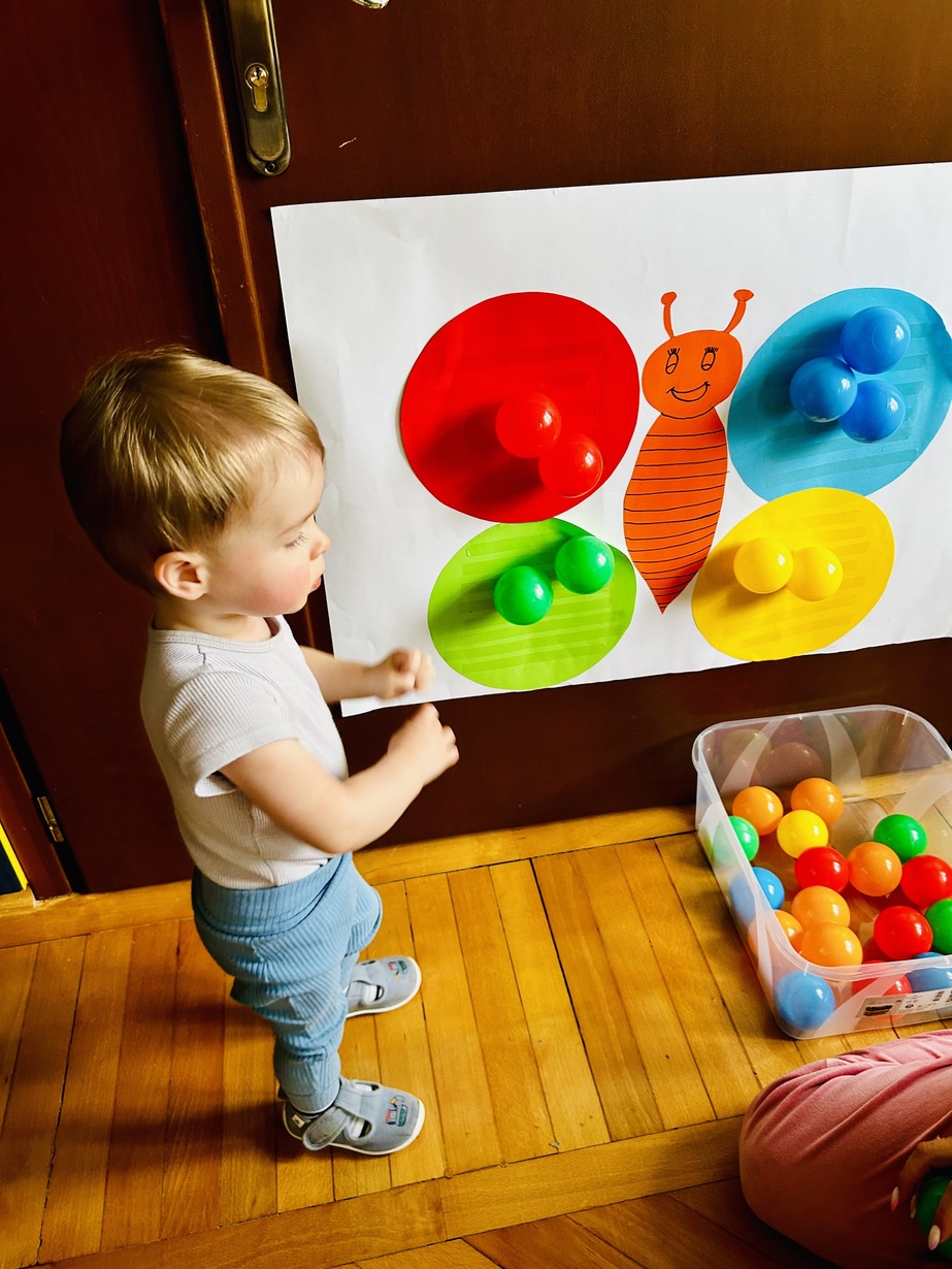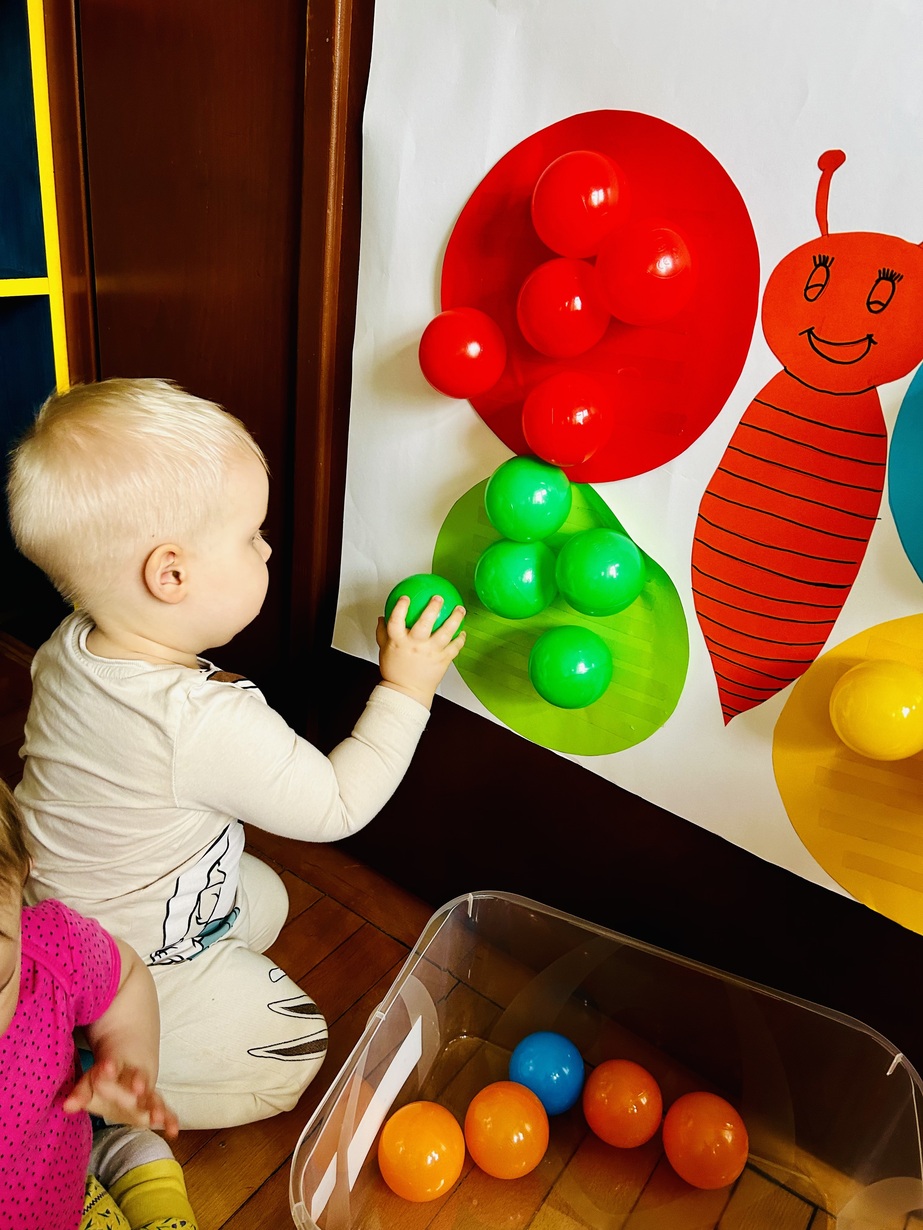 Ostatnio królowały u Nas piłeczki.Dzieci spędzały czas na zabawie nimi . Biedroneczki przyklejały i odklejały odpowiednie kolory piłek.