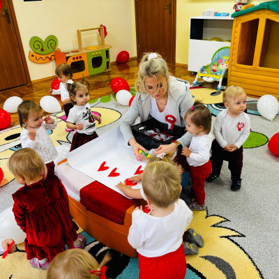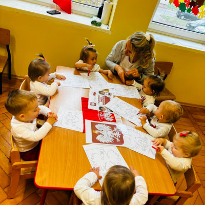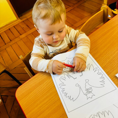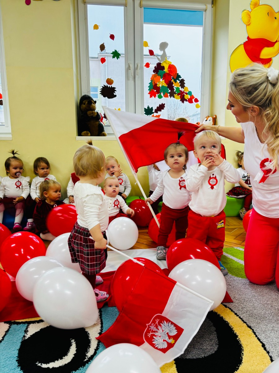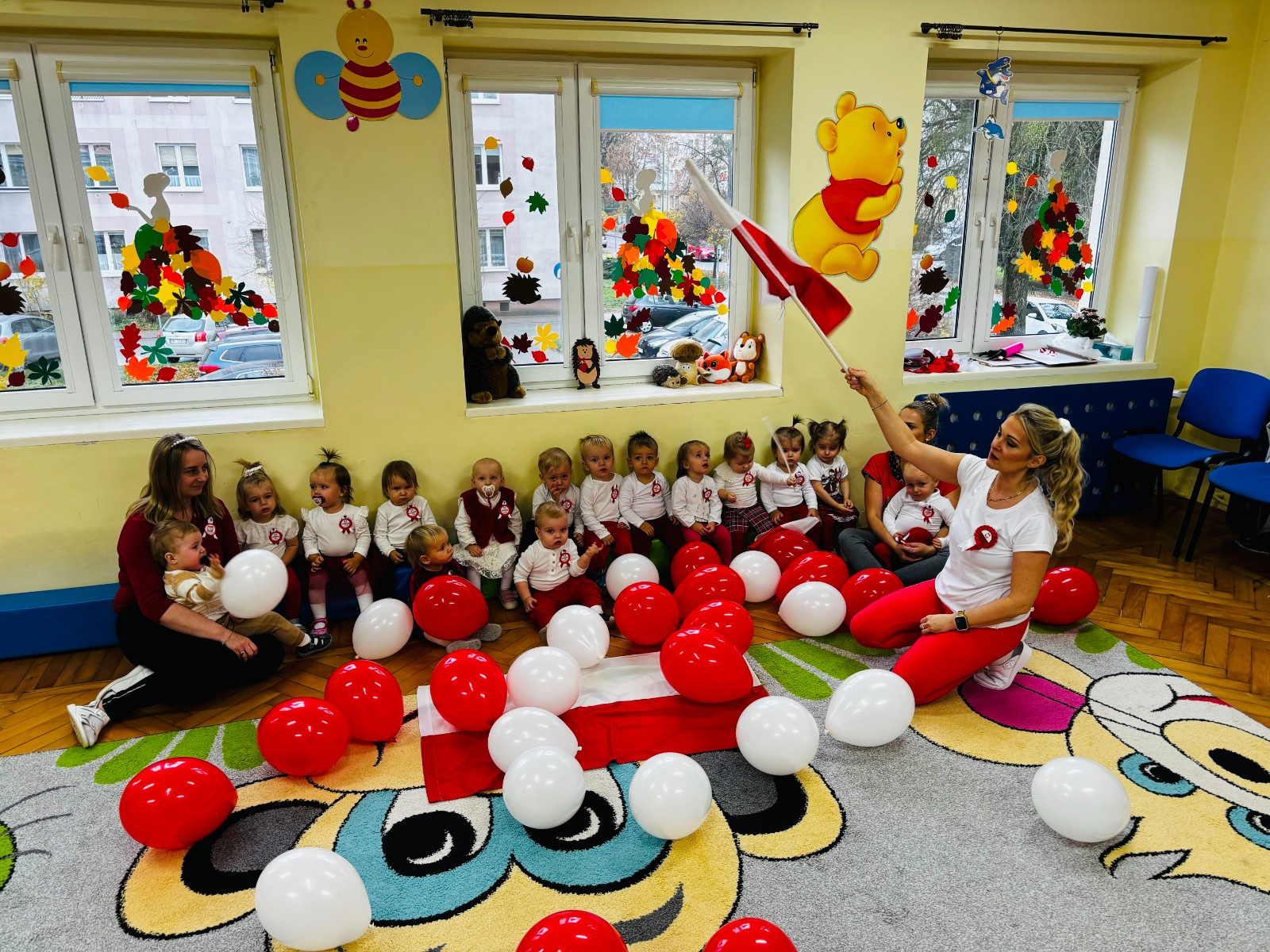 W naszym żłobeczku grupa Biedroneczki obchodziła Dzień Niepodległość . Dzieciaczki zapoznały się z symbolami narodowymi . Wspólnie wysłuchaliśmy hymnu oraz innych piosenek patriotycznych. Na koniec dzieci wykonały prace plastyczne .
