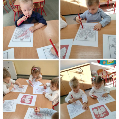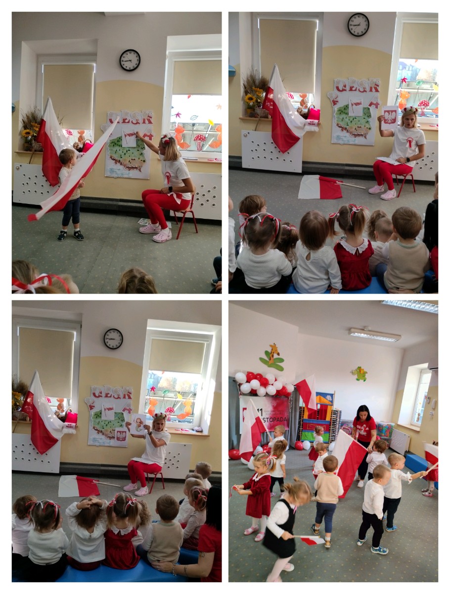 Zdjęcia przedstawiają dzieci podczas tematycznych zajęć z okazji świata 11 listopada
