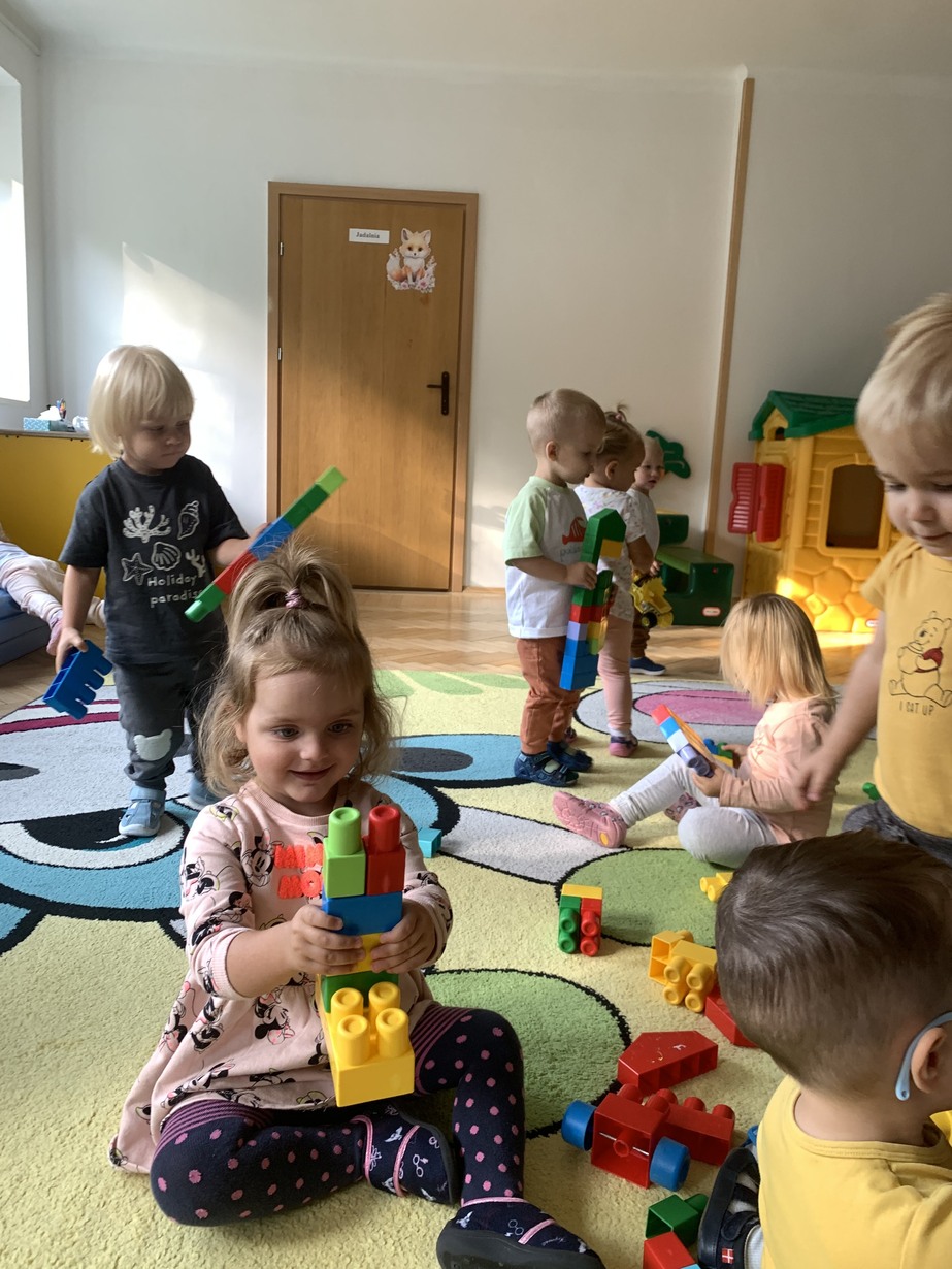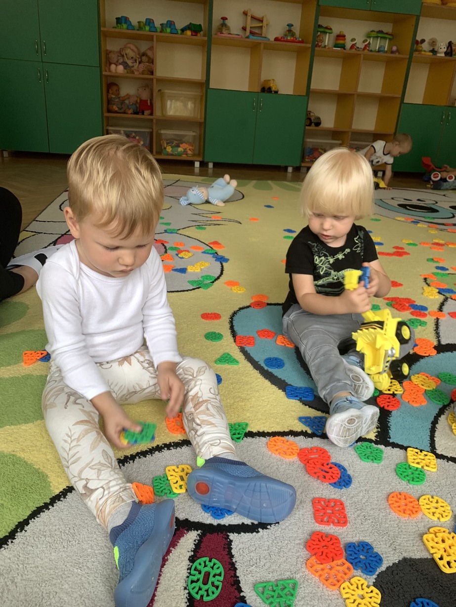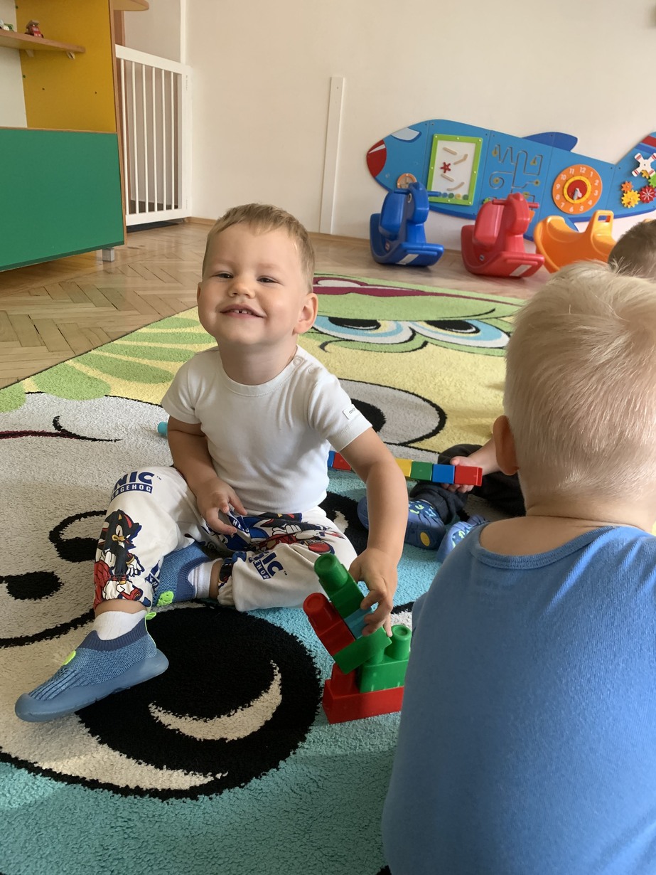 Przyzwyczajamy się do rytmu naszego żłobkowego dnia, razem zaczynamy dobrze się bawić a buzie nam się coraz częściej uśmiechają ??