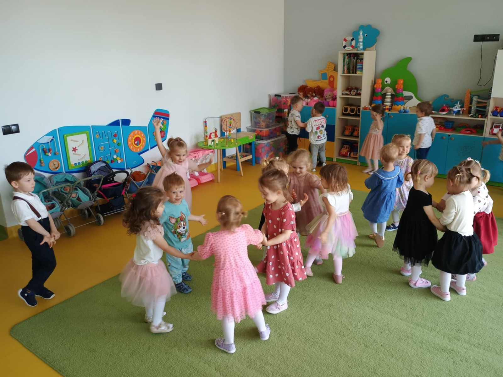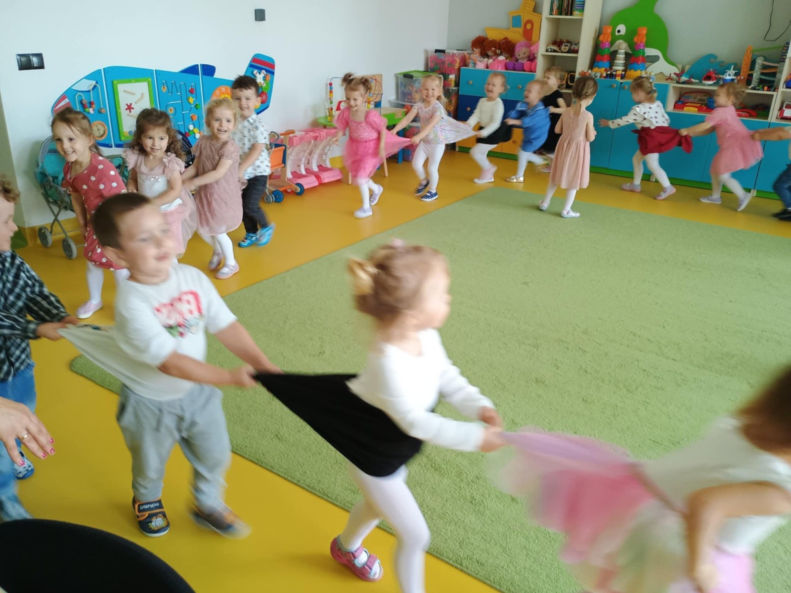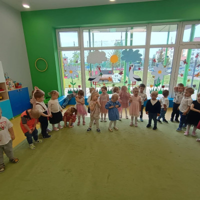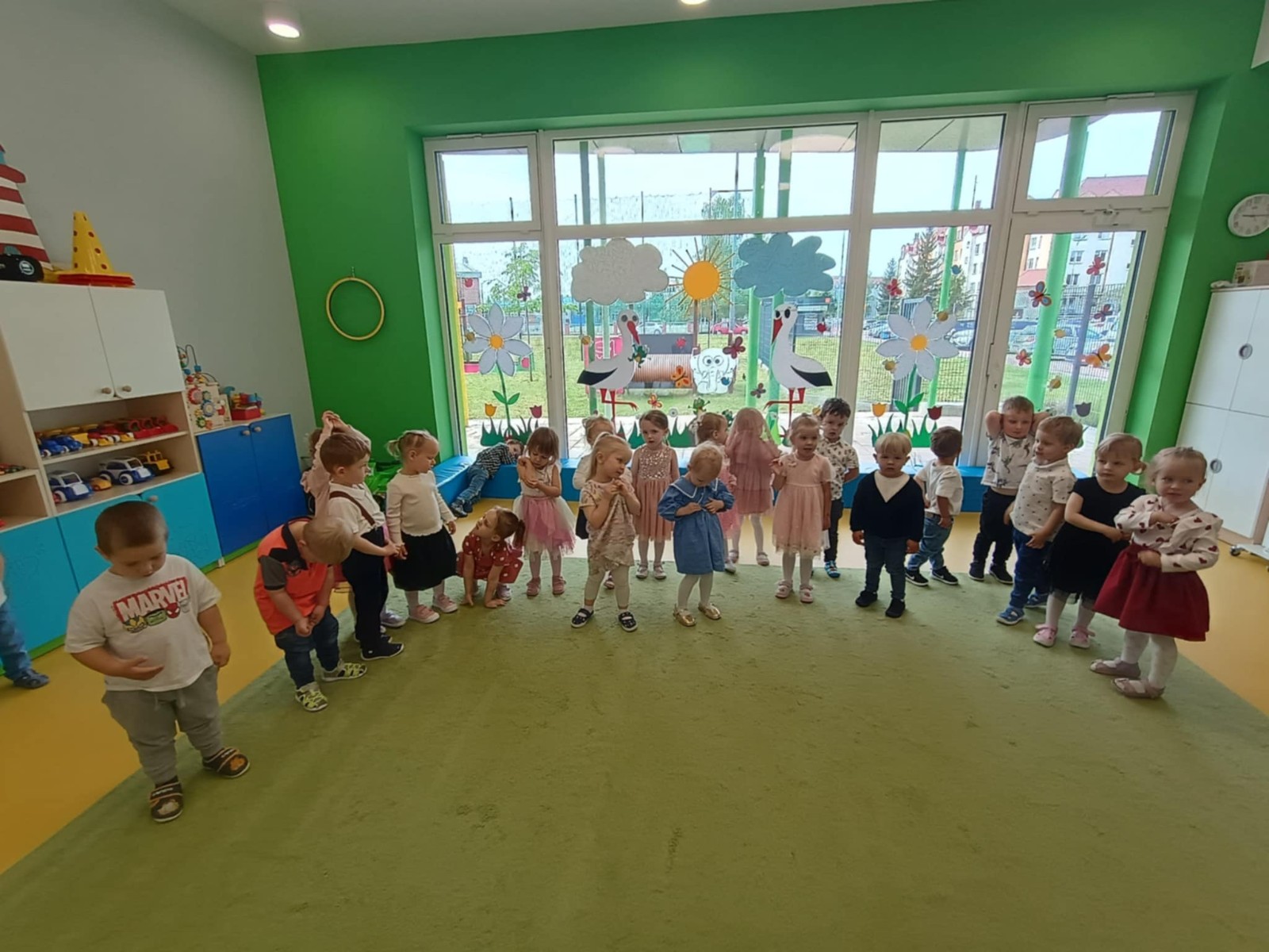 Zdjęcie przedstawia dzieci z grupy Misie świętujące Dzień Mamy.