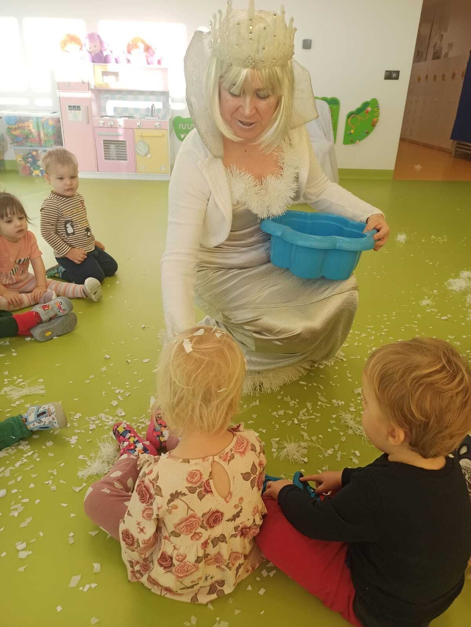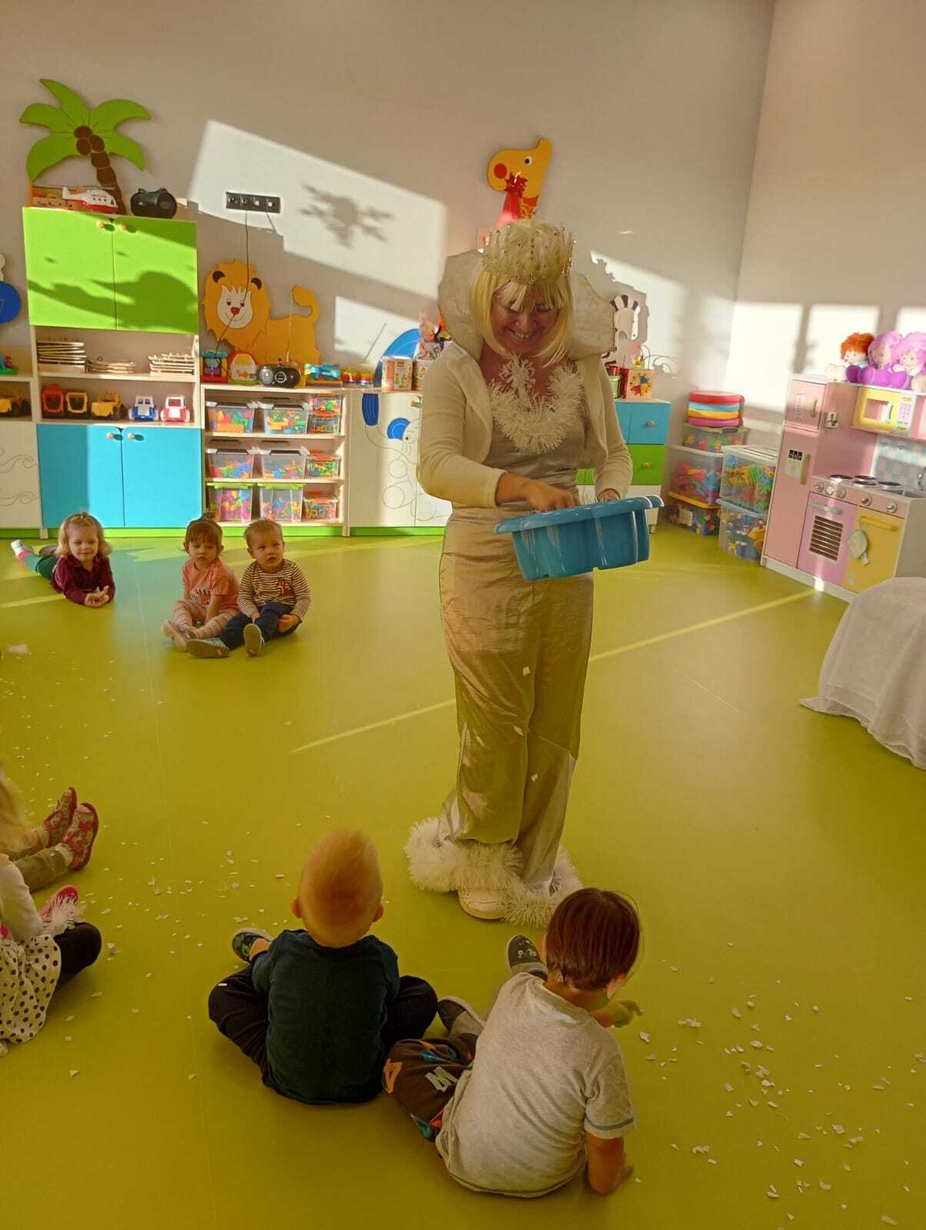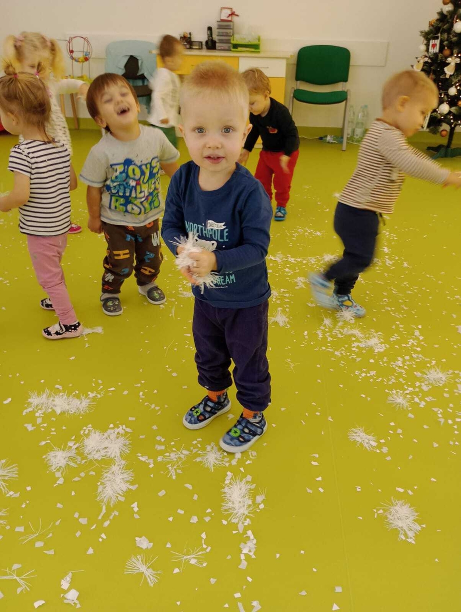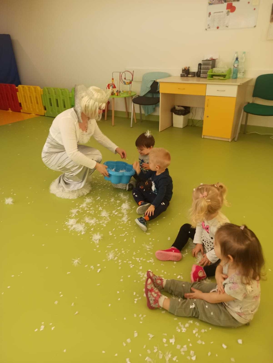 Do naszych maluchów w odwiedziny przyszła Pani Zima, która używając swojej magicznej różdżki wyczarowała dla dzieci śnieg!
