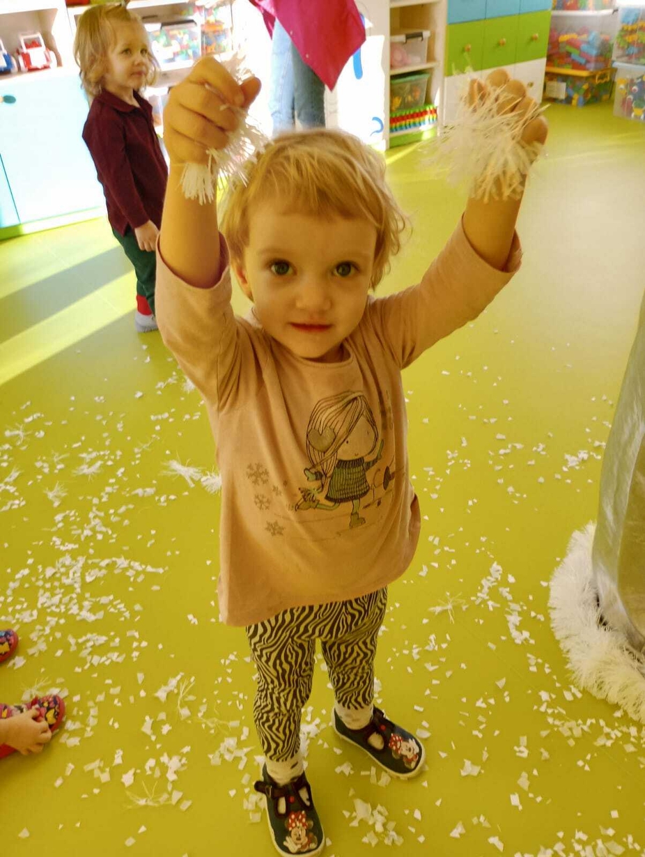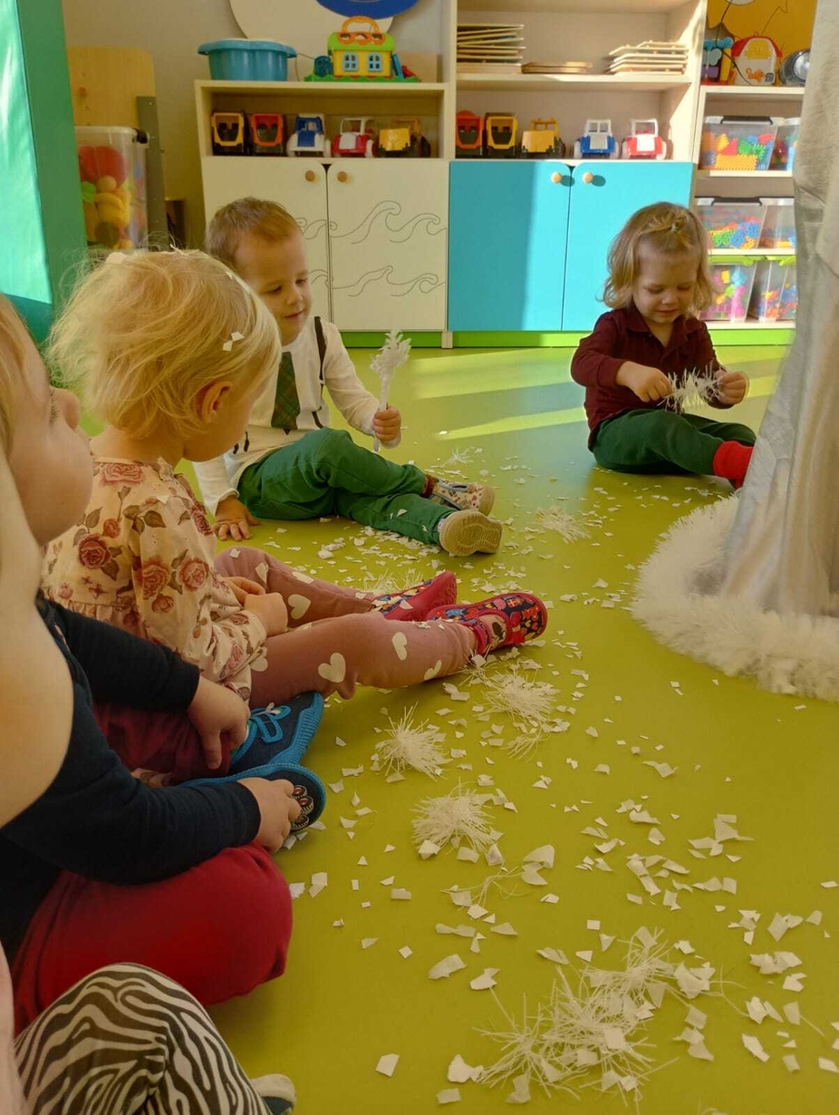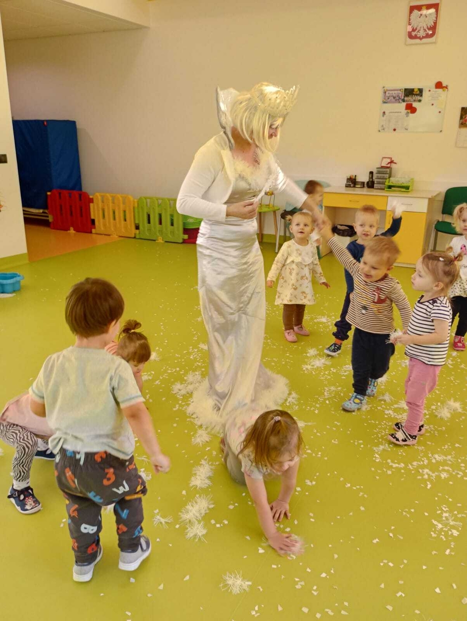 Do naszych maluchów w odwiedziny przyszła Pani Zima, która używając swojej magicznej różdżki wyczarowała dla dzieci śnieg!
