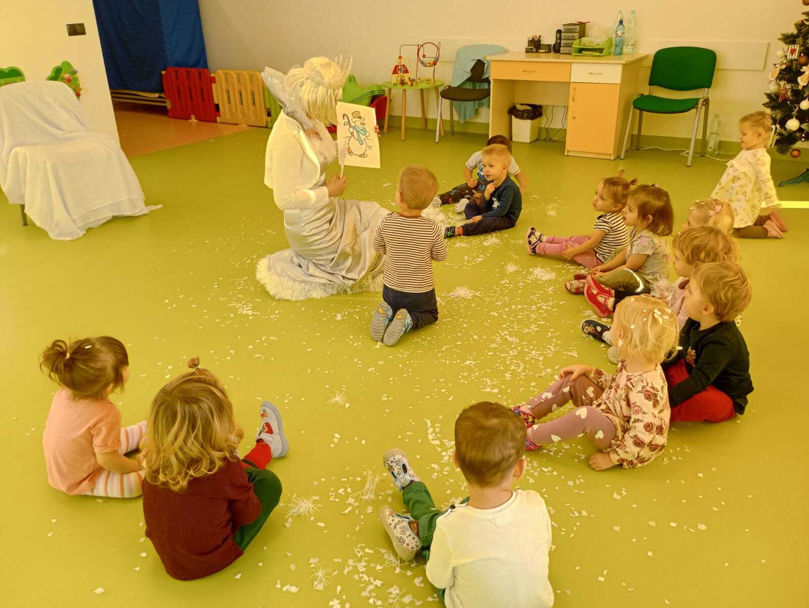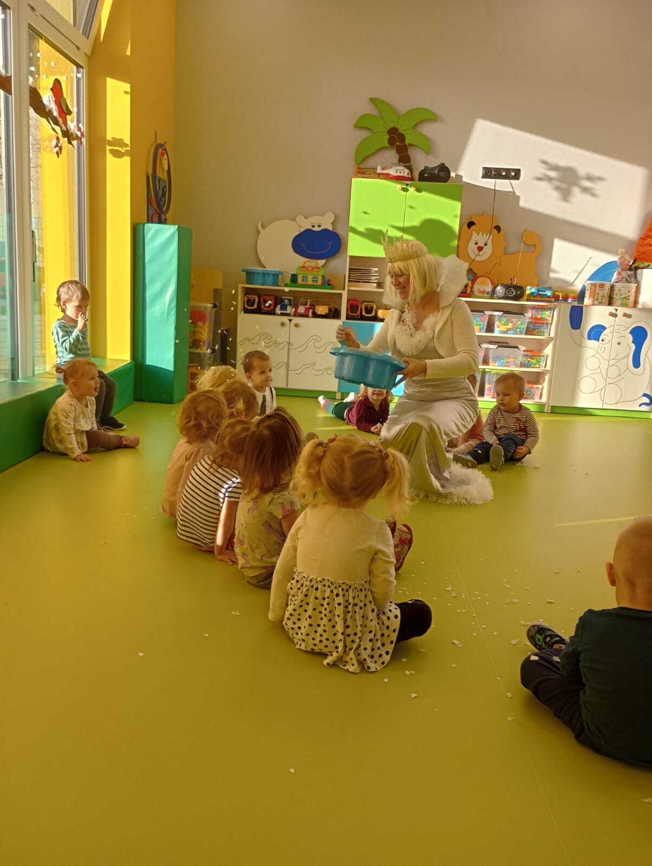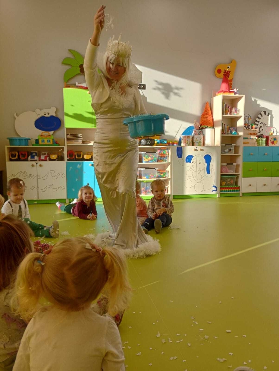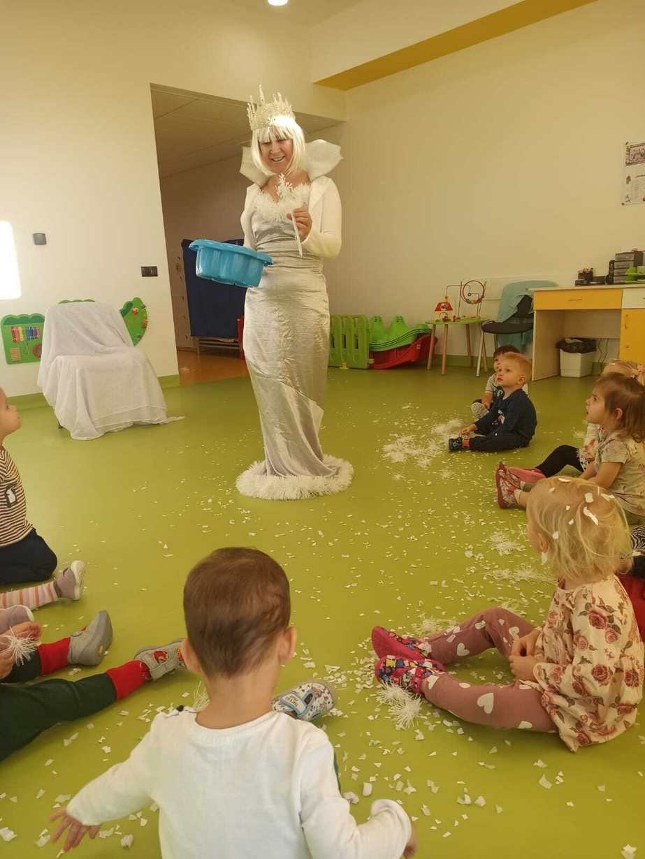 Do naszych maluchów w odwiedziny przyszła Pani Zima, która używając swojej magicznej różdżki wyczarowała dla dzieci śnieg!