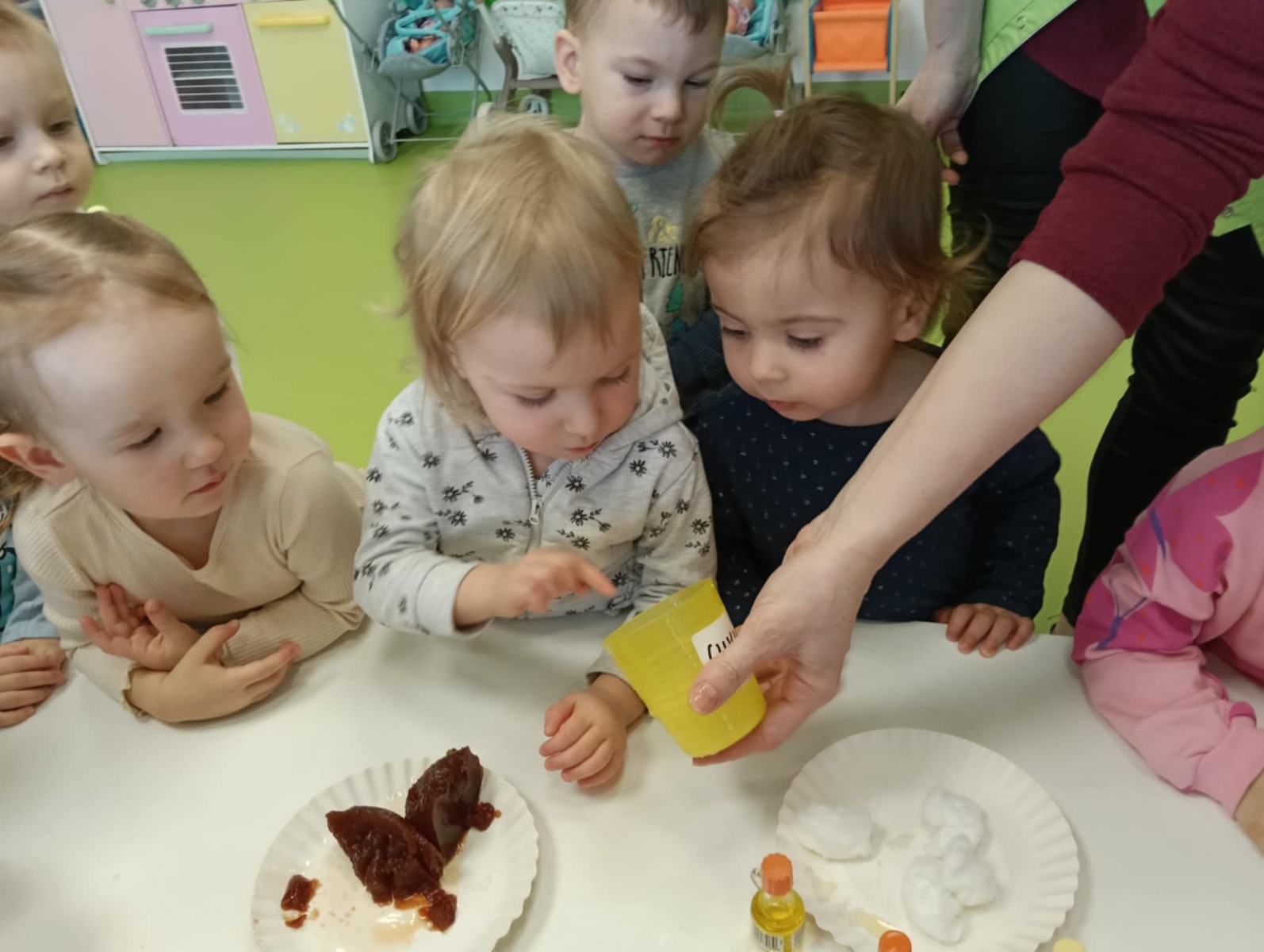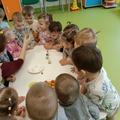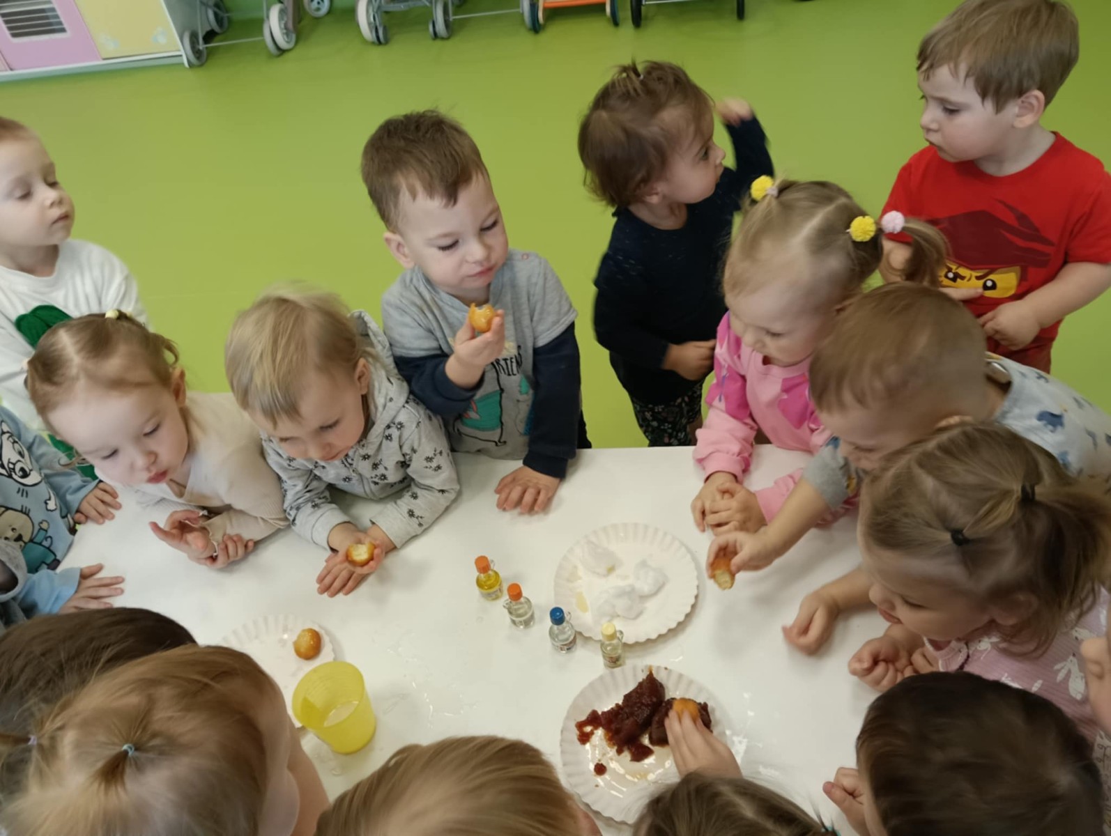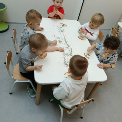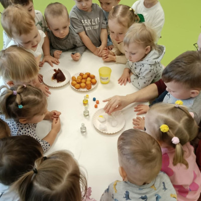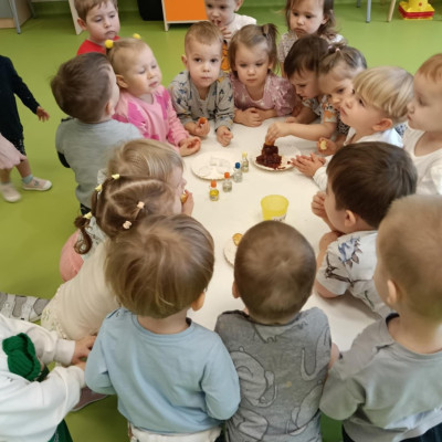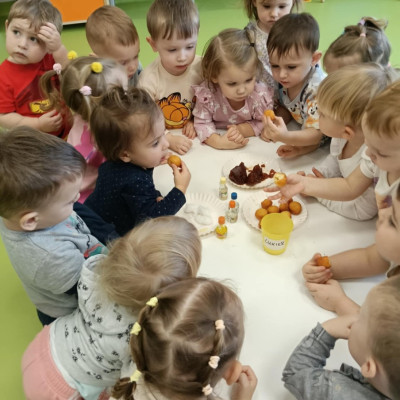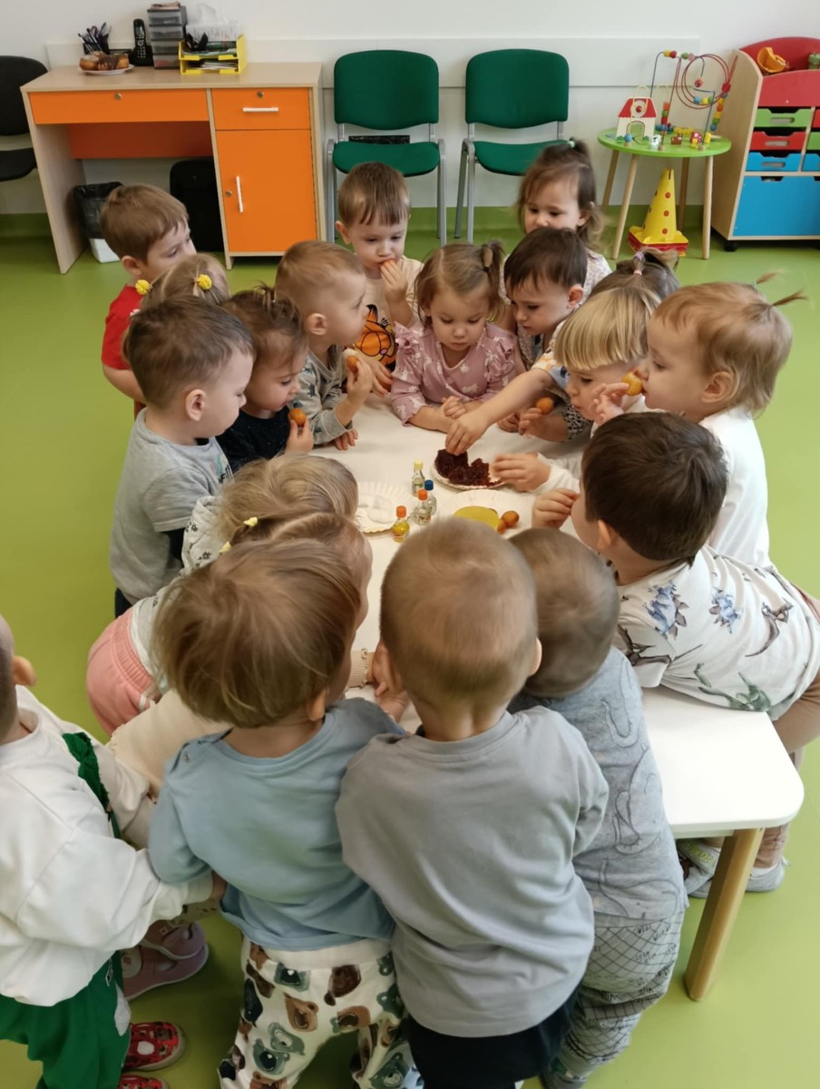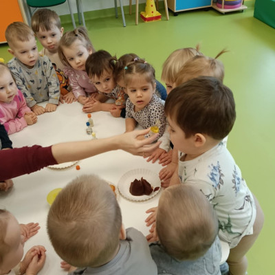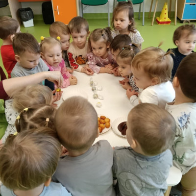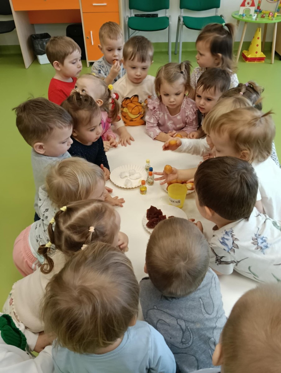 Z tej okazji Tygryski podczas zajęć sensorycznych miały okazję poznać z jakich składników składa się pączek, jak może pachnieć nadzienie w pączku oraz jak wygląda lukier. Musiały dopasować zapach do odpowiedniej buteleczki oraz mieli możliwość posmakować poszczególnych produktów. Były to zajęcia bardzo pachnące i smaczne