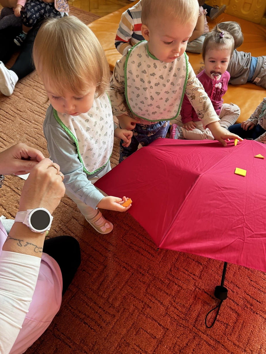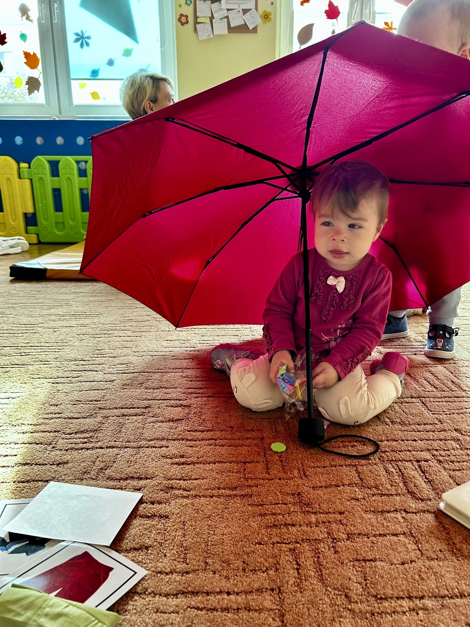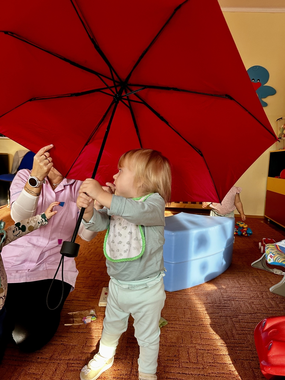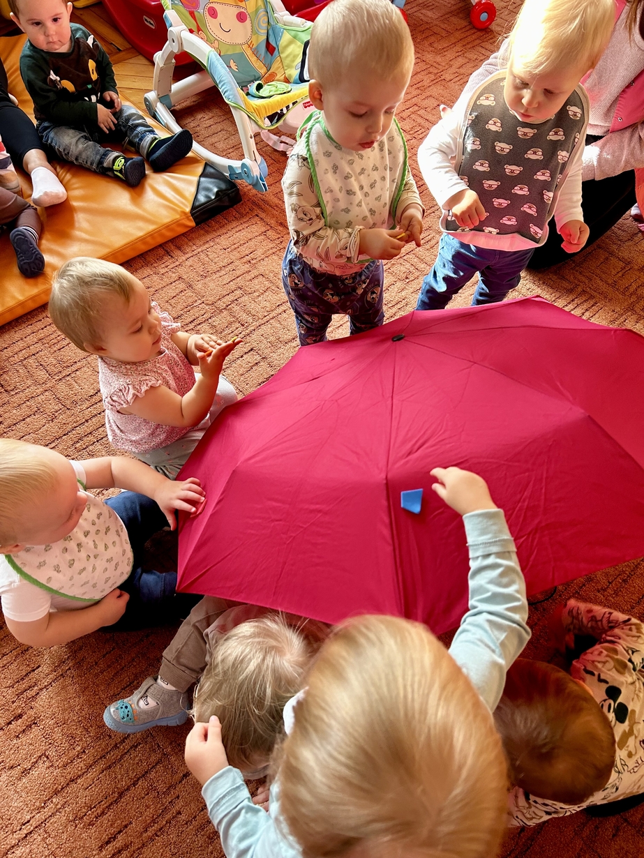 W naszym Żłobeczku odbyły się zajęcia , które zainspirowane były deszczową pogodą. Wszystkie działania skupiły się wokół parasola ?. Dzieciaczki ozdabiały parasol naklejkami co sprawiło im ogromną radość. Uczyły się również jak prawidłowo trzymać parasol. Mimo deszczowej pogody za oknem na grupie 1 było bardzo wesoło.