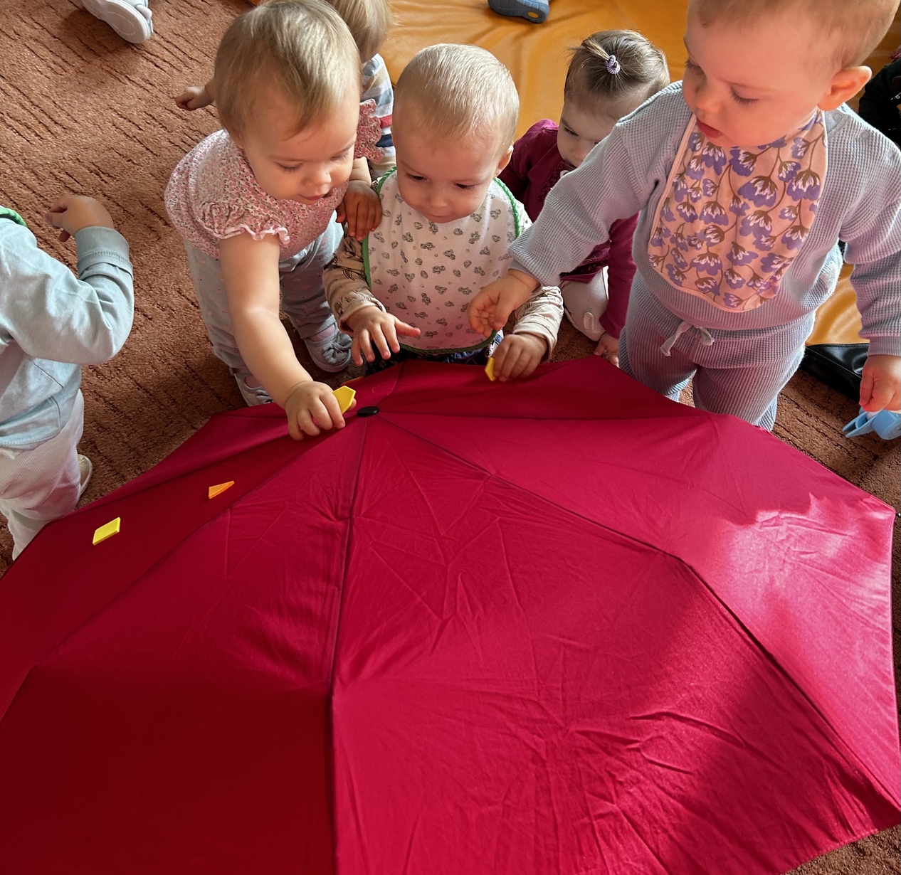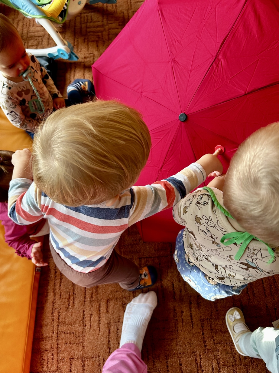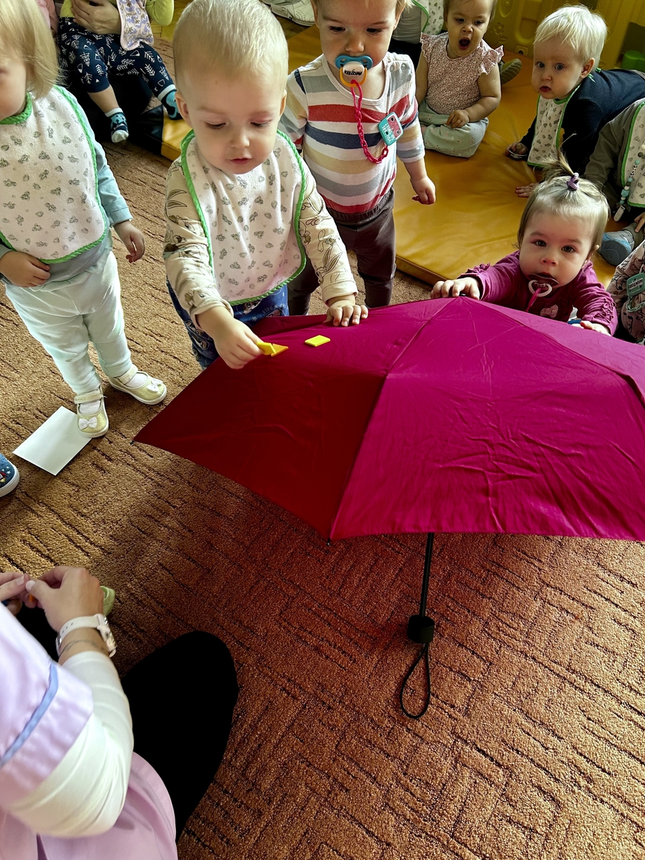 W naszym Żłobeczku odbyły się zajęcia , które zainspirowane były deszczową pogodą. Wszystkie działania skupiły się wokół parasola ?. Dzieciaczki ozdabiały parasol naklejkami co sprawiło im ogromną radość. Uczyły się również jak prawidłowo trzymać parasol. Mimo deszczowej pogody za oknem na grupie 1 było bardzo wesoło.