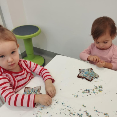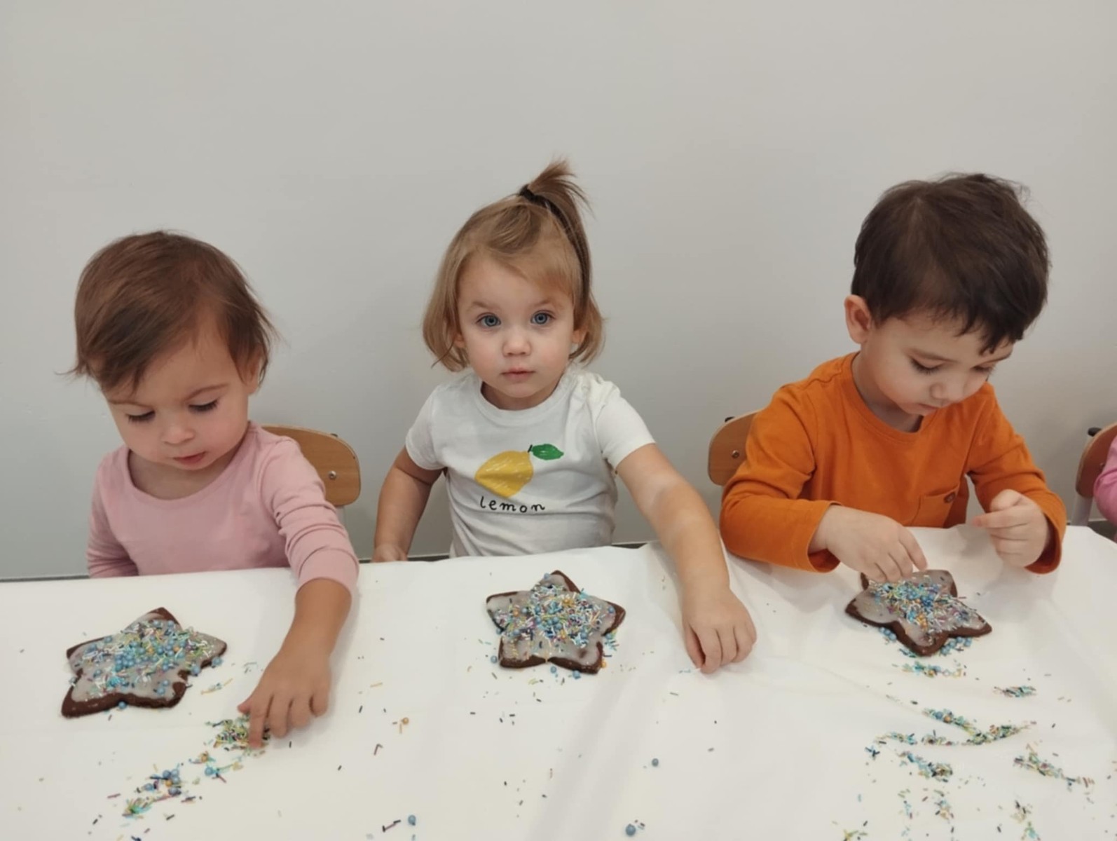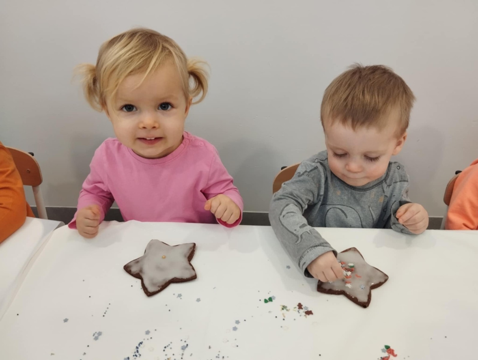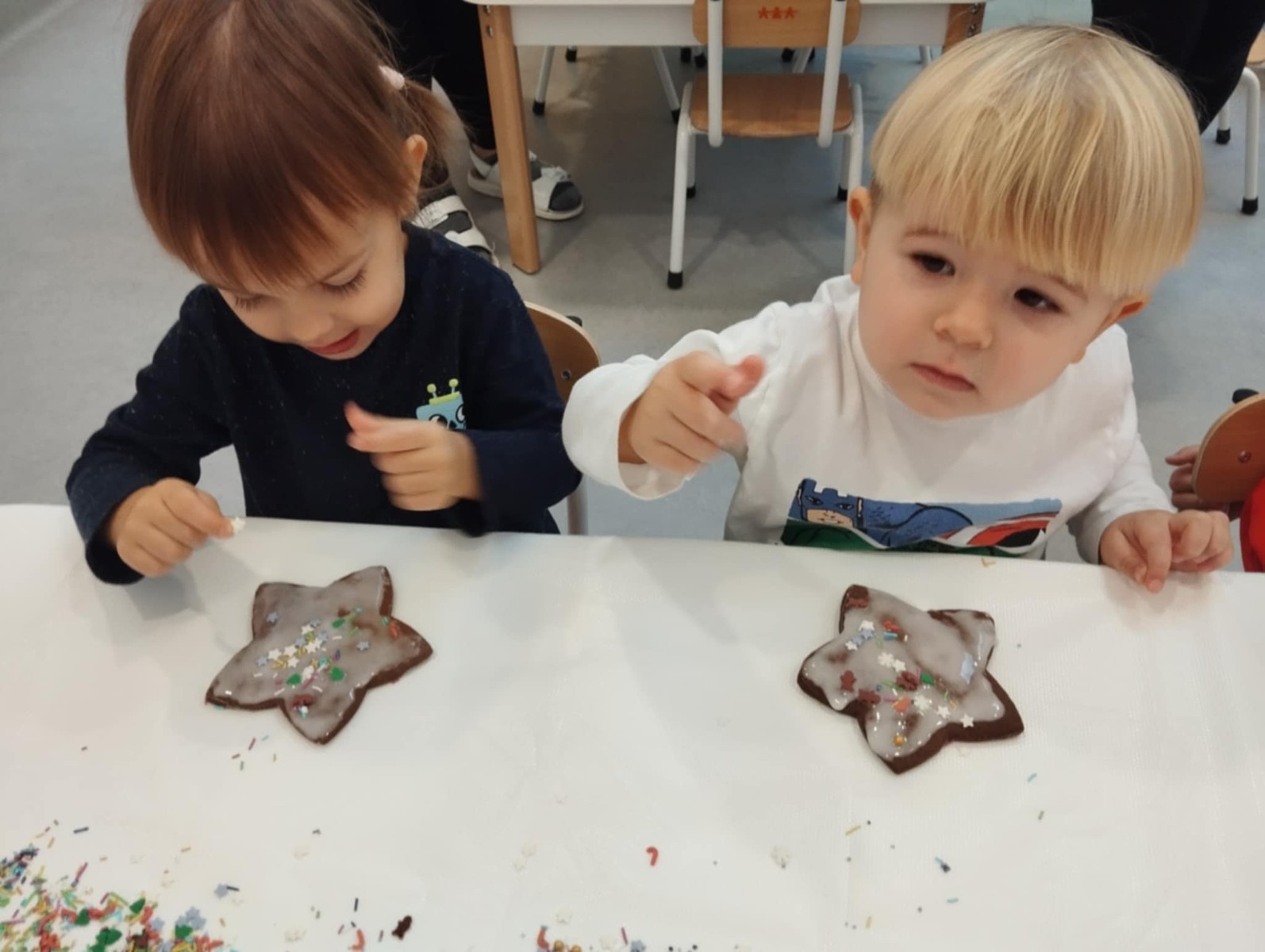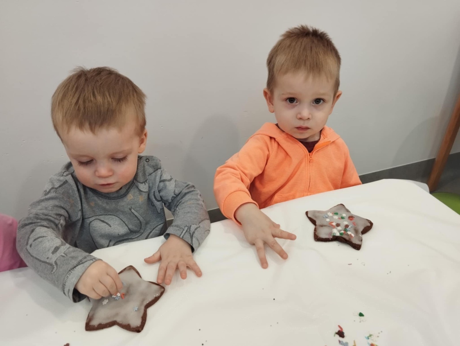 dlatego grupa Tygrysków przygotowuje się już! Dziś nasi mali artyści samodzielnie dekorowali pierniczki , wykorzystując różnokolorowe i o różnych smakach posypki. Wymagało to od nich ogromnej koncentracji, jednak sprawiło im to wiele radości.