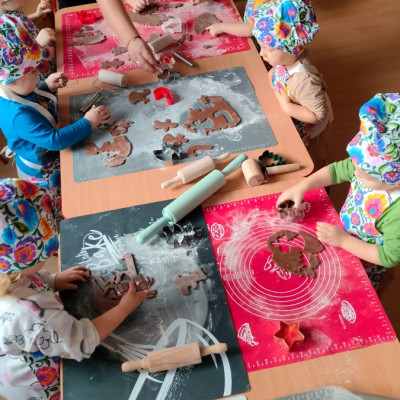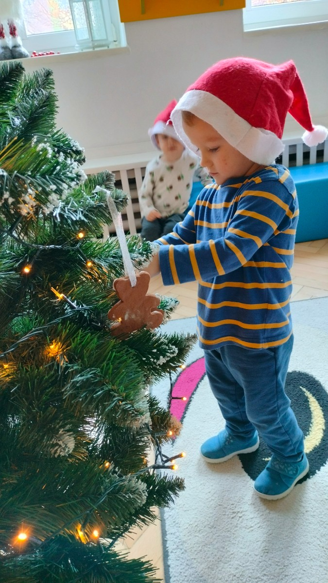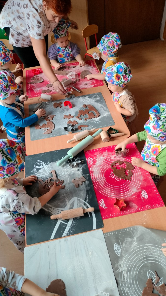 Przygotowania do wizyty najbardziej wyczekiwanego gościa 🎅 grupa zaczęła od przygotowania pierniczków, które wspólnie powiesiliśmy na naszej choince🌲🌲🌲. Zapach korzennych przypraw unosił się w całej sali, a dzieci miały mnóstwo zabawy tworząc piernikowe ozdoby .