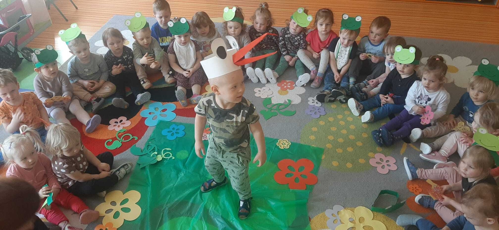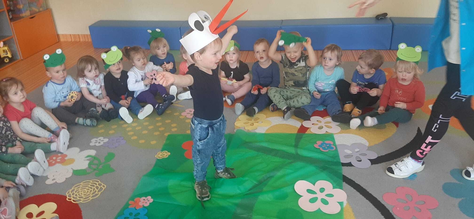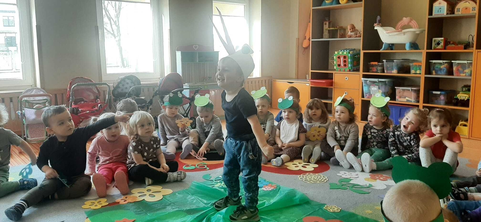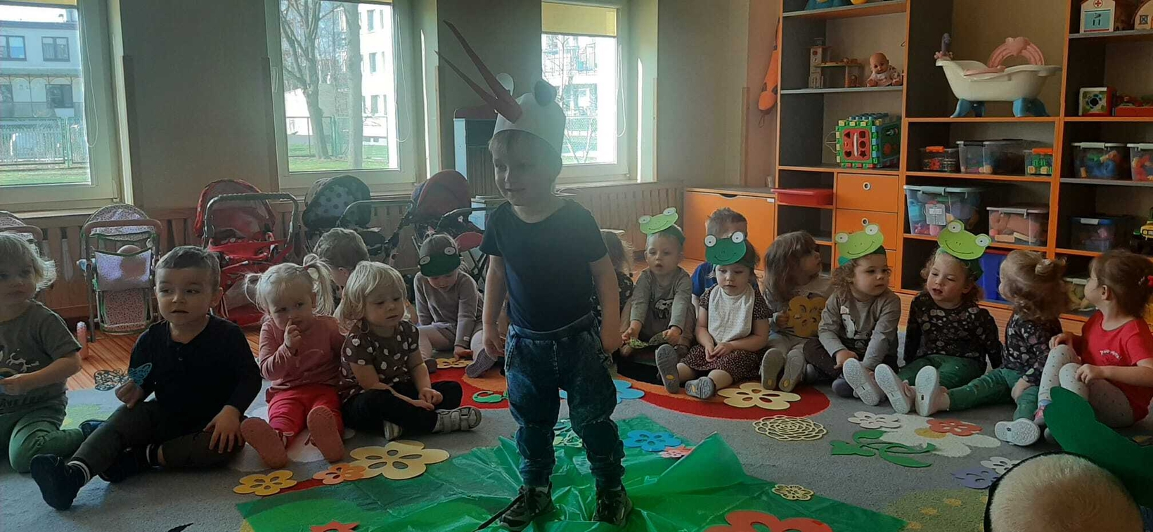 W dniu 21.03. w żłobku u Muchomorków zrobiło się zielono. Tego dnia każde dziecko miało element wiosennego stroju, były: żabki, kwiatuszki,motylki i bocian. Wspólnie z opiekunkami dzieci zaśpiewały piosenki o wiosnie " Kle,kle bocku ", Miła wiosno".