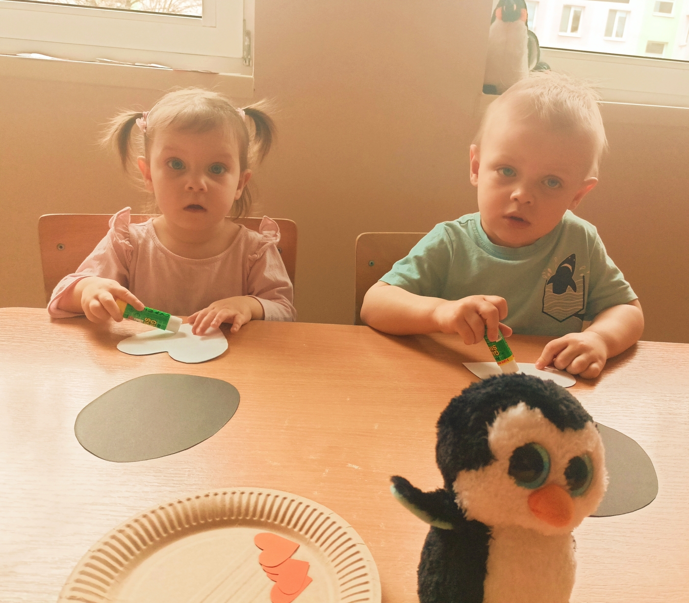 Dzieci z grupy Pszczółki wykonały prace plastyczne -Pingwinek.