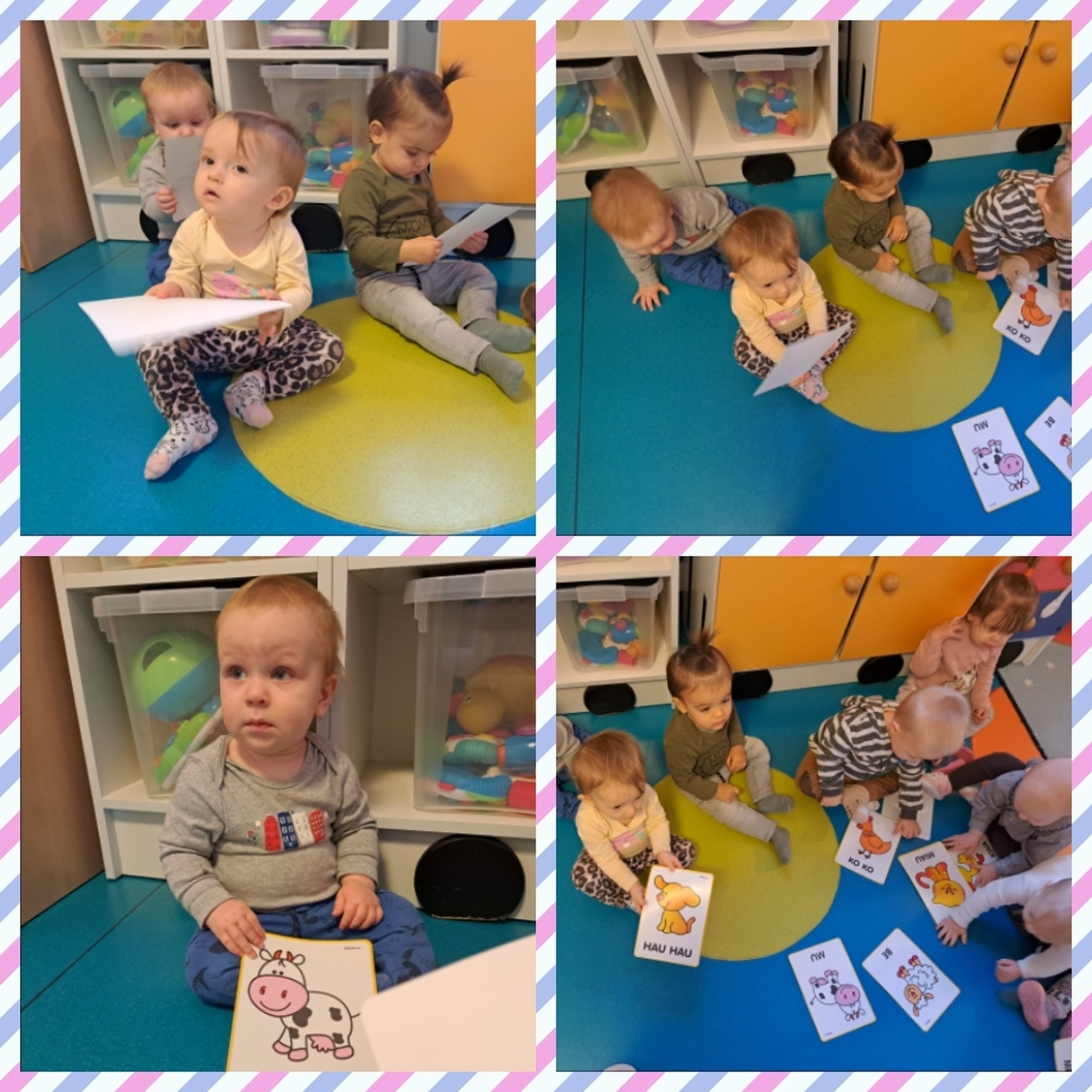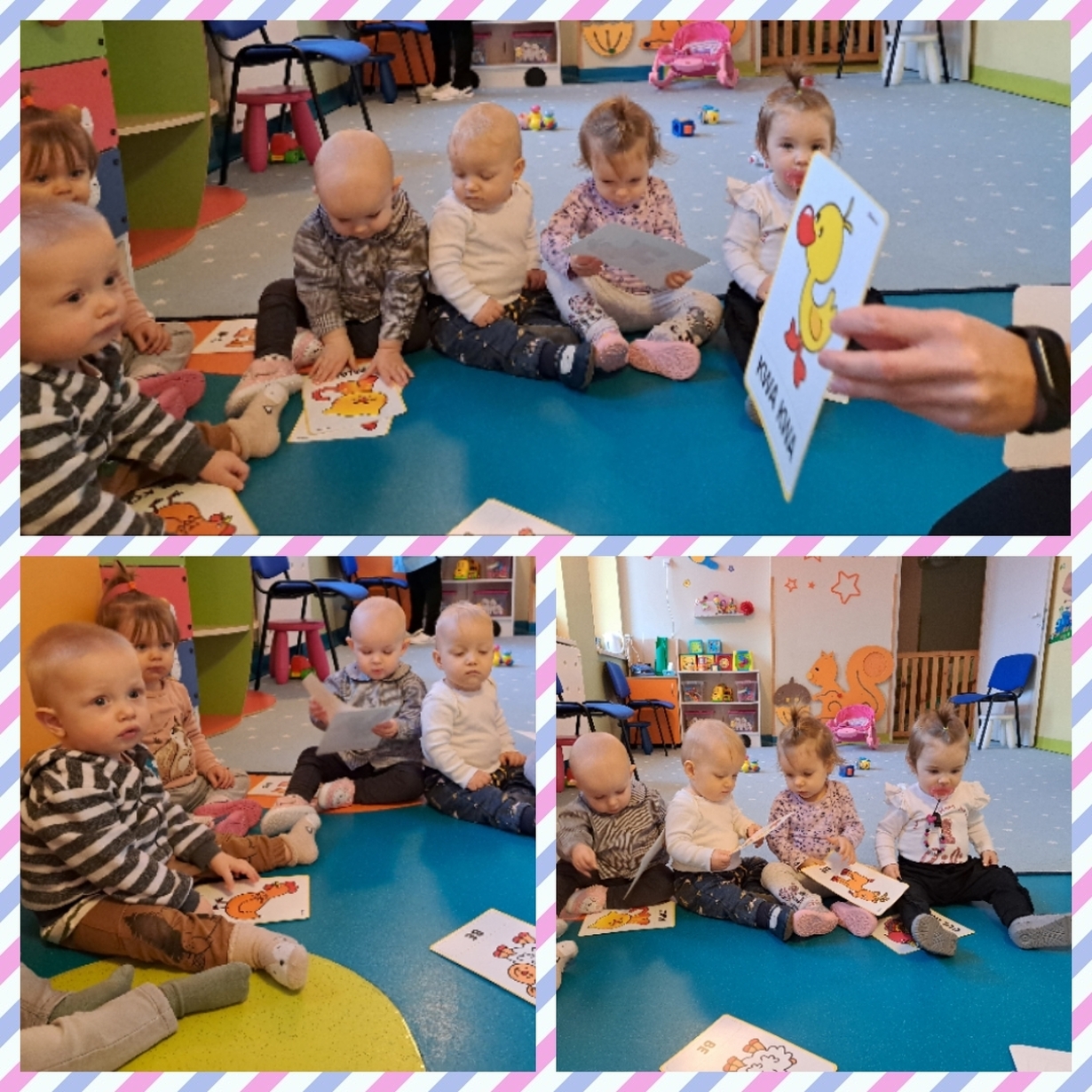 Dzieci na wspólnych zajęciach miały okazję oglądać ilustracje przedstawiające podstawowe zwierzęta tj.: pies, kot, kaczka, krowa, itd. oraz wysłuchać piosenek, pt. " W chlewiku", "Lata ptaszek", " Kaczor Donald farmę miał", "Kotek puszek" i wiele innych.