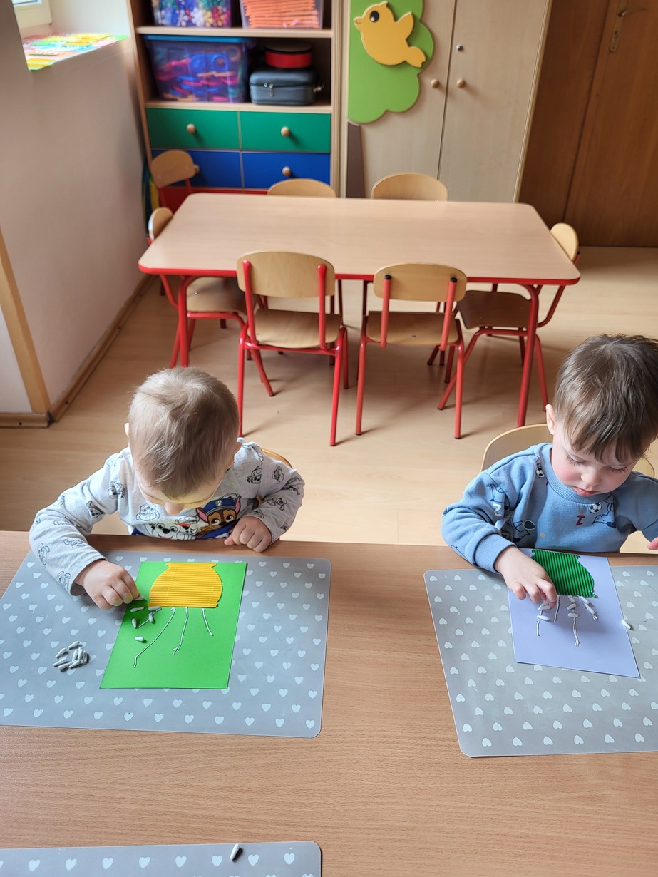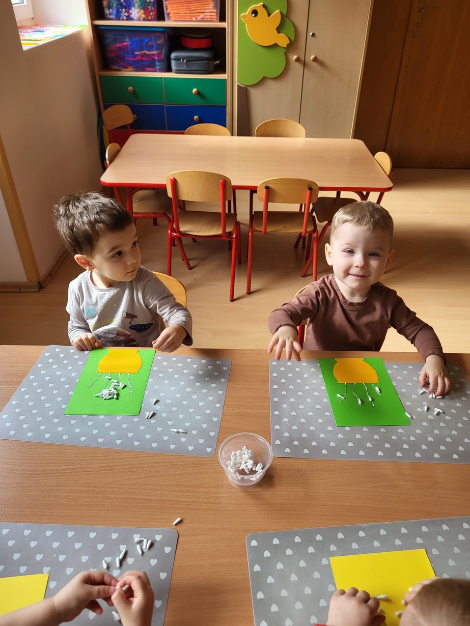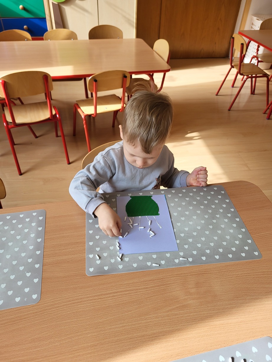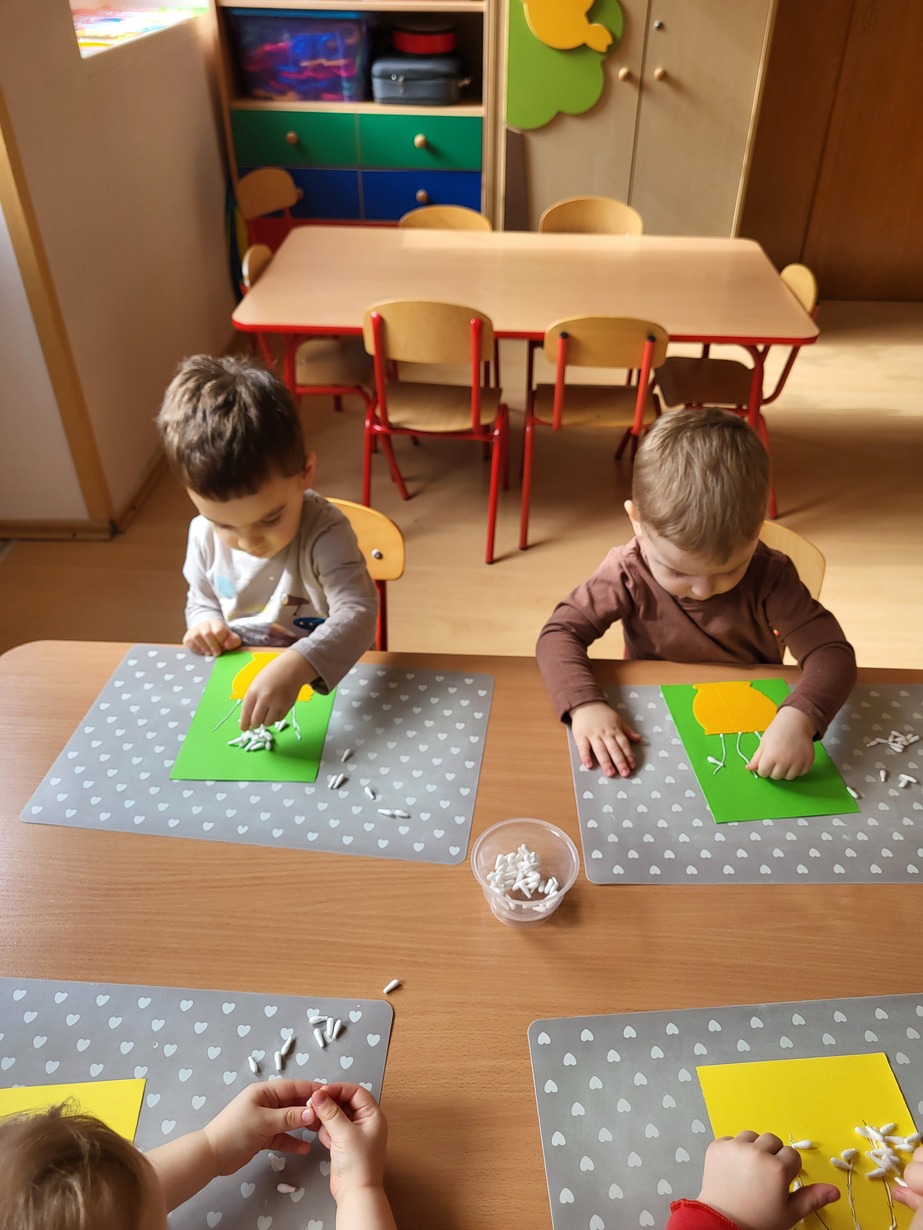 Misie zrobiły piękną pracę plastyczną związaną z pierwszymi oznakami wiosny. Przy okazji poćwiczyły sprawność swoich paluszków.