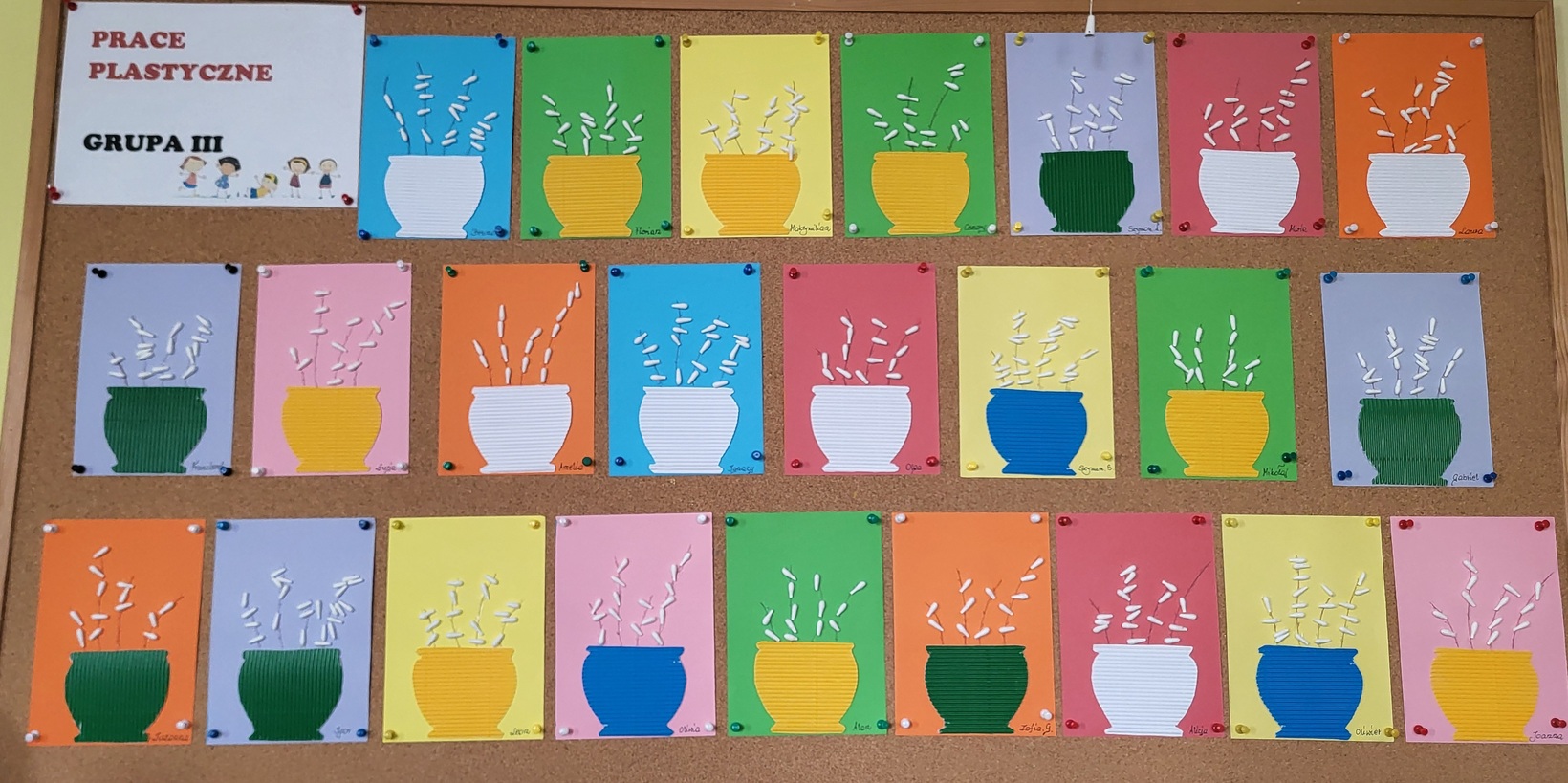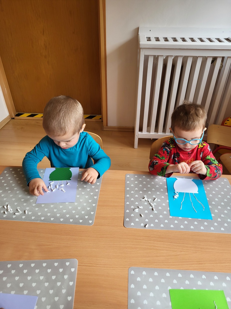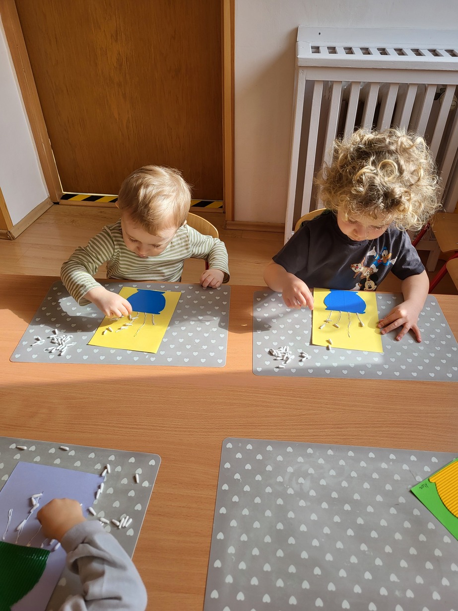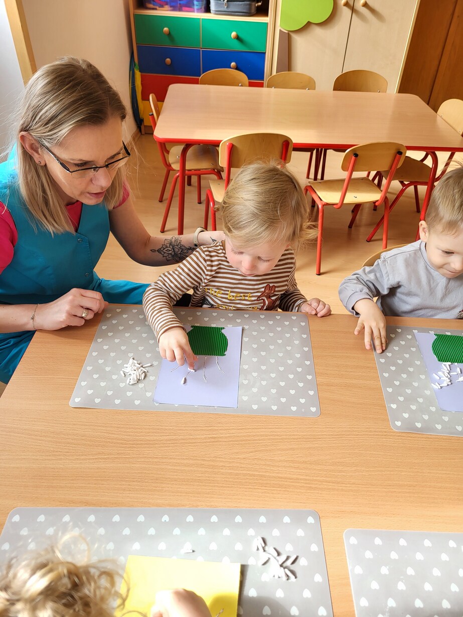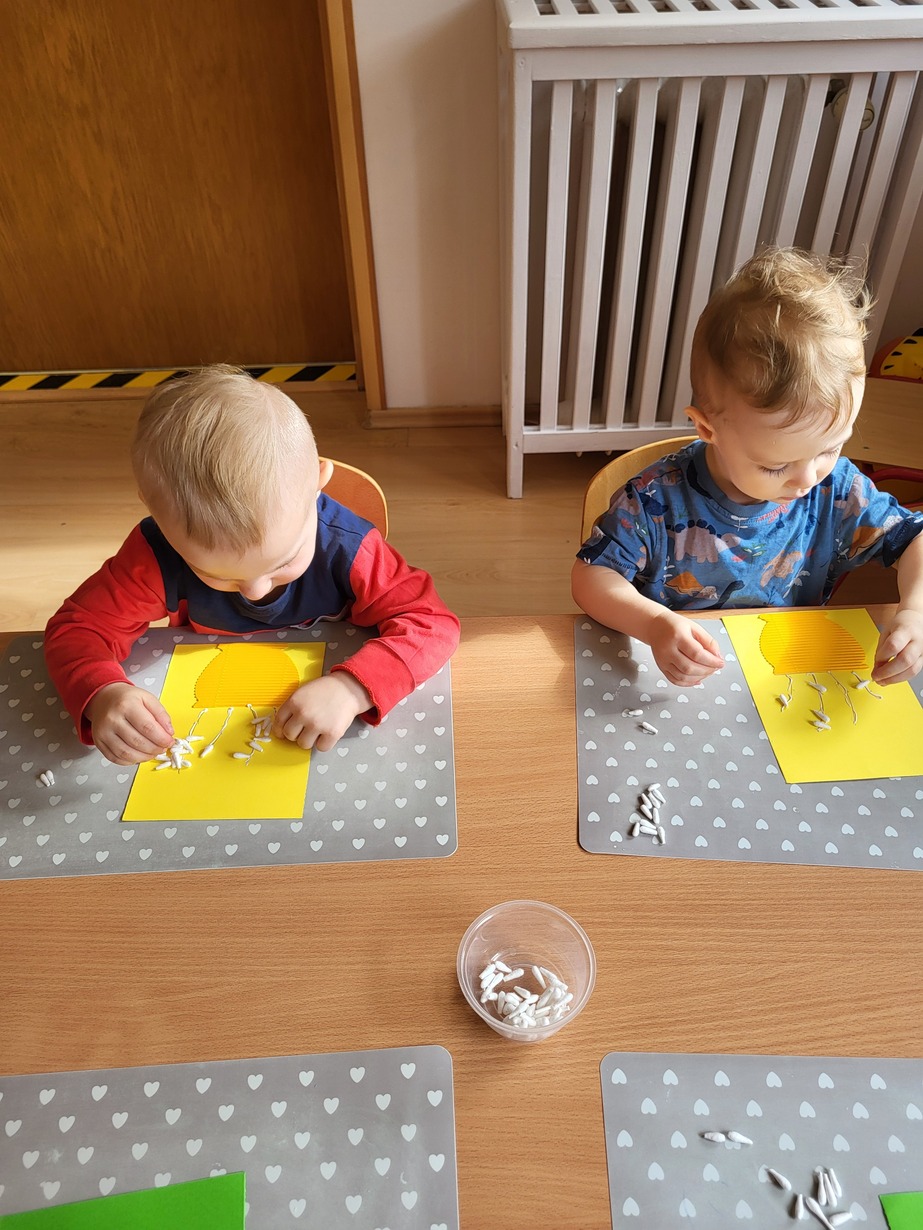 Misie zrobiły piękną pracę plastyczną związaną z pierwszymi oznakami wiosny. Przy okazji poćwiczyły sprawność swoich paluszków.