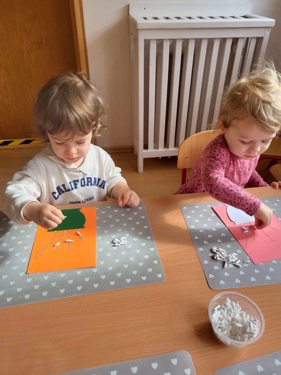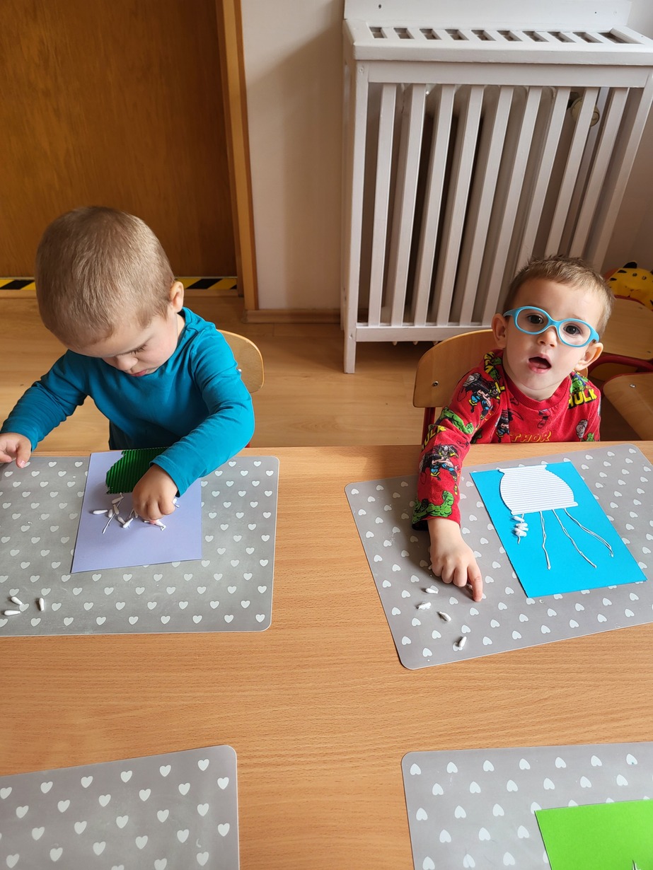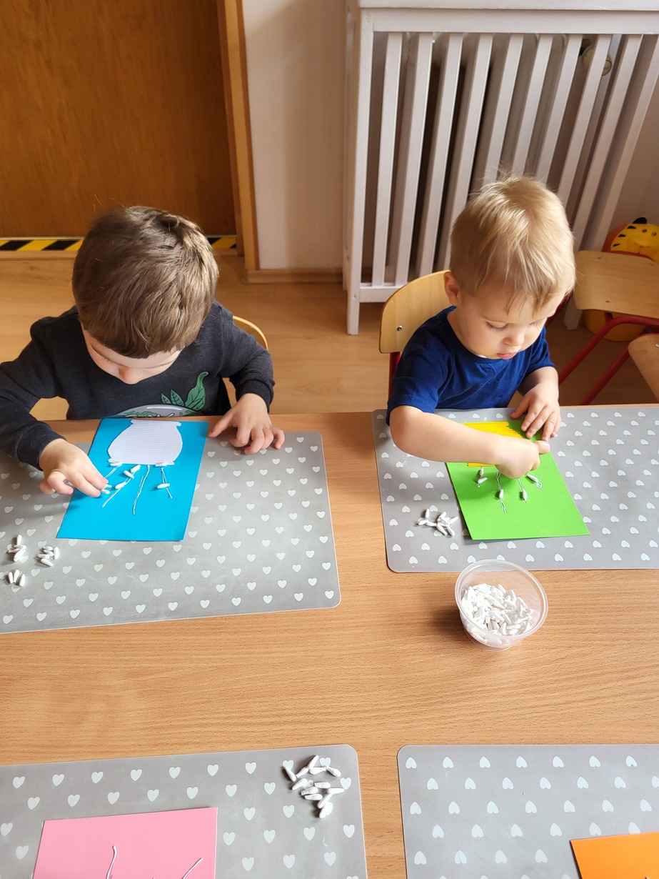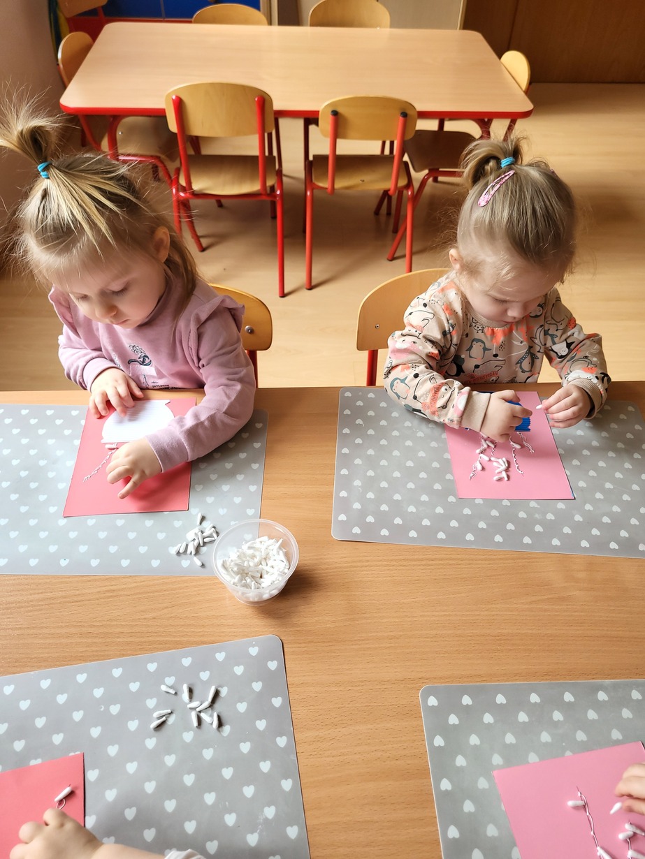 Misie zrobiły piękną pracę plastyczną związaną z pierwszymi oznakami wiosny. Przy okazji poćwiczyły sprawność swoich paluszków.