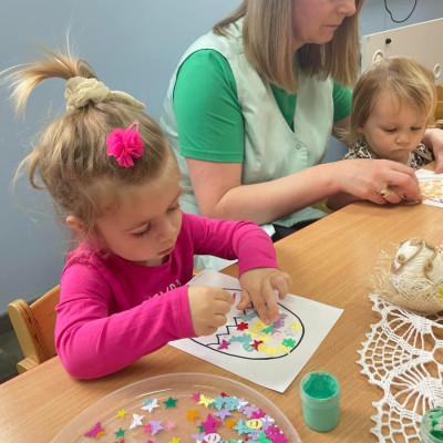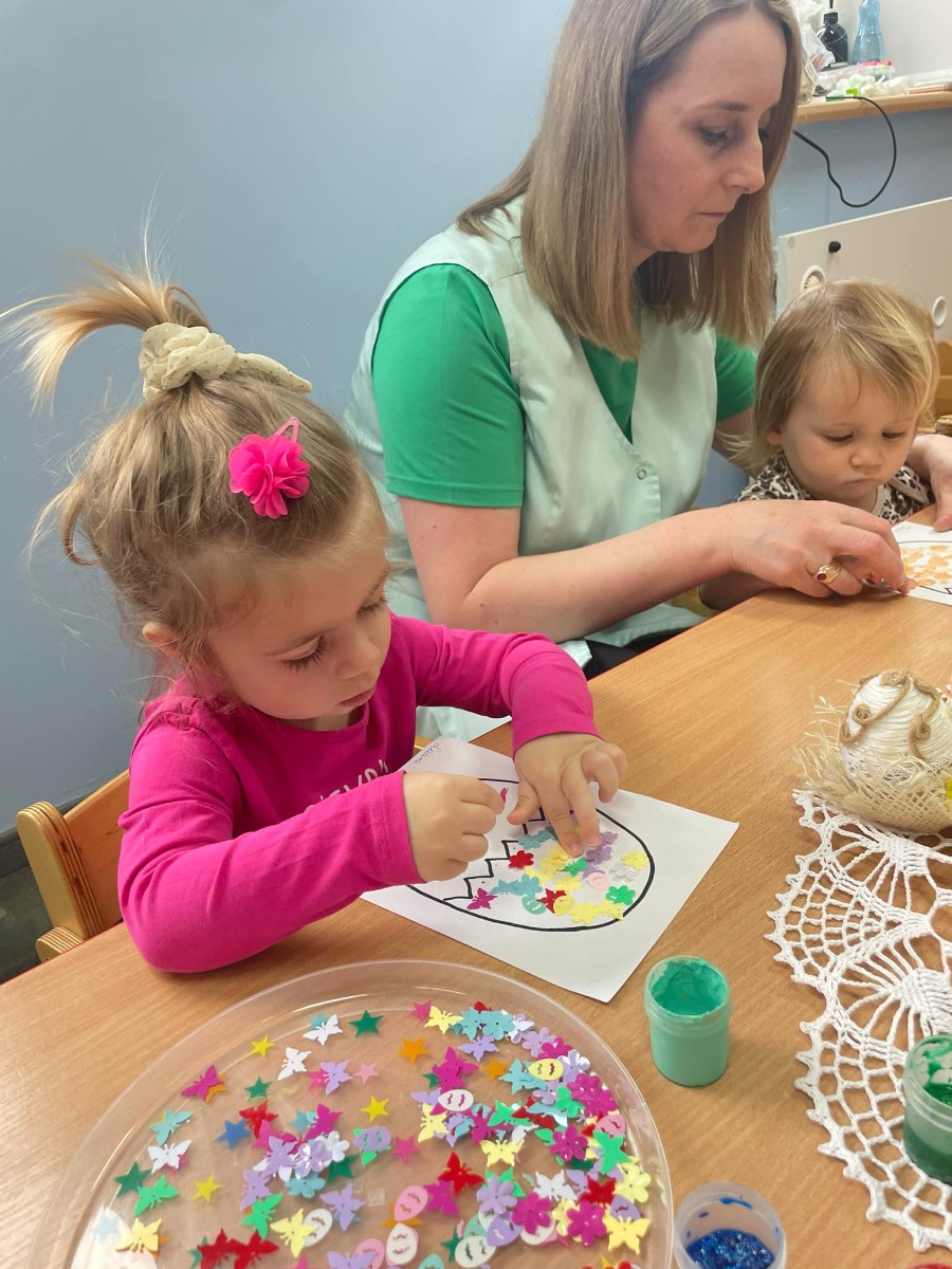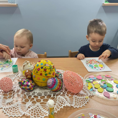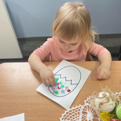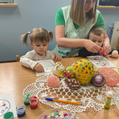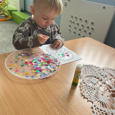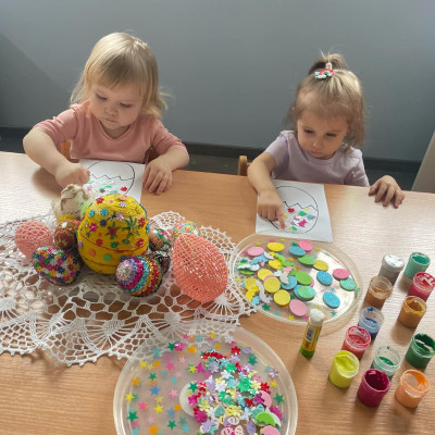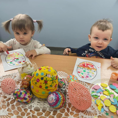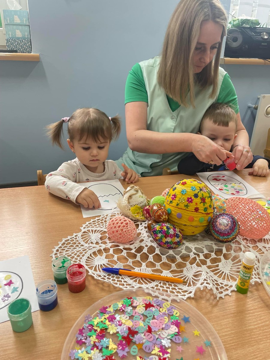 Zdjęcie przedstawia dzieci wykonujące pracę plastyczną