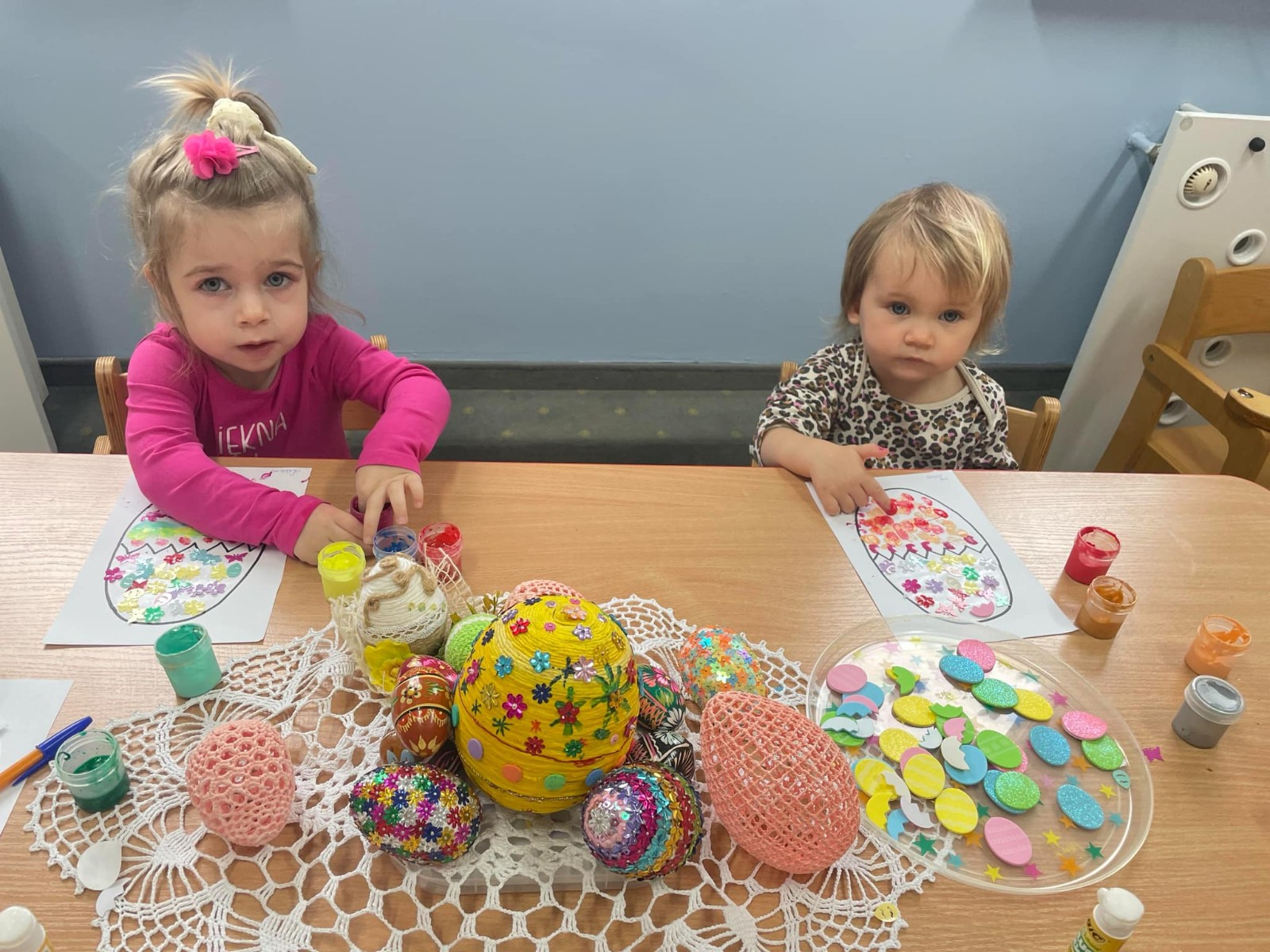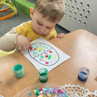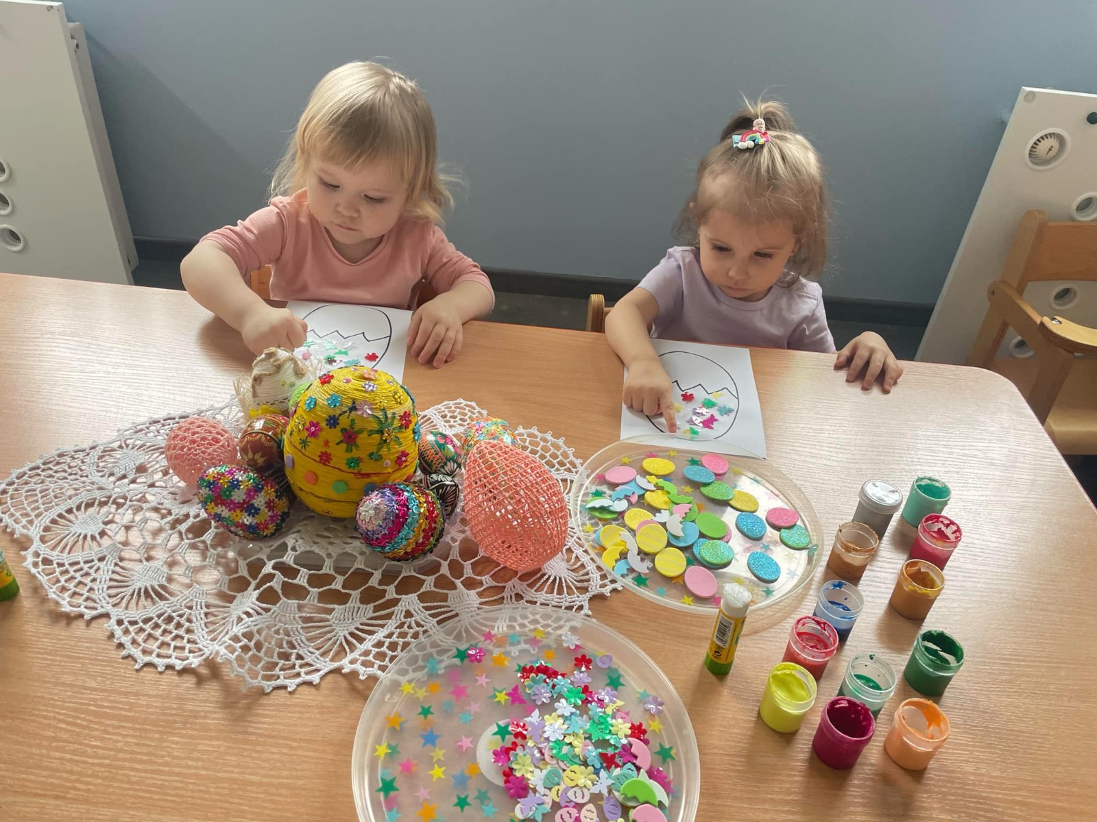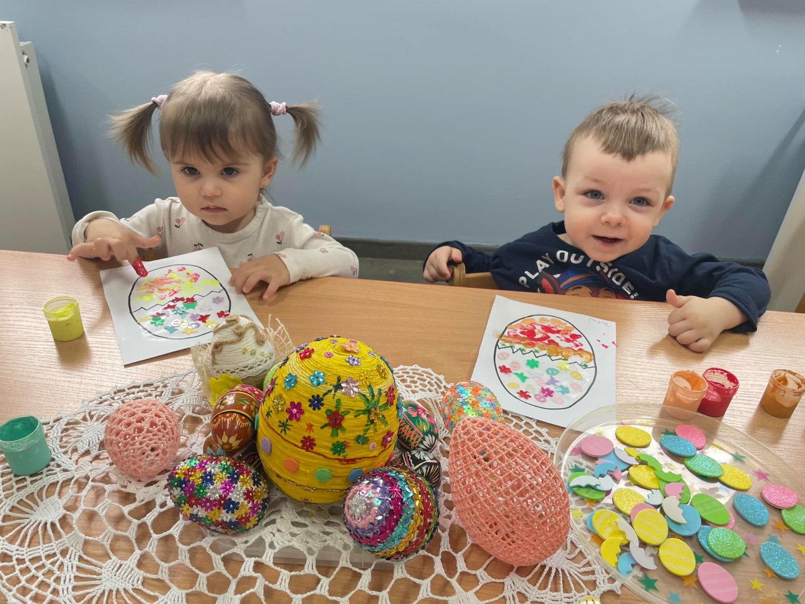 Zdjęcie przedstawia dzieci wykonujące pracę plastyczną