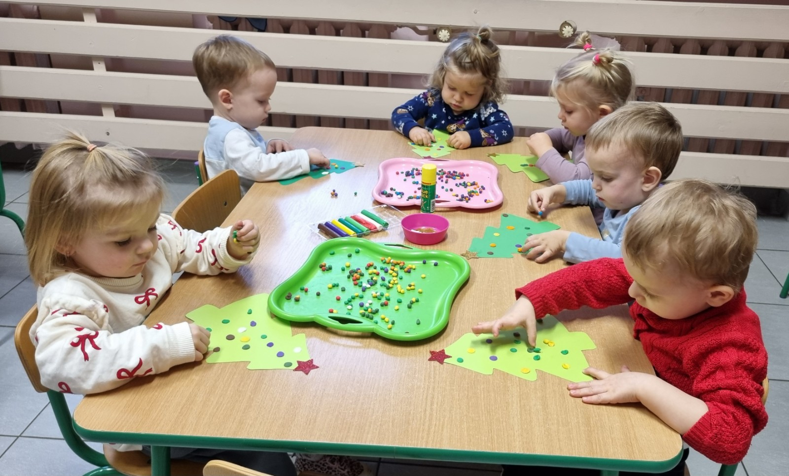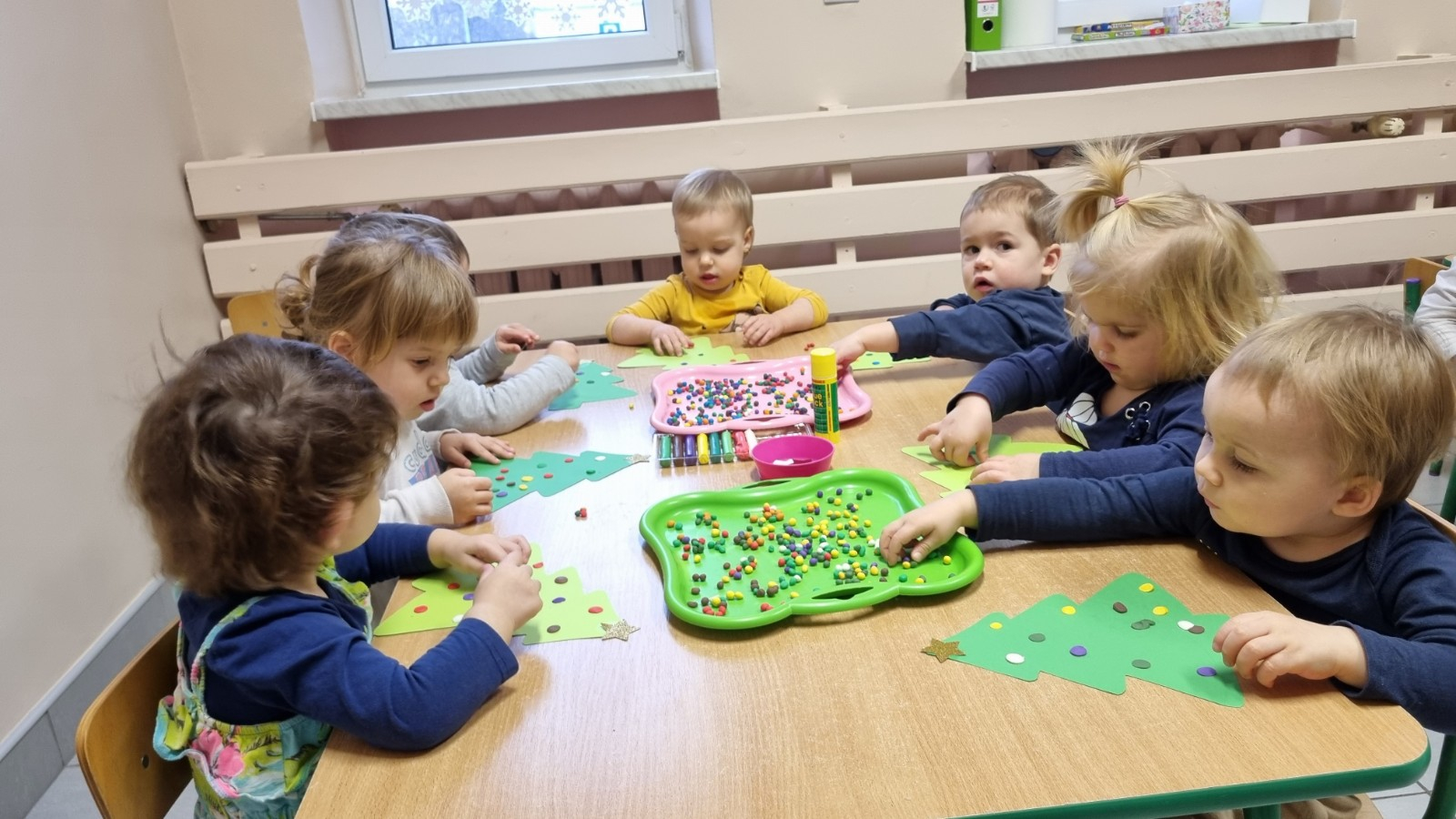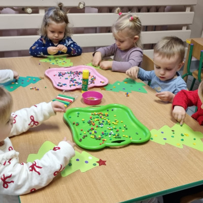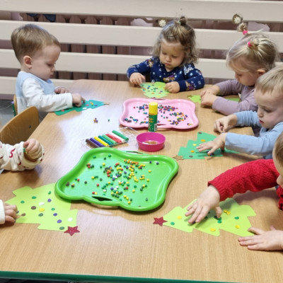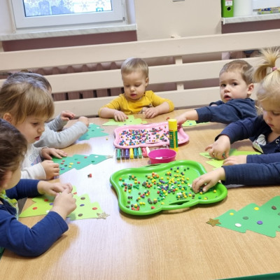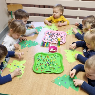 Zdjecia przedstawiają dzieci wykonujące prace plastyczne.