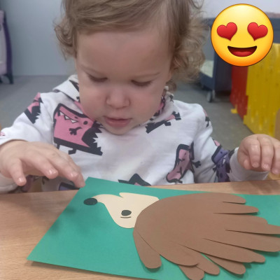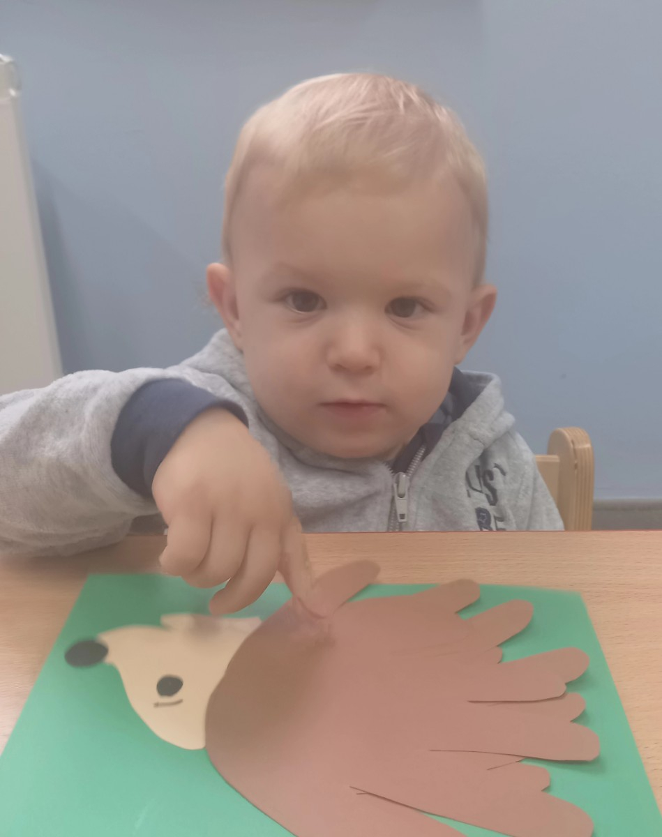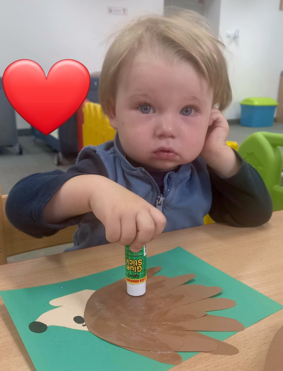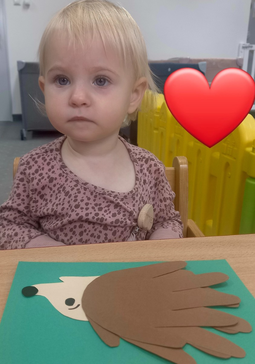 W ubiegłym tygodniu małe "Biedroneczki" wykonały swoje pierwsze prace plastyczne. Z radością naklejały na kartkach poszczególne elementy jeża 🦔 symbolizującego jesień.🍂🍁🍃