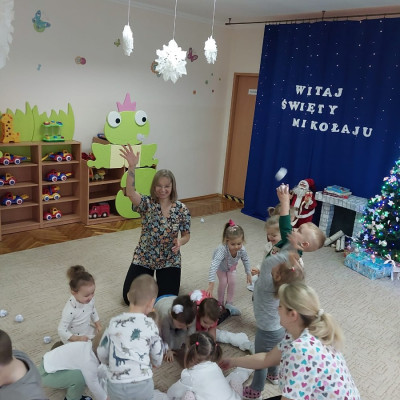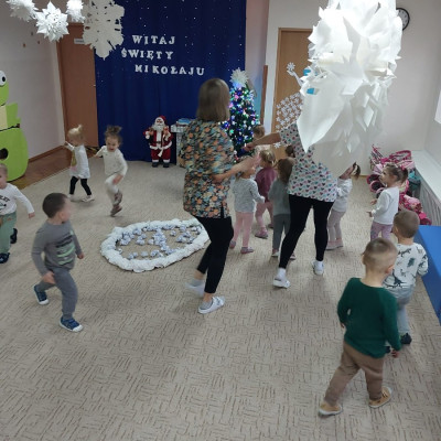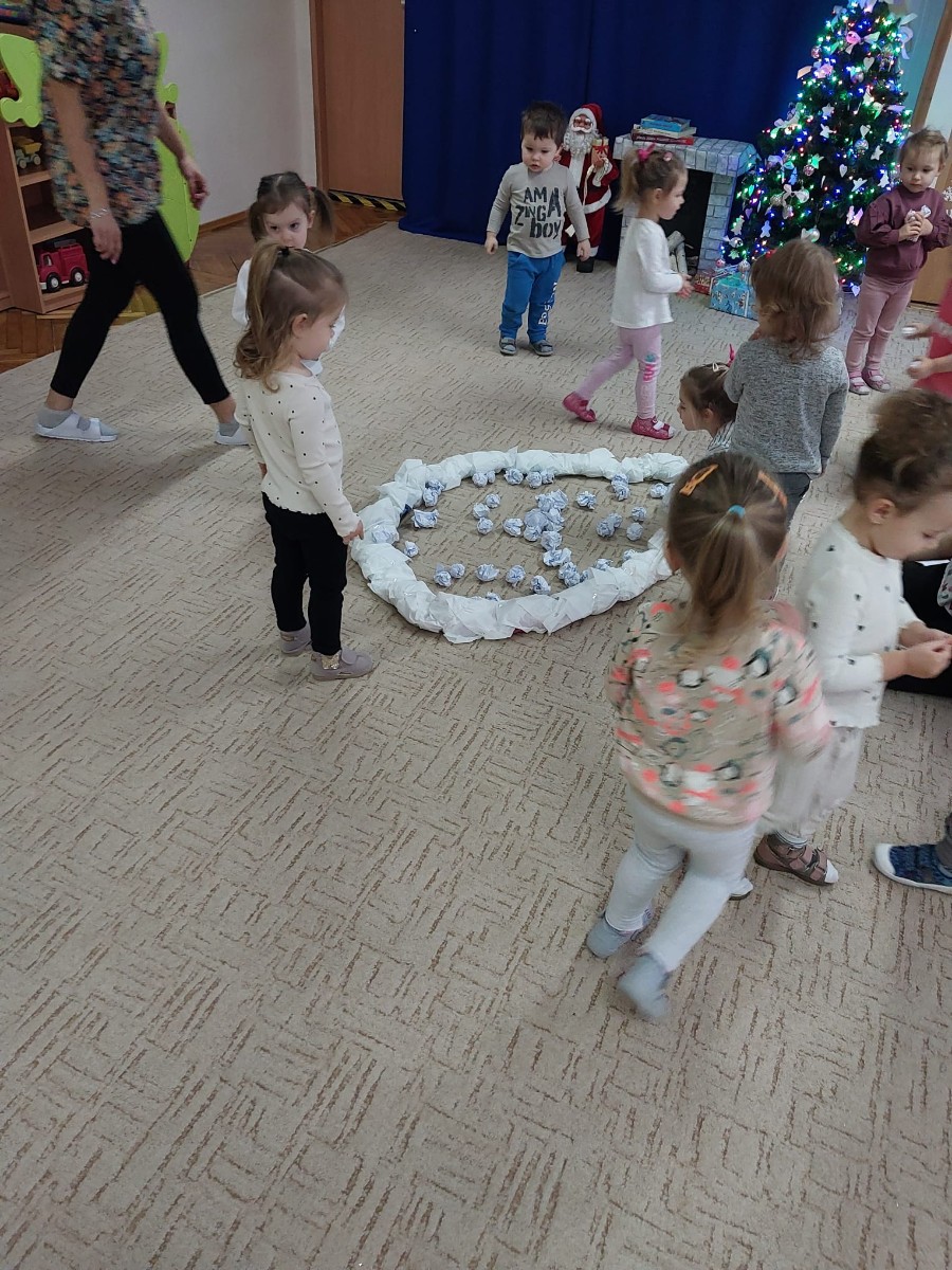 -zabawy kulkami śnieżnymi zrobionymi z papieru.