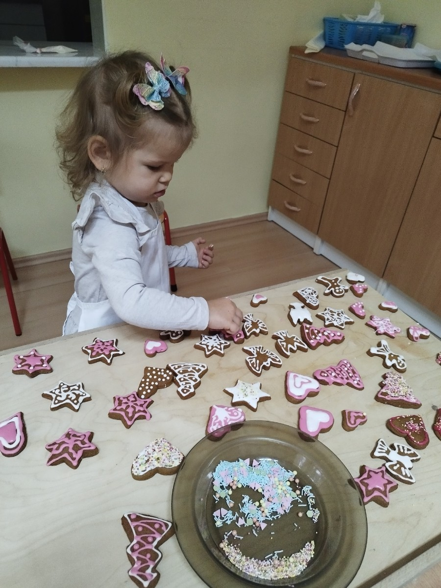 Zdjęcie przedstawia dzieci dekorujące pierniki