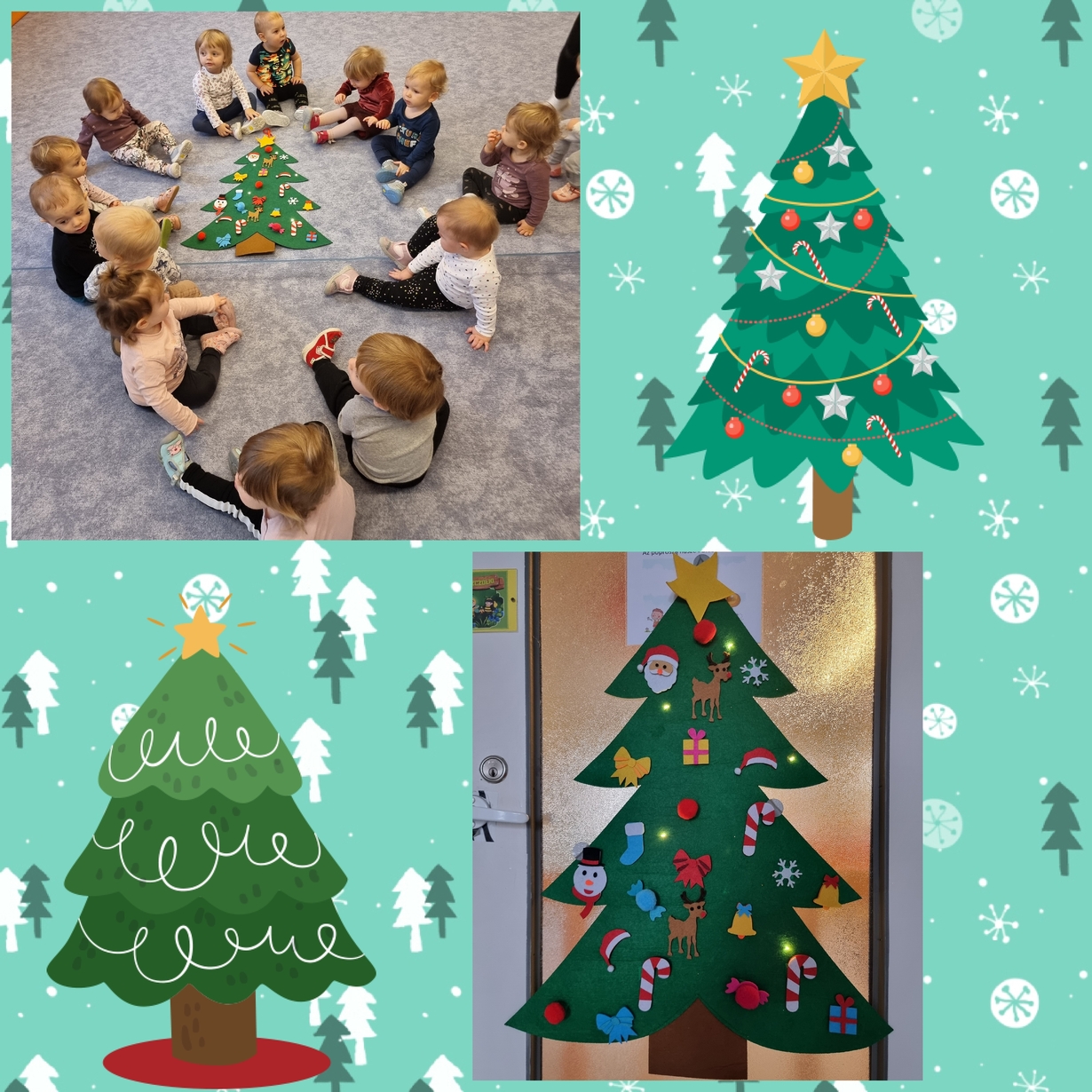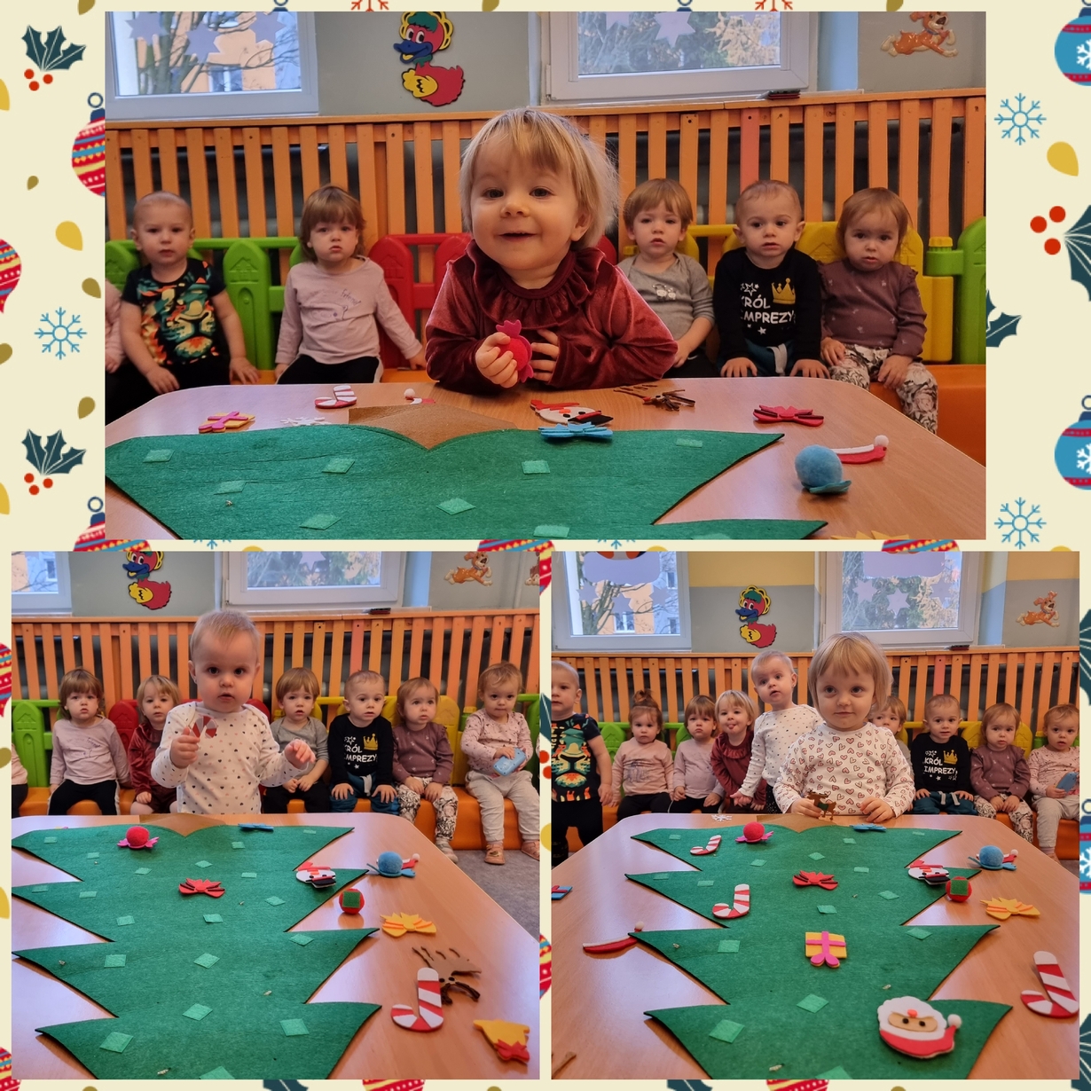 Dziś Pszczółki z wielkim zapałem przystąpiły do dekorowania dużej filcowej choinki.