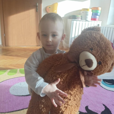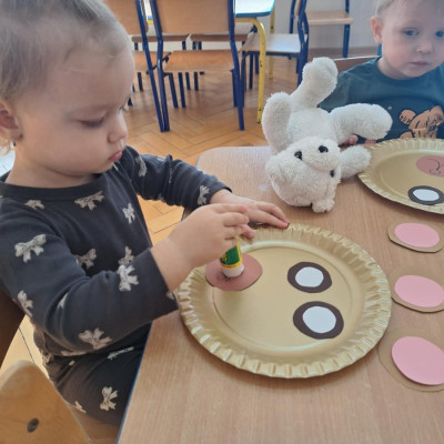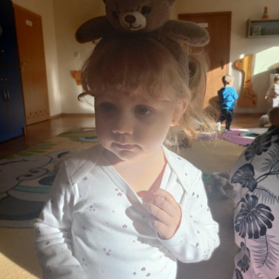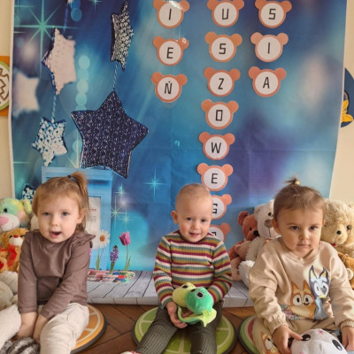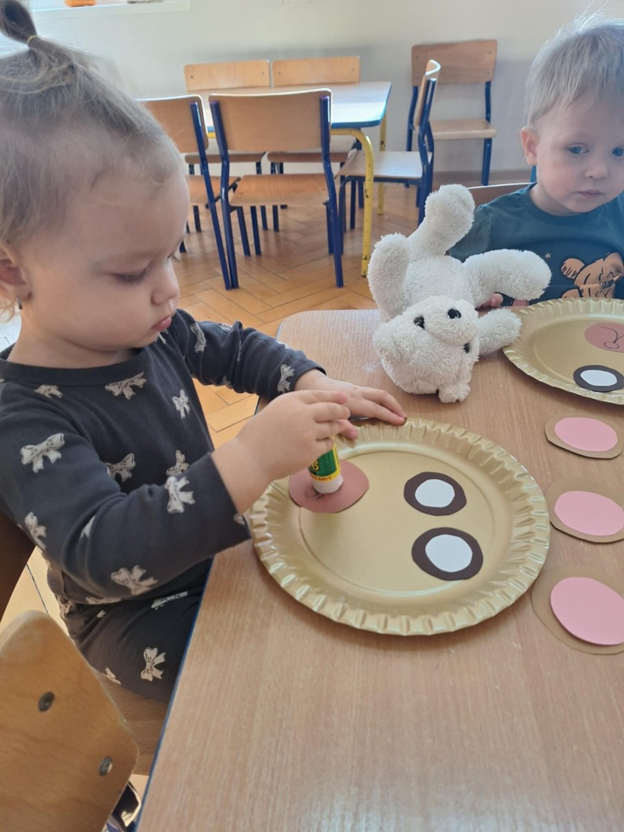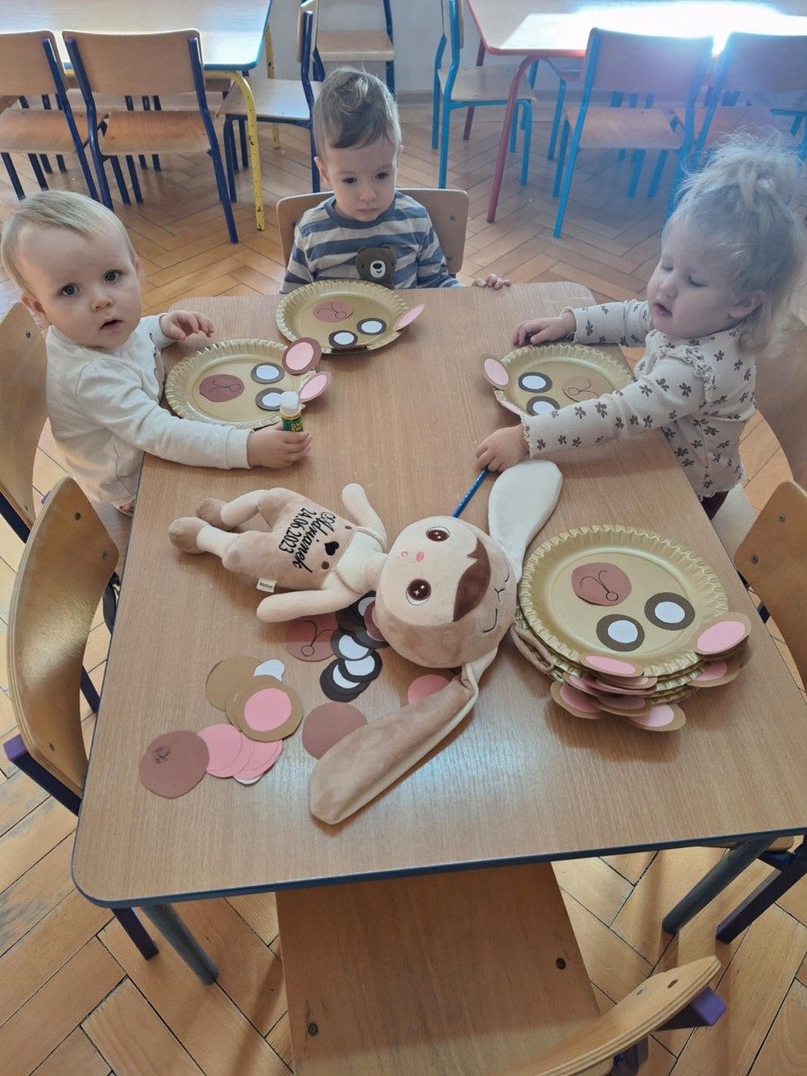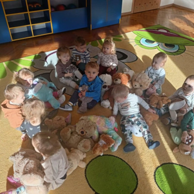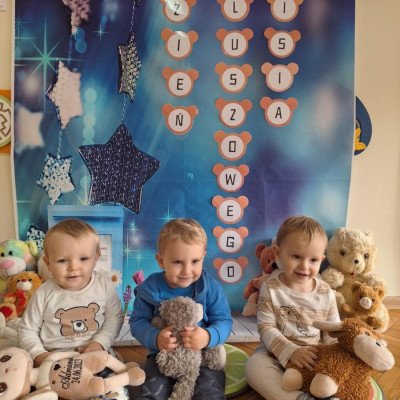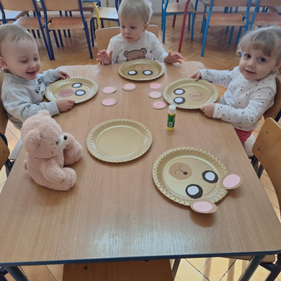 Zdjęcie przedstawia dzieci podczas zajęć w żłobku z okazji dnia misia