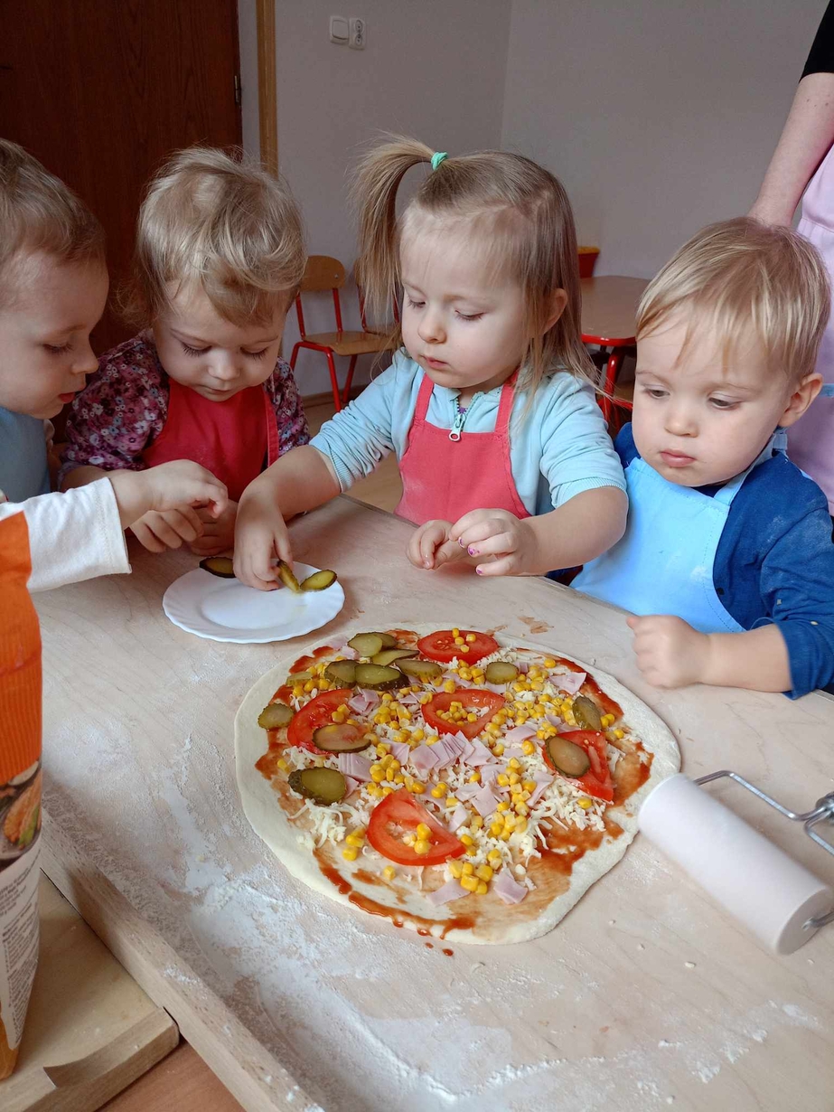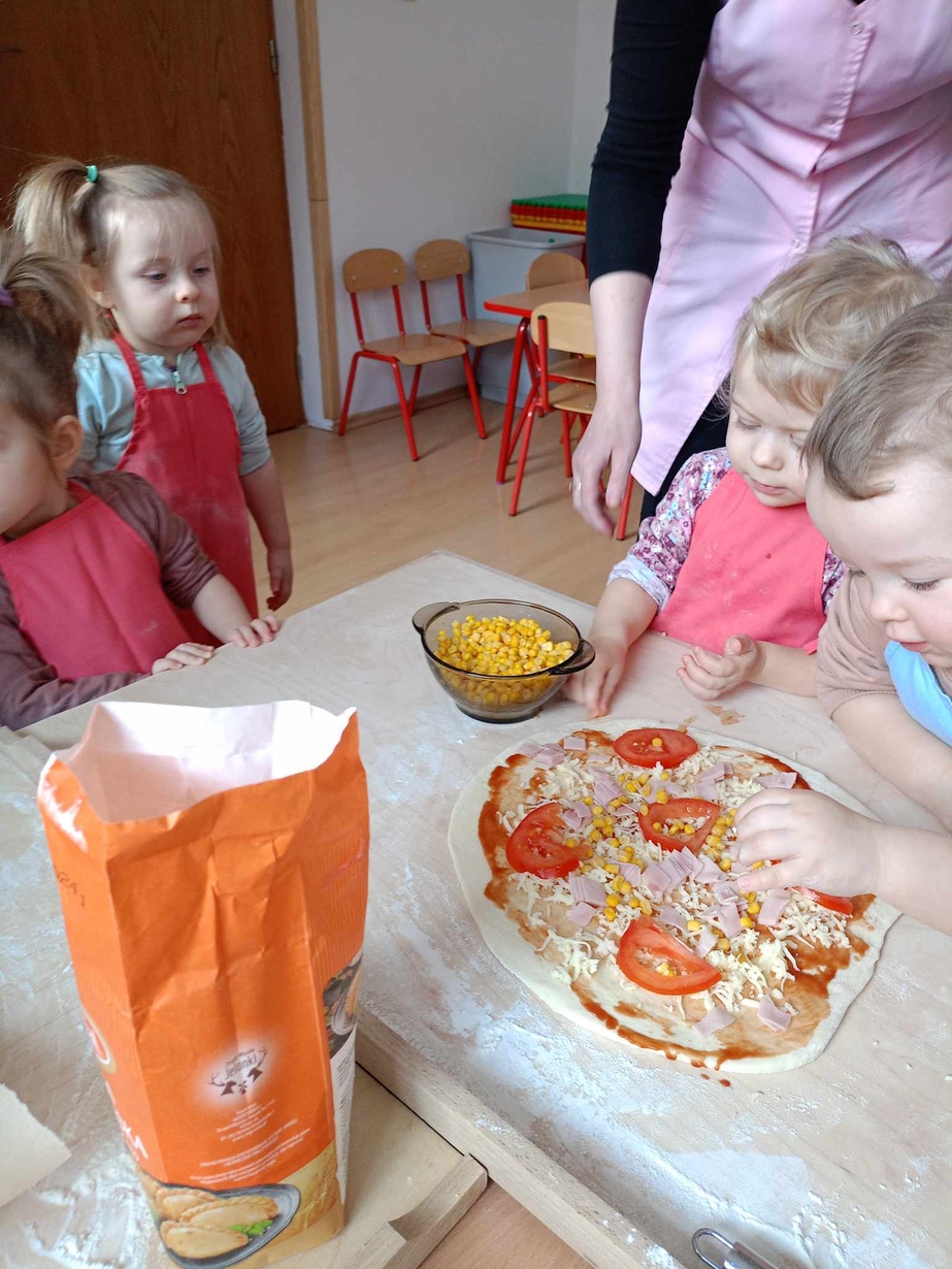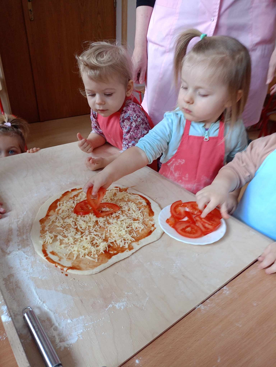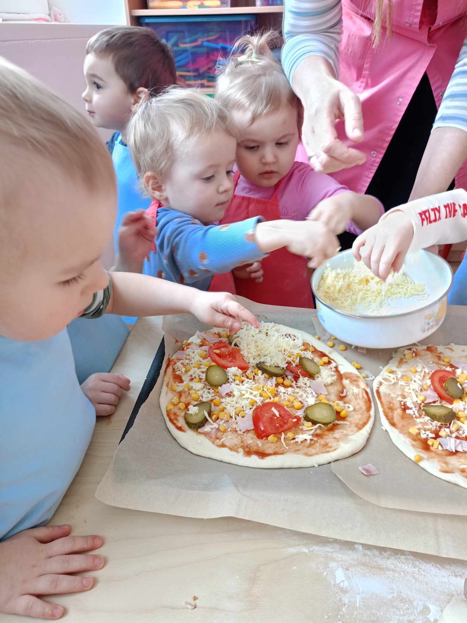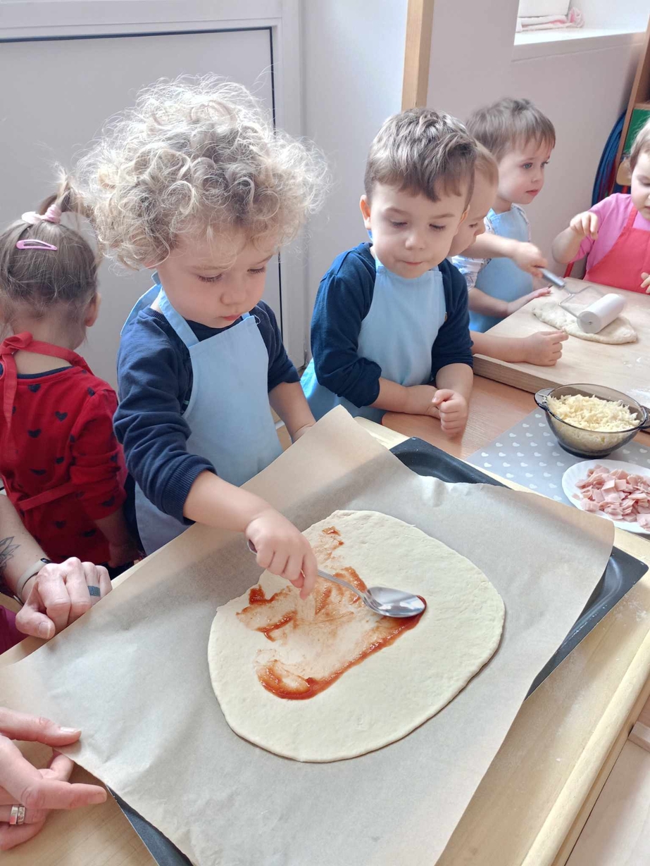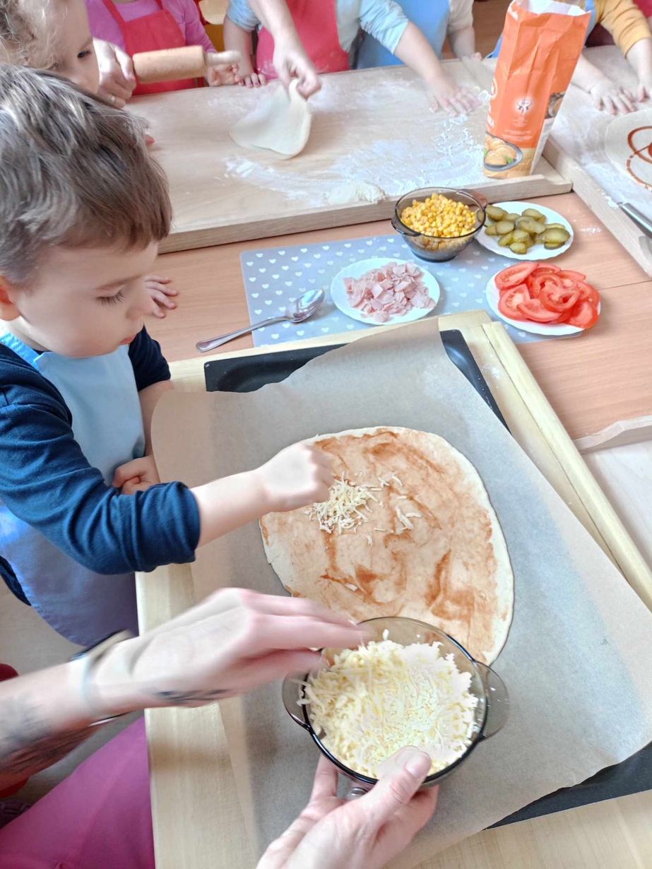 Wielką frajdę sprawiło im formowanie ciasta, smarowanie sosem pomidorowym,