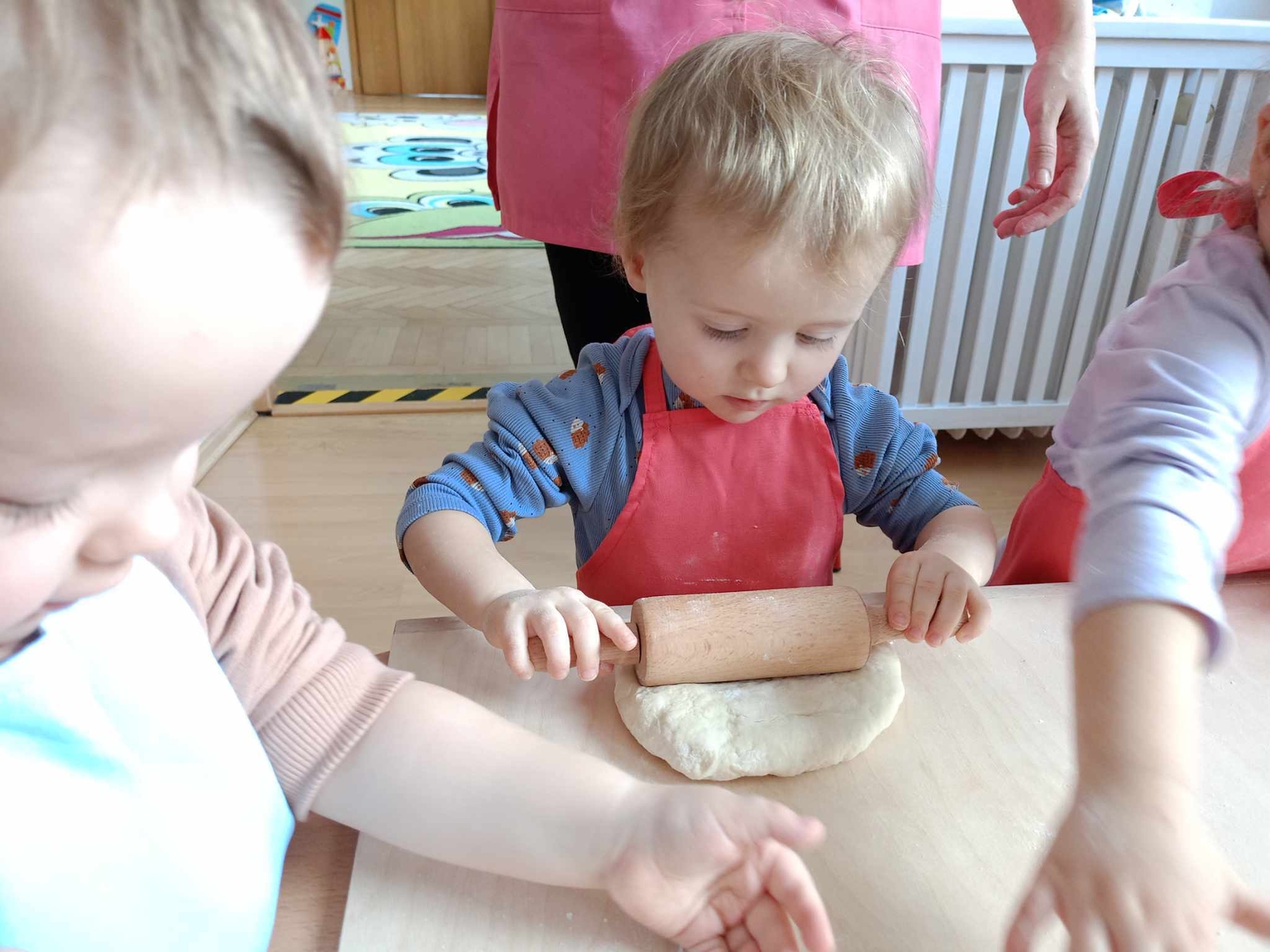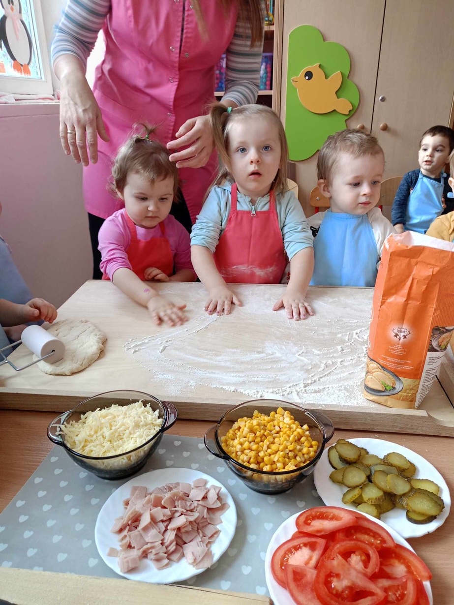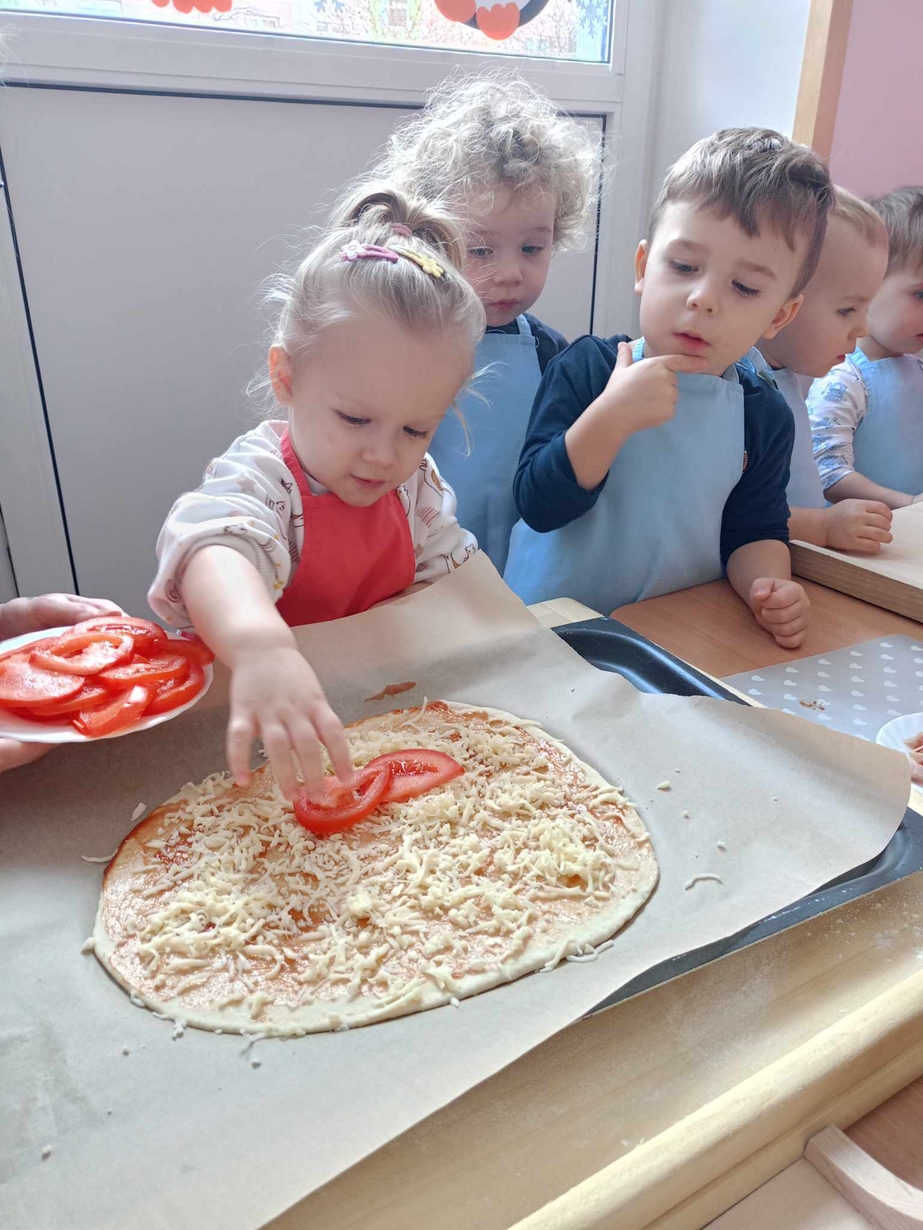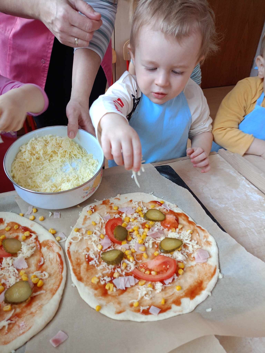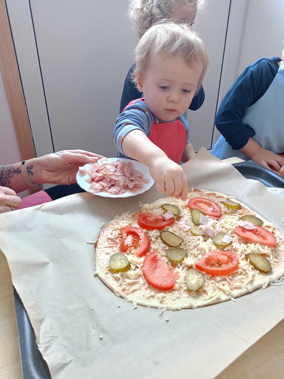 Wielką frajdę sprawiło im formowanie ciasta, smarowanie sosem pomidorowym,