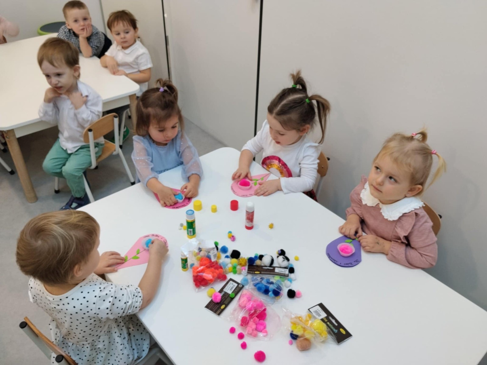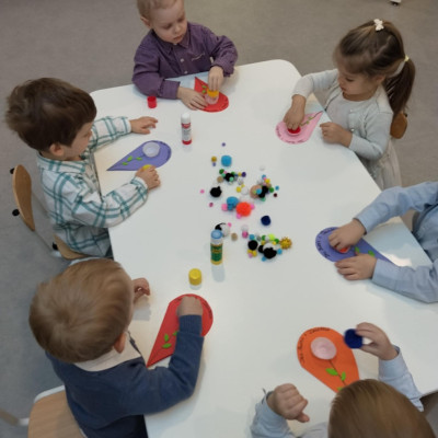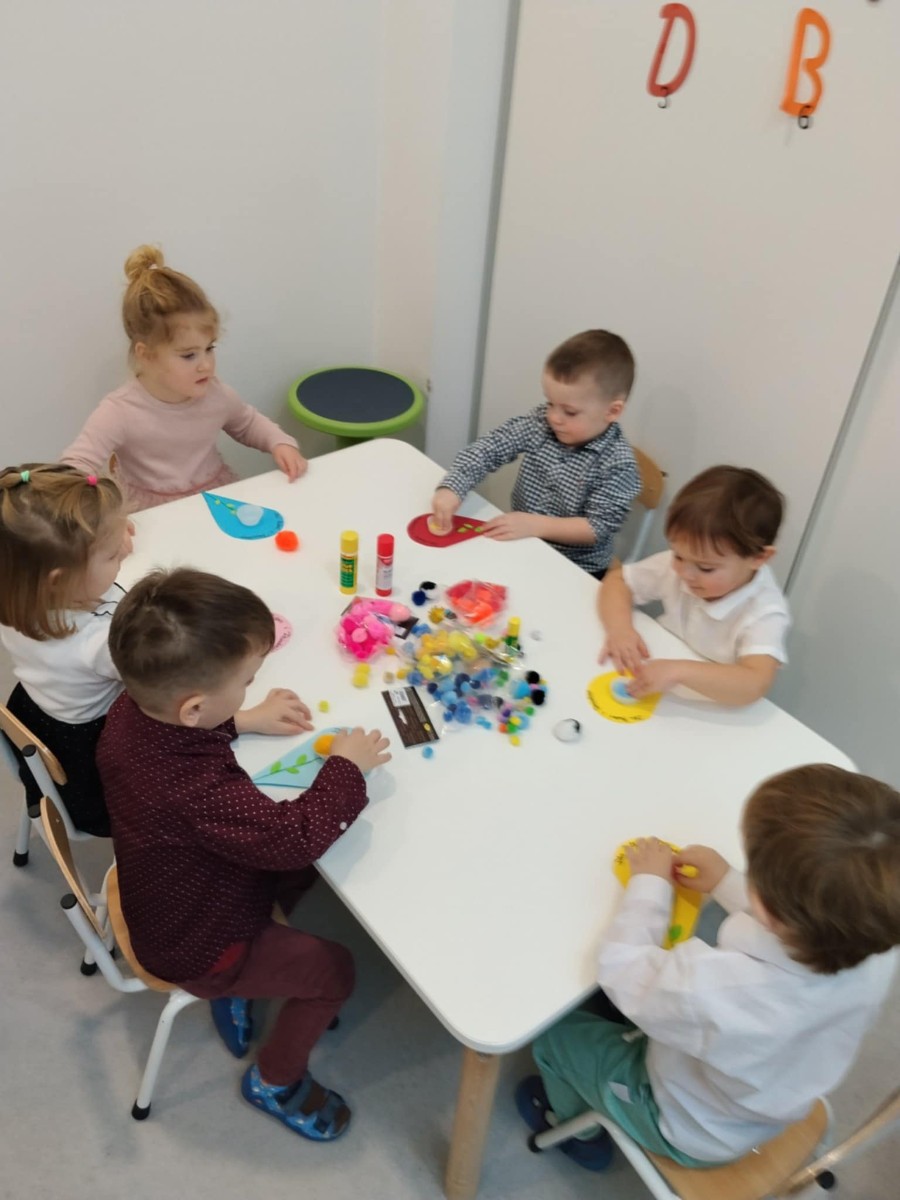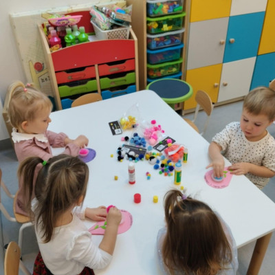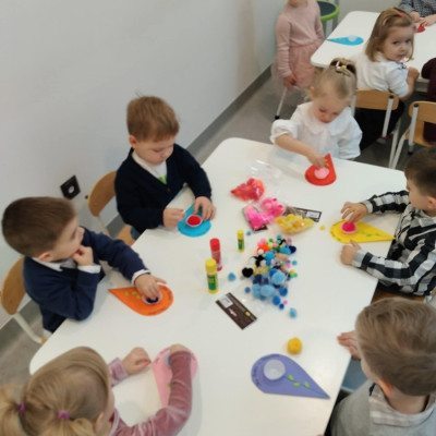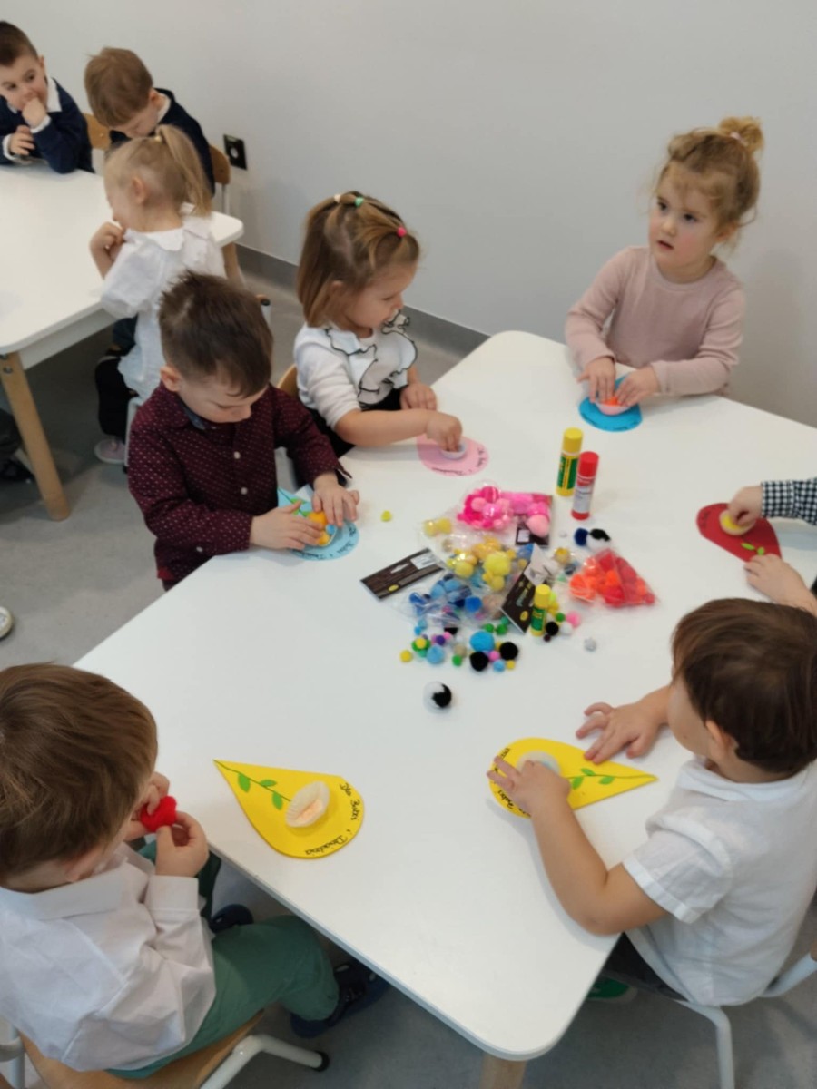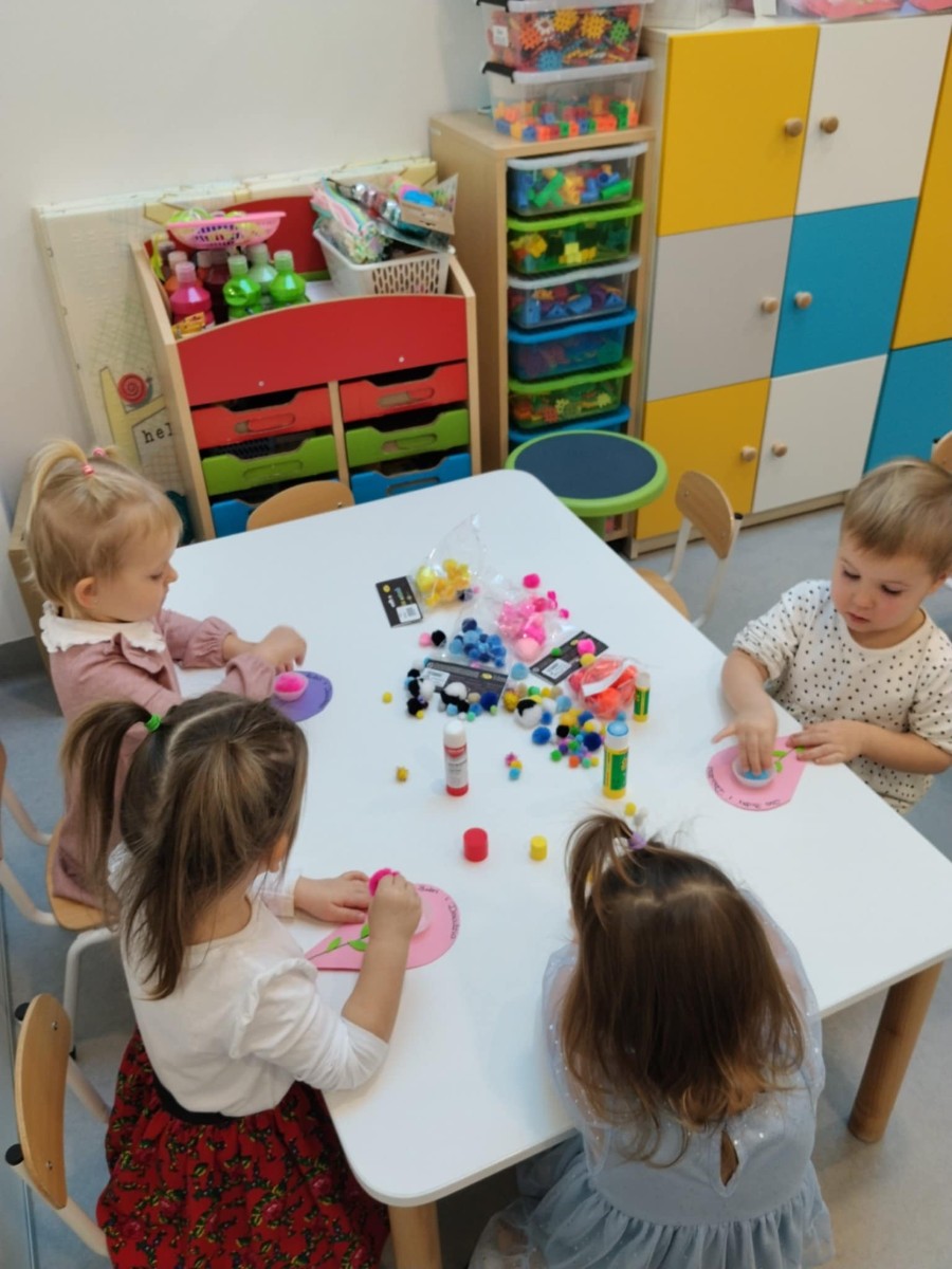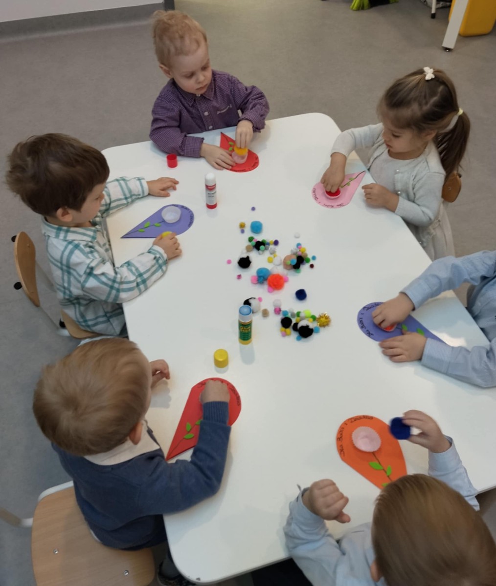 Zdjęcia przedstawiają dzieci podczas wykonywania laurki