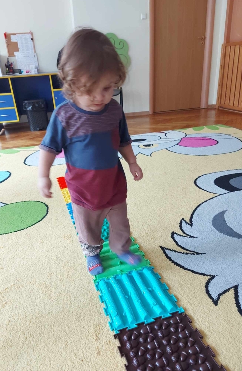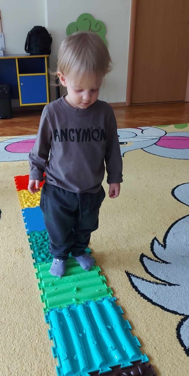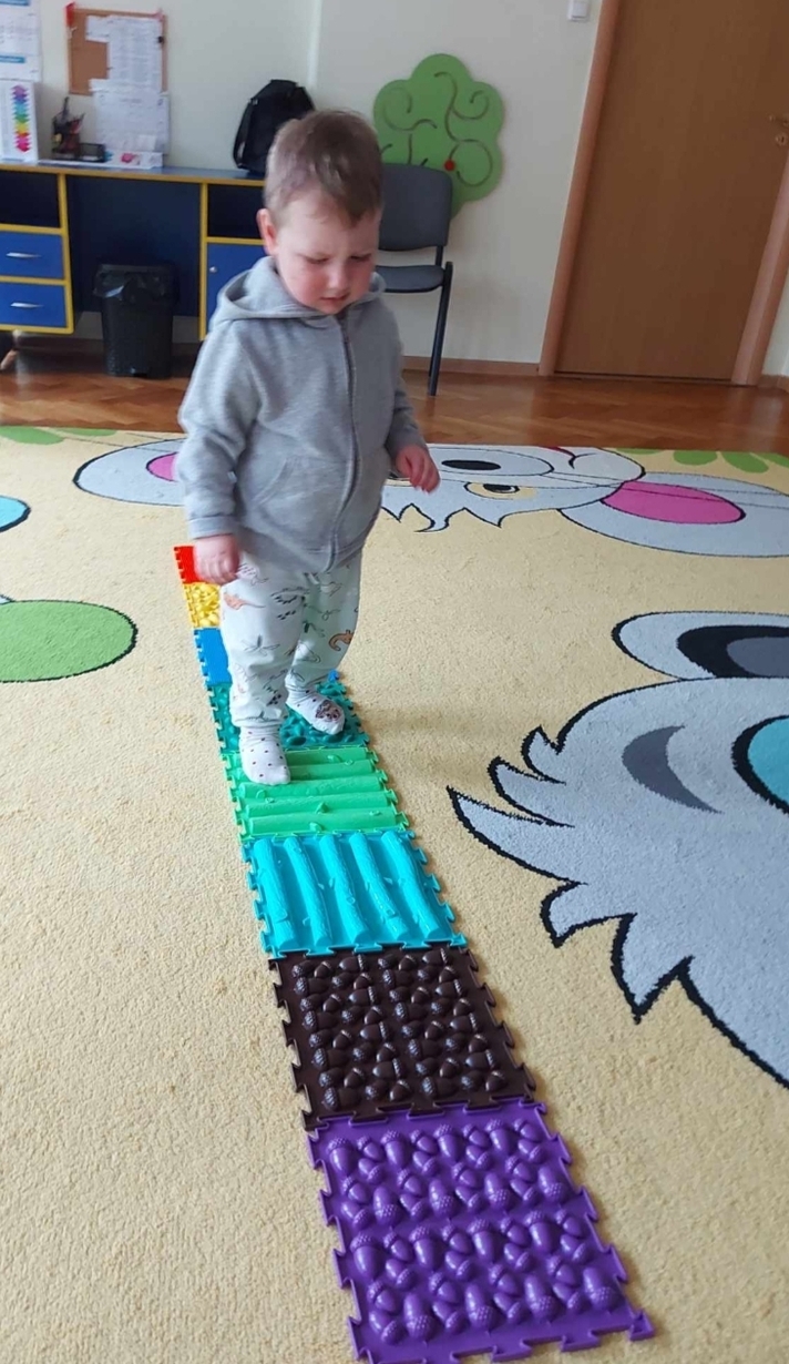 Chodzenie po zróżnicowanych strukturach pobudza receptory dotykowe w stopach.
