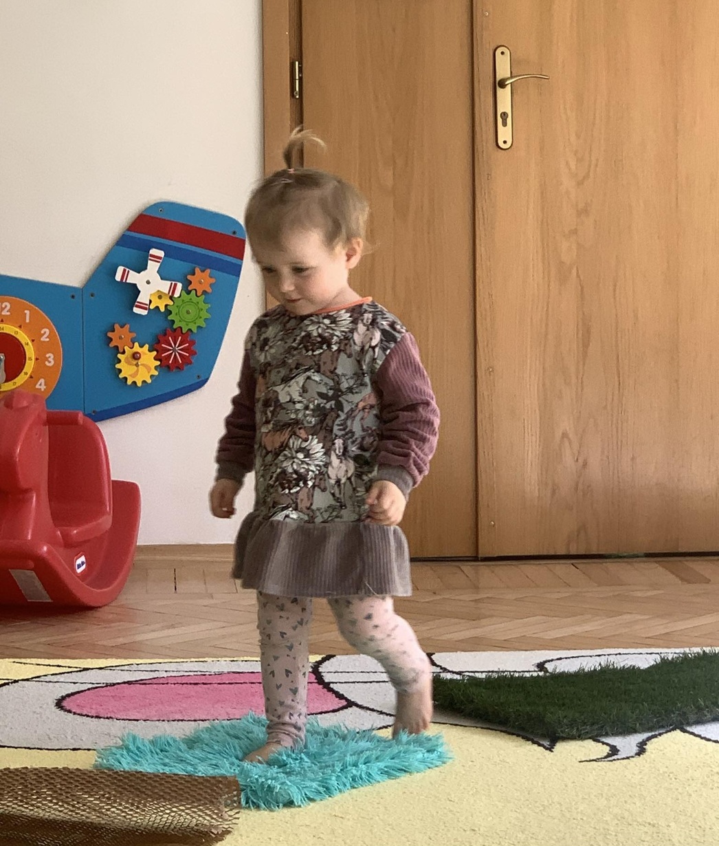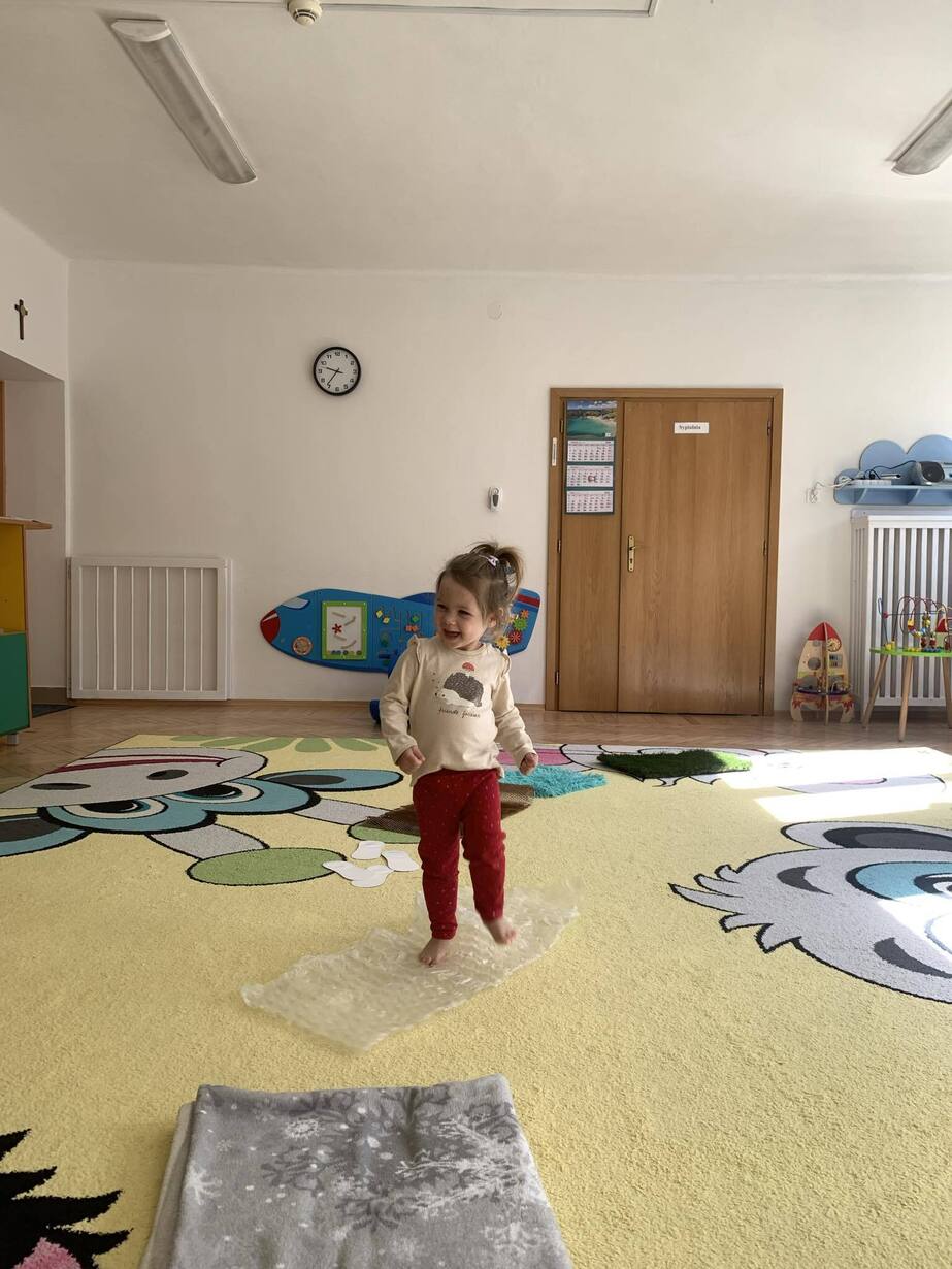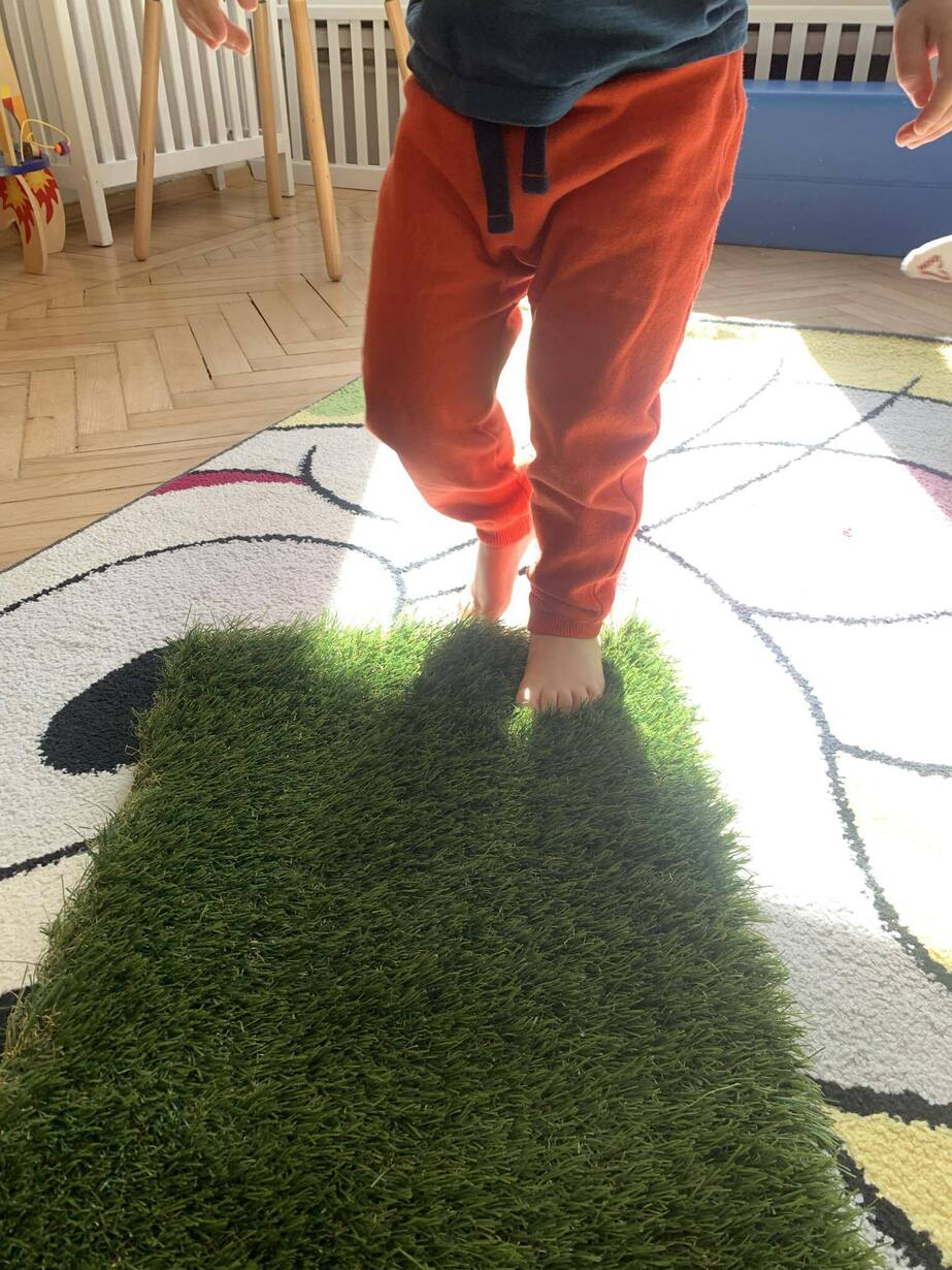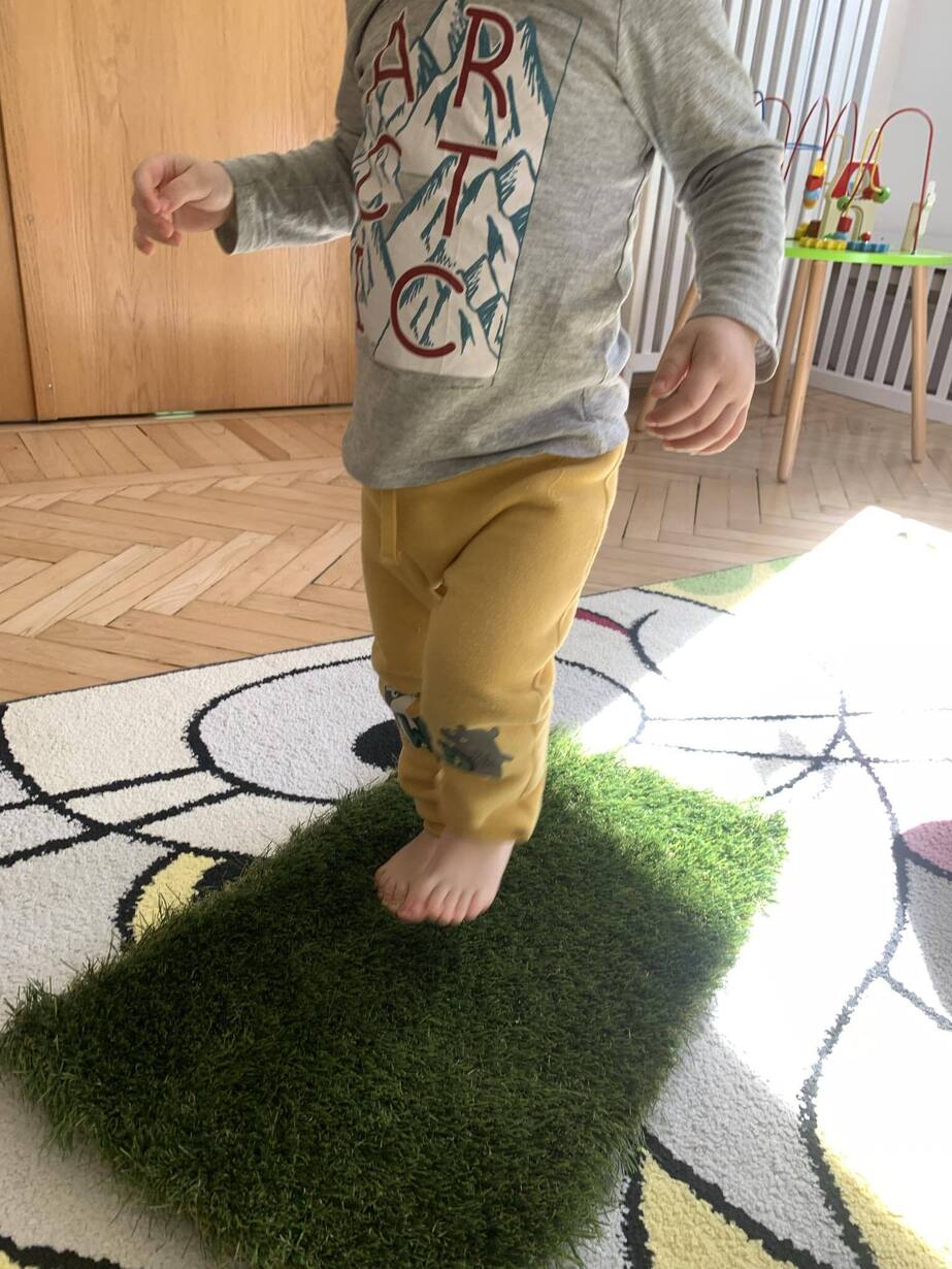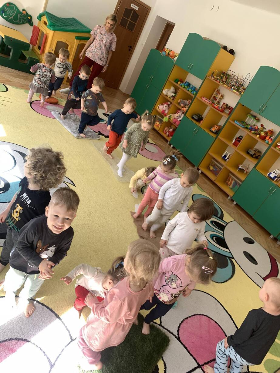 W grupie Misiów była świetna zabawa sensoryczna, która pozwala dzieciom na poznanie świata za pomocą zmysłów. Dzieci spacerując gołymi stopami miały okazję poznać podłoże, składające się z różnych faktur.